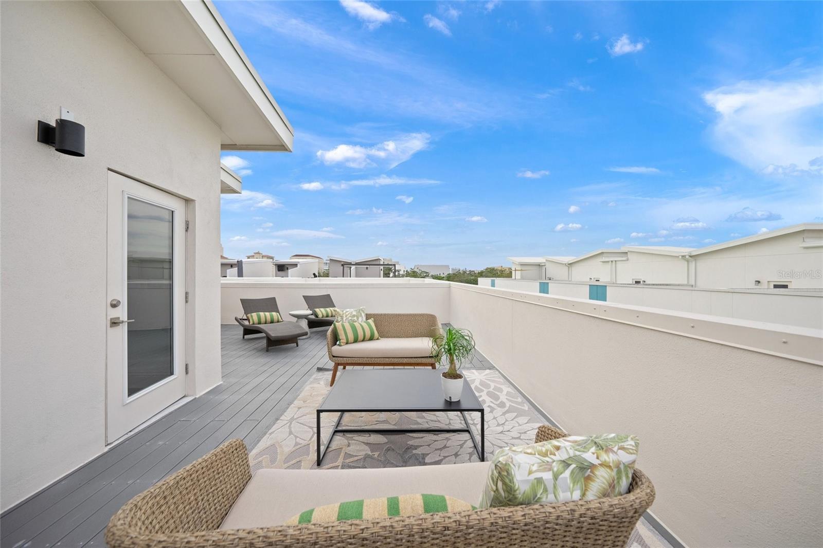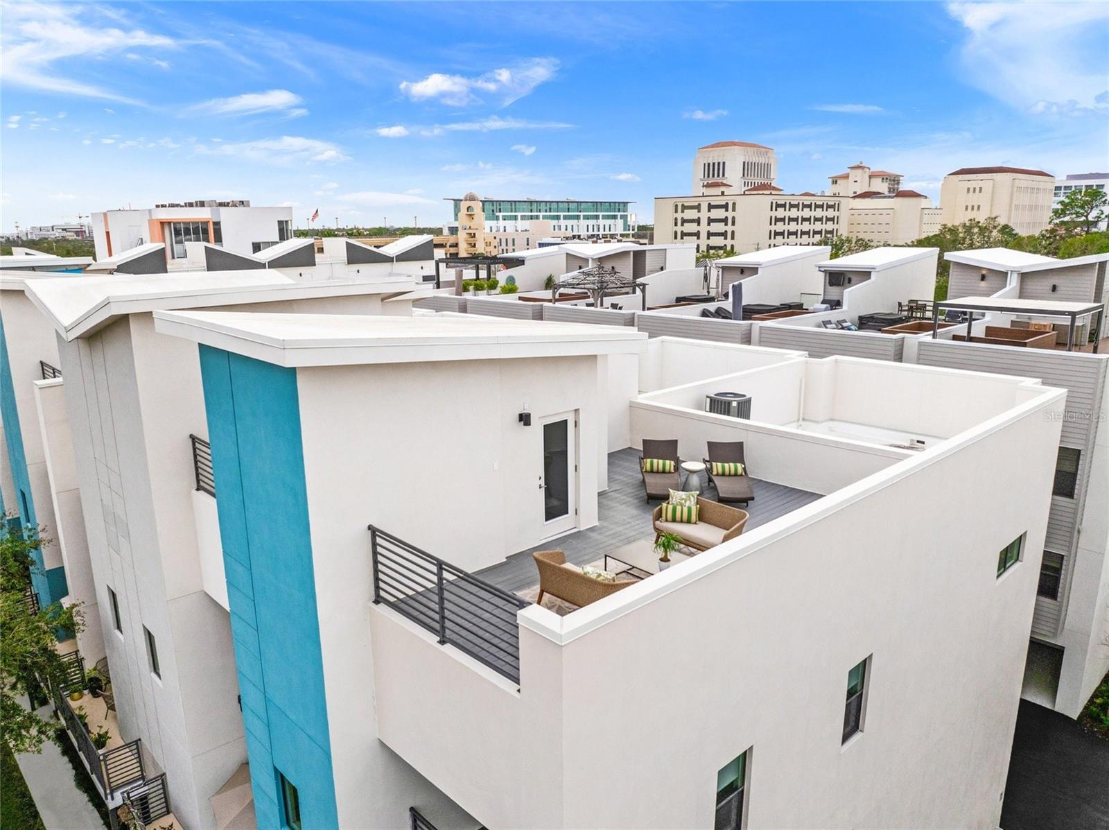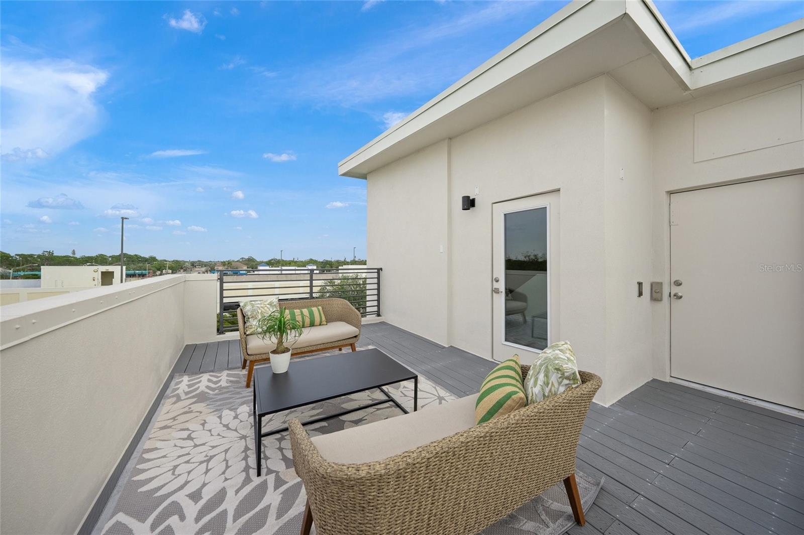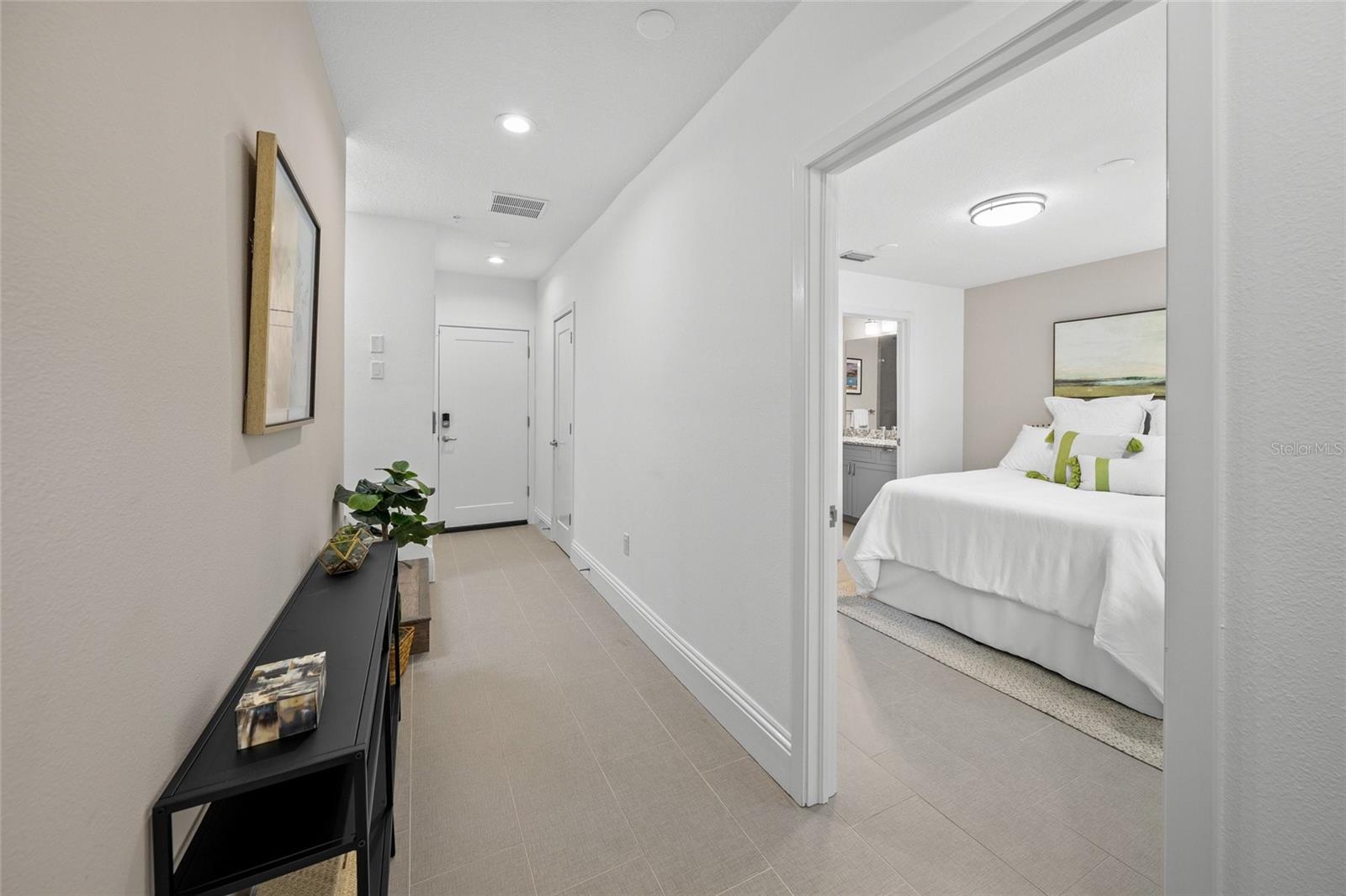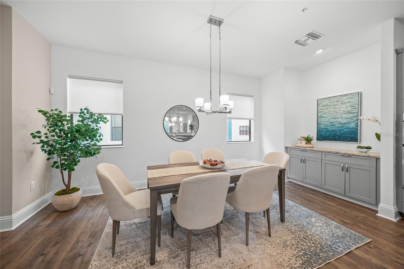 Premier On Main. A rare opportunity to make this pristine, never-lived-in, end unit townhouse your home. Located in the thriving Uptown district on upper Main Street, this elegant townhome is recently fully upgraded with designer features and is so close to all the city has to offer. This spacious 2762 square feet home is a standout unit in the exclusive 37-unit Premier On Main with its high ceilings and light-flooded rooms, 3 bedrooms (all en-suite), 3.5 bathrooms, a 2-car garage plus attached 2-car carport, and a roof top terrace ready for Buyer’s outdoor kitchen. This former builder’s model offers numerous outstanding special features including a private elevator, custom designed California closets, custom built-in pantry, motorized blinds in primary master suite, monitored security system, whole house water filtration, on demand gas water heater and an epoxy garage floor with additional storage. The entry level private bed/bath suite welcomes your guests, or is perfect for an office, studio or den. A spacious 2nd floor living area invites entertaining with its chef’s kitchen plus high bar with room for a crowd, a custom pantry, all new KitchenAid appliances, natural gas range and beautiful cabinetry. The light-filled living room flows out onto a private covered balcony, and a dining room with dry bar offers an elegant, warm and welcoming venue for meals at home or hosting friends. The 3rd level offers a conveniently located laundry closet with washer/dryer and extra storage, 2 spacious master bed/bath suites, both with walk-in closets, and another private balcony. The primary master suite boasts an additional custom designed closet and a Japanese style wet room with luxurious soaking tub and shower. This exciting location in the hot Uptown district on upper Main Street is a particular draw. Have all the buzz of city life without the bustle. Everything in Sarasota, with its art centers, cultural district, culinary hot-spots are just at your doorstep. The galleries, cafes, restaurants, boutiques, movies, Payne Park and the Legacy Trail are close by for your enjoyment. The Bay Runner Trolley with complimentary service to downtown, St. Armand’s Circle and Lido Beach is just outside your front door. Premier On Main boasts a fee simple ownership with low fees of only $394 a month. Looking for a dazzling new home or an excellent rental property? This is it.