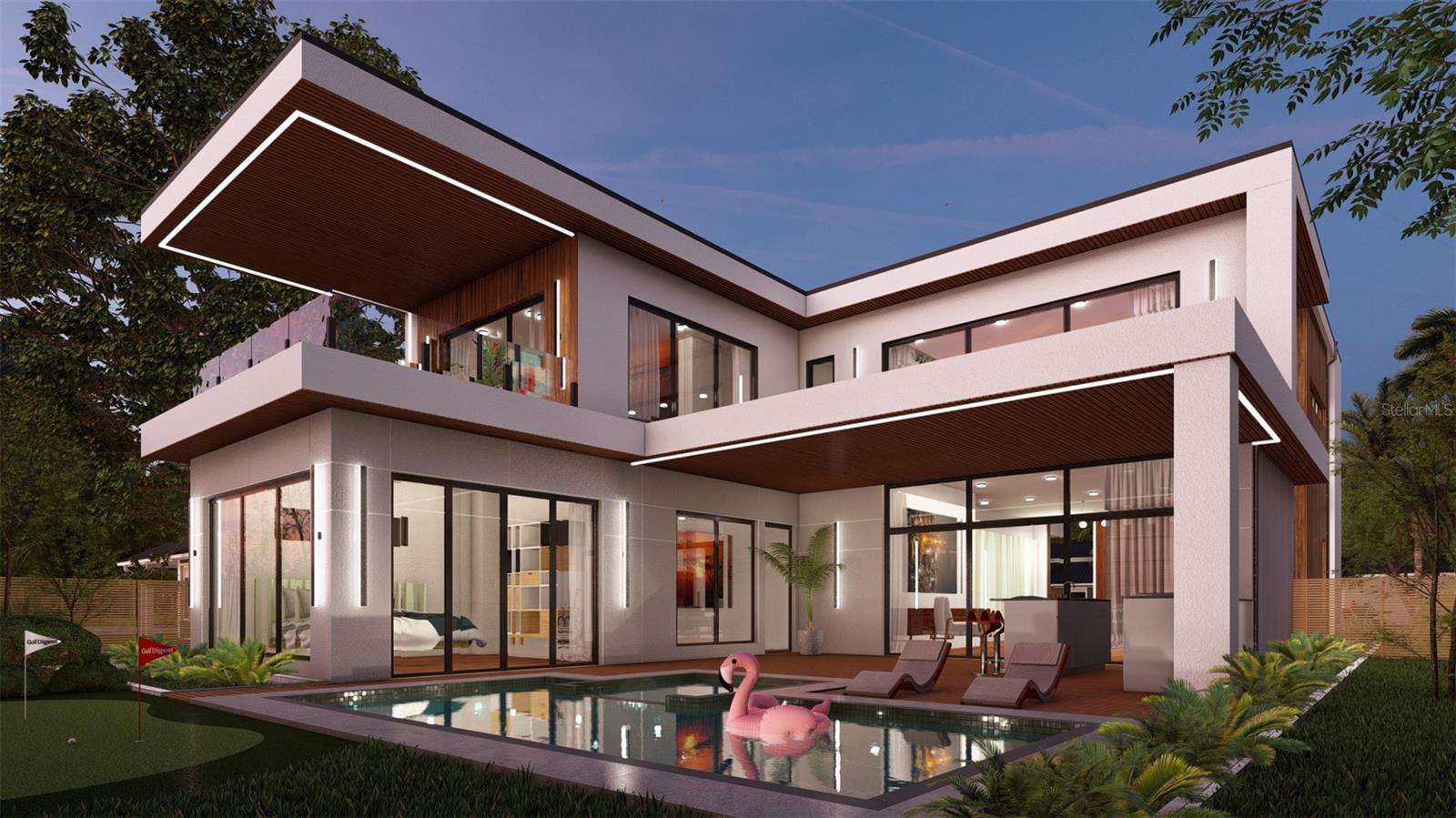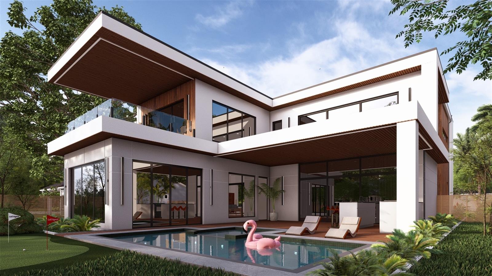 Under Construction. Completion set for Feb 2026 Elevator and Sauna included- Step into a realm of refined living with this one-of-a-kind, custom-designed new-construction home in Arlington Park. Crafted to redefine luxury, this residence offers upgrades and thoughtful details rarely seen in the market, catering to the discerning buyer who values design excellence, originality, and exceptional craftsmanship. Built with concrete block construction from the slab to the roof and featuring hurricane-rated windows and doors, this home ensures both durability and peace of mind. The contemporary exterior design exudes sophistication, blending wood siding with porcelain matte slabs. The 3-car garage provides ample space for vehicles and storage. Designed for both privacy and entertainment, the home features a seamless flow throughout. With an elevator for accessibility and convenience, every level of this residence is within easy reach, making it ideal for multi-generational living. Every detail has been meticulously curated with top-of-the-line finishes, fixtures, and hardware, complemented by porcelain tiles, wood flooring, custom Italian cabinetry, and modern interior doors throughout. Each bedroom in this home is an en-suite with a private balcony, offering unmatched comfort and privacy. The primary bedroom and office are conveniently located on the first floor, while upstairs, three additional en-suite bedrooms and a theater room provide ample space for both residents and guests.Upon entry, the foyer makes a breathtaking first impression, showcasing a floating staircase with seamless glass railings and a living garden beneath. A feature wall enhanced by designer sconces sets the tone for the rest of this extraordinary home. The modern kitchen balances elegance and warmth, equipped with luxury Sub-Zero and Wolf appliances, custom cabinetry, and eye-catching countertops and backsplash. A large pantry provides abundant storage and additional workspace. The kitchen flows effortlessly into the living area, creating a central hub perfect for gathering and relaxation. Tall ceilings, a standout light fixture, and an accent wall with a water vapor fireplace and TV enhance the modern comfort of the living space. Custom cabinetry and upscale finishes extend seamlessly to the expansive luxury pool deck. The heated saltwater pool with a spa is complemented by an outdoor kitchen featuring premium appliances and custom cabinetry. A fire pit adds ambiance, while the unique putting green offers endless entertainment for golf enthusiasts and guests alike. This outdoor space is as functional as it is luxurious—perfect for hosting or unwinding in style. The office is a productive haven, enhanced by wallpaper and the option for custom cabinetry. Two thoughtfully designed laundry rooms—one on each floor—are equipped with stackable washers and dryers, quartz countertops, and decorative wallpaper to elevate everyday tasks. Each guest bathroom serves as a private retreat, outfitted with Brizo fixtures, custom cabinetry, porcelain shower walls, smart toilets, and elegant lighting. The spa-inspired primary bathroom includes his-and-her wet rooms, a double vanity, a freestanding bathtub, porcelain accent walls, Brizo fixtures, and even a sauna for total relaxation. On the upper level, three additional en-suite bedrooms feature impeccable finishes, while the recreation room or theater provides the perfect setting.