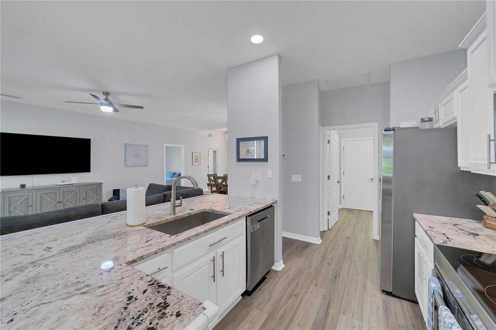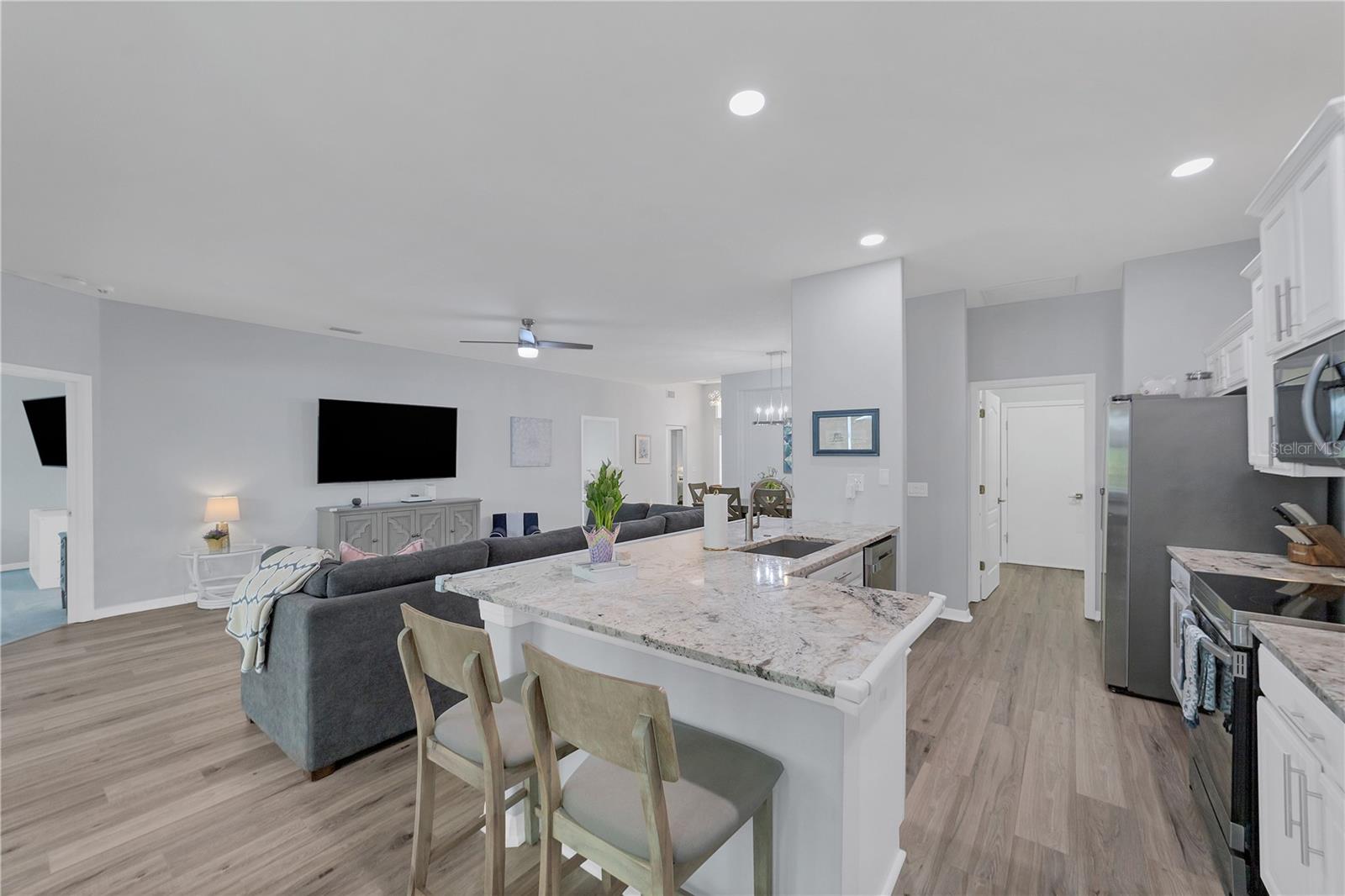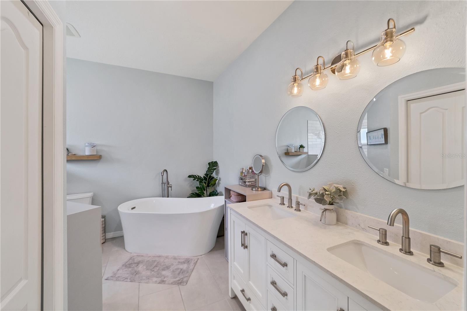 This beautifully appointed 3/2 in one of Sarasota’s most sought-after neighborhoods is a rare find: a completely updated residence that also has all of the critical items covered. 6650 Cheswick very much fulfills the promise of move-in ready. A BRAND-NEW ROOF was just installed 7/24. A top to bottom interior REMODEL, completed in 2021, encompassed so much of what the modern buyer seeks: an open concept kitchen outfitted with gorgeous stone countertops and stainless-steel appliances (all 2021 or newer-a new dishwasher was just recently installed); lovely luxury vinyl plank flooring throughout the main living areas that makes for a larger feel to the space; updated lighting fixtures and fans, including a dramatic entry chandelier, and a tasteful, neutral color palette. Tucked away off of the main living area is a spacious primary bedroom with a luxurious en-suite bathroom that features a beautifully tiled step-in shower, freestanding relaxing soaking tub, and dual vanities. The two additional bedrooms share an updated hall bath. We’ve mentioned the new roof, but what about everything else? The hot water heater was installed in 2019 and the HVAC system was replaced in 2020, and comes complete with air filtration and sanitizing UV light for added cleanliness. An interior laundry room comes with additional storage and a utility sink, an underrated feature of any household. This home comes equipped with a complete set of ACCORDION HURRICANE SHUTTERS for protection and peace of mind during stormy weather. The windows and sliders have also had 3M film added to reduce heat in-take and make the home all the more energy efficient. Enjoy the privacy and tranquility of the preserve and pond out back from an extended screened lanai, part of which is covered by a roof extension, allowing one to sit outside but remain out of the sun should they so choose. There are hard-wired security cameras that CONVEY with sale. Carlyle Village is a delightful, desirable, quiet neighborhood within touching distance of Sarasota’s ever popular UTC area, as well as the dining/shopping options of Lakewood Ranch and Downtown Sarasota, and provides easy access to I-75 and SRQ Airport. Carlyle has NO CDD and a minimal HOA fee. The community pool, playground, and multisport court are just a short walk from the home. The nearby Palm Aire Country Club is available to join, with optional membership with four different equity options available, including golf and social. Between the fantastic interior, attention to all the “bones” items, and its perfect central location convenient to so much of what Sarasota has to offer, this is a fitting home for any buyer, whether it be a set of snowbirds, a young family, or anyone who is seeking to enjoy the good Florida-life.