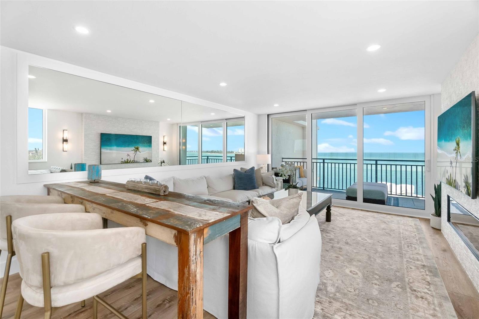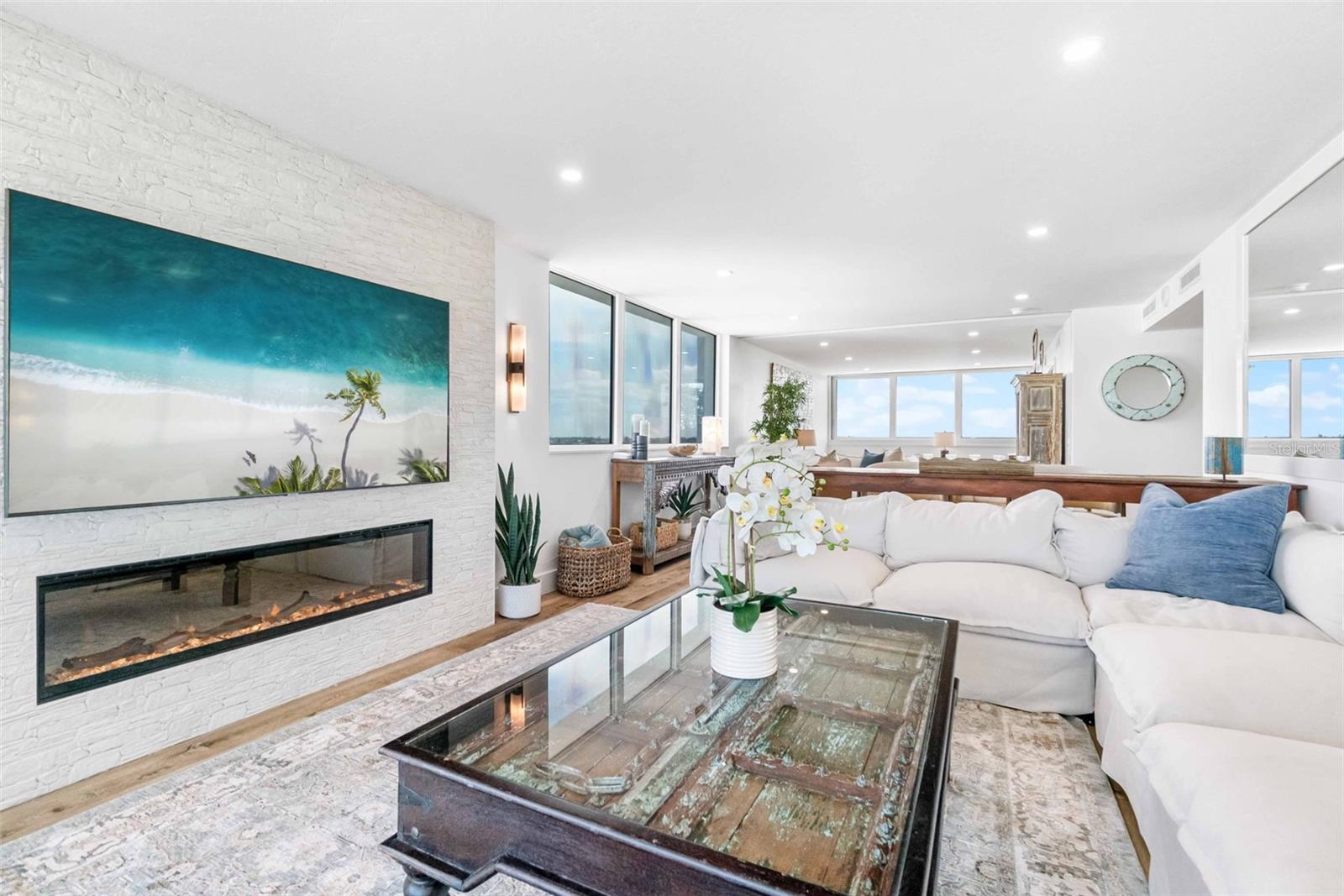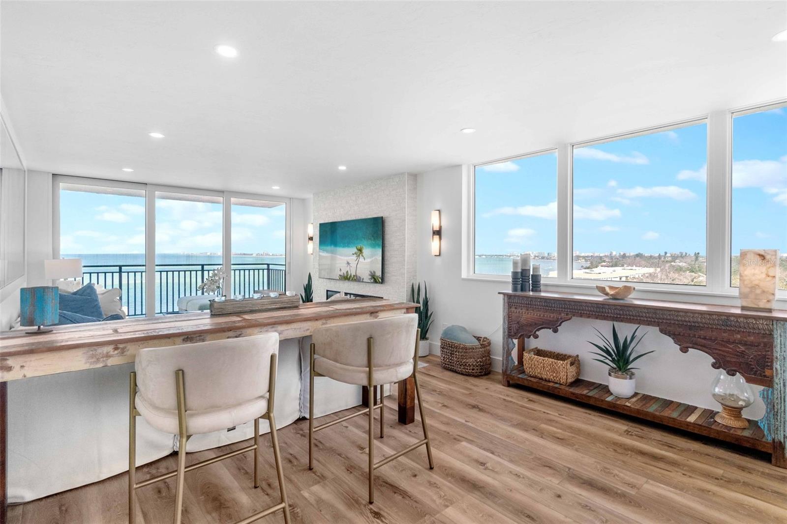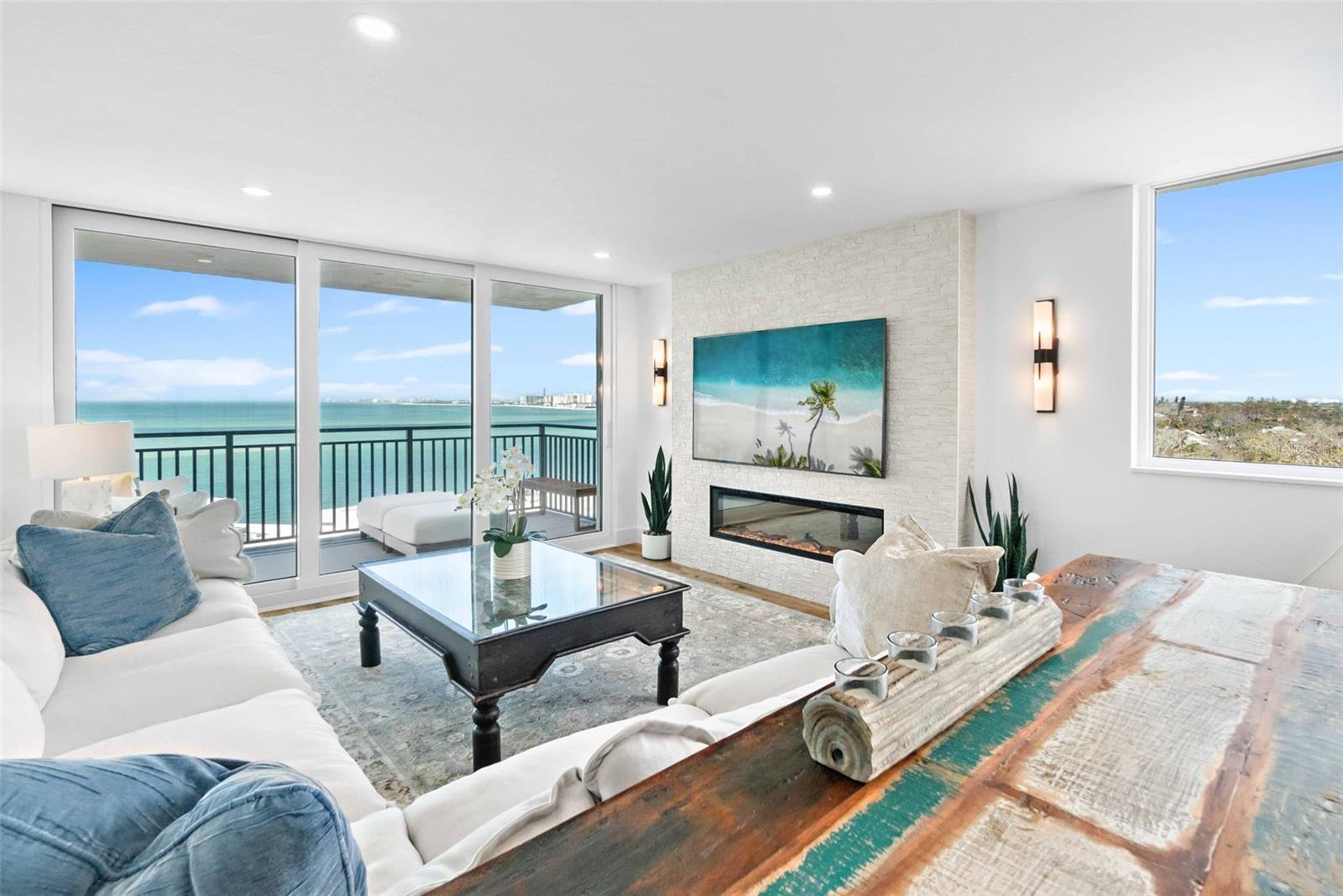 LOOKING AT ALL OFFERS! HIGHLY MOTIVATED SELLER! BEST VIEWS ON SIESTA KEY! Indulge in the ultimate luxury lifestyle with this exceptional 3-bedroom, 3-bathroom condo located at Siesta Towers on the pristine shores of Siesta Key with direct Gulf views! Every inch of this 2,000+ sq ft. residence has been COMPLETELY RENOVATED, FINISHED IN 2025 and meticulously designed with the finest finishes and attention to detail, offering a truly elevated living experience. As you step inside, you are immediately greeted by the expansive, open living spaces featuring high-end finishes, sleek quartz countertops, and sophisticated designer lighting and fixtures. The gourmet kitchen is the focal point of this home, equipped with top-of-the-line LG stainless steel appliances including 2 refrigerators. The living and dining areas flow seamlessly into one another, offering the ideal space for entertaining at your dry bar or enjoying quiet cozy evenings in front of the electric fireplace. Oversized hurricane-rated windows and sliding glass doors throughout flood the space with natural light and offer spectacular views of the Gulf and Downtown creating the perfect backdrop for relaxation and enjoyment. Each of the three generously sized bedrooms are designed with comfort and luxury in mind. The master suite is a serene retreat with an en-suite bathroom complete with walk-in shower, dual vanities and two custom walk-in closets. The two additional bedrooms offer ample space and privacy, each with its beautifully appointed en-suite bathroom for convenience and privacy. Also, experience ultimate convenience with a premium in-unit washer and dryer, thoughtfully included for your comfort and ease. This beauty comes completely turn-key furnished, featuring high-end decor that effortlessly blends modern elegance with coastal charm. Every piece of furnishing has been handpicked to enhance the home's luxurious ambiance. Step outside onto your private 8th floor terrace, where you can take in the sweeping Gulf views while enjoying sunrise and sunsets, all while watching boats and dolphins. Take a short stroll to Siesta Village, only 0.5 miles or to Siesta Key world-renowned beaches, shopping and dining. The building offers an array of resort-style amenities, including a heated pool, new fitness center and clubhouse. Enjoy barbequing poolside, or enjoy fishing right from the building’s private dock, nestled in a prime fishing location. Simply unpack and start living the dream, this home is ready for immediate enjoyment. If you are interested in more information or a private showing, please feel free to contact me.