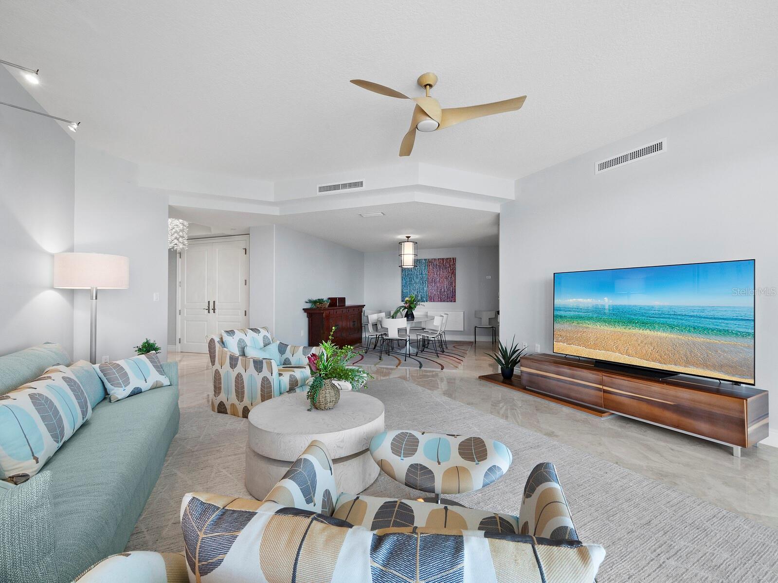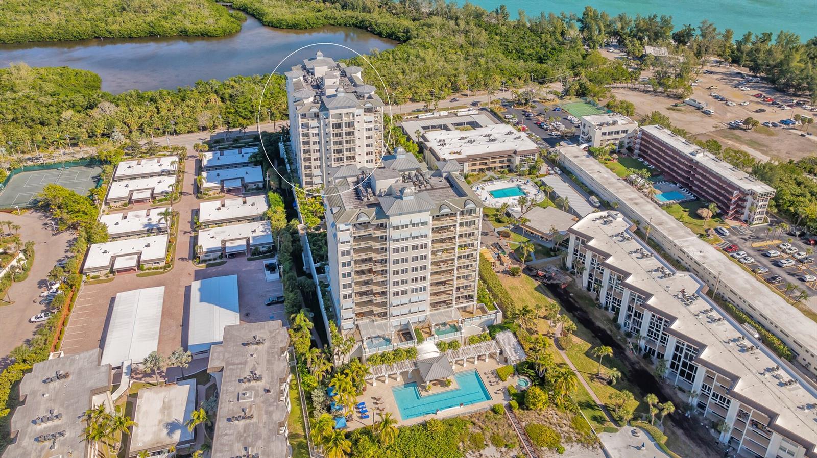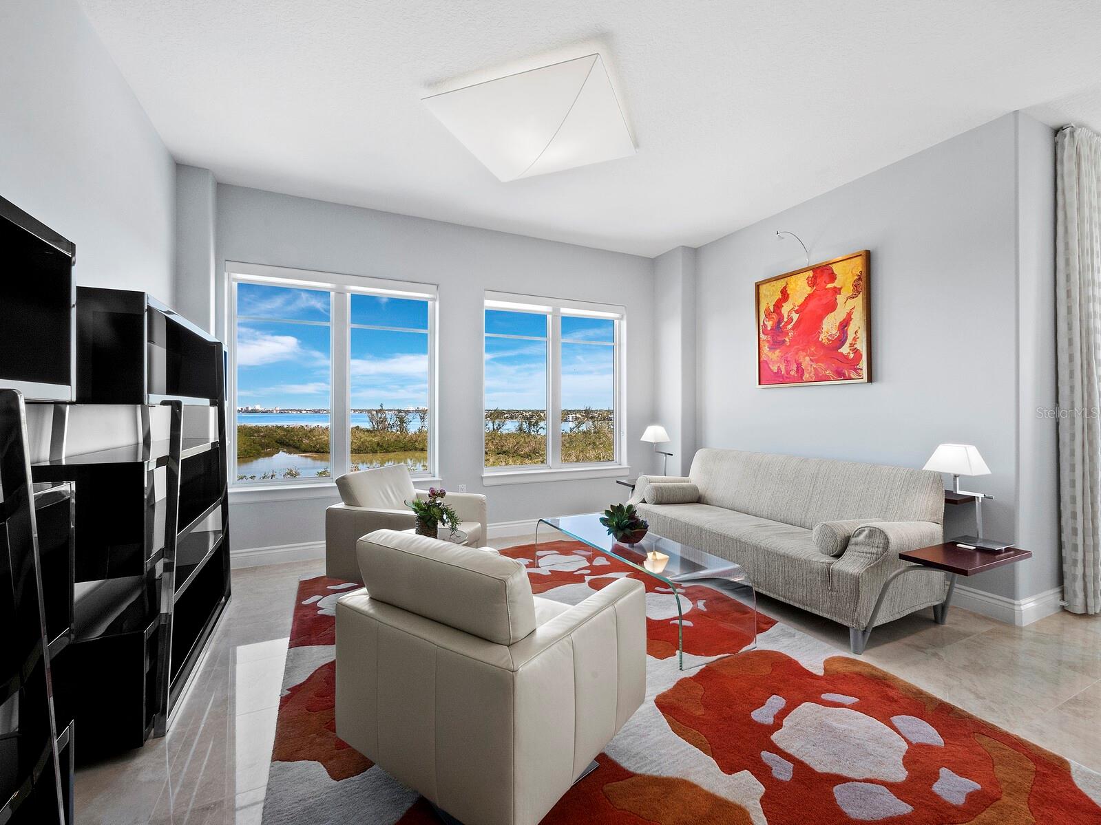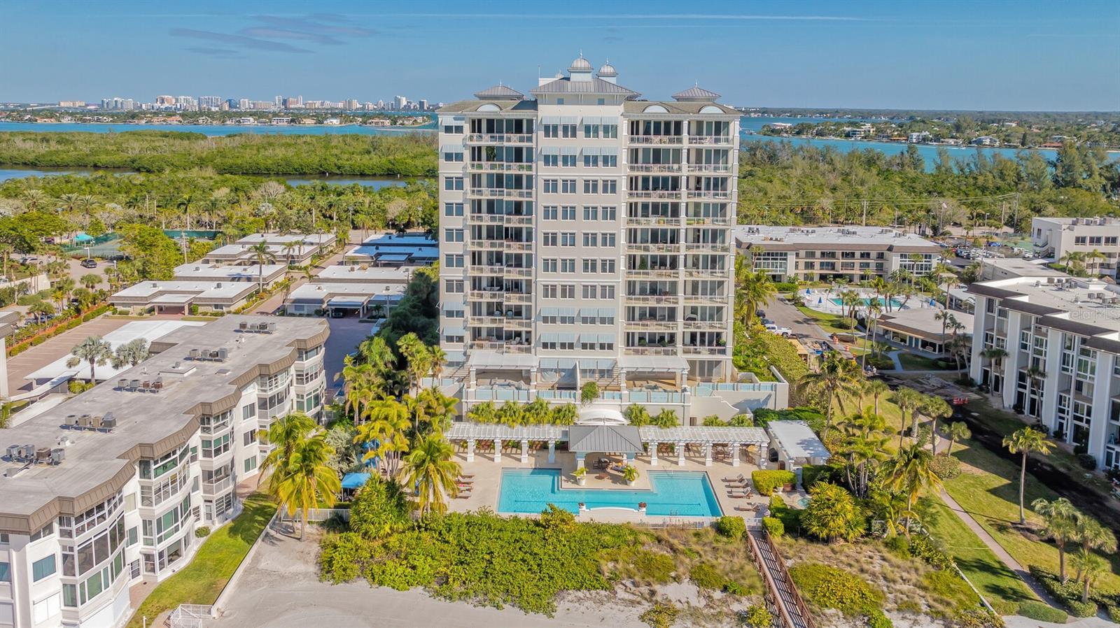 Perfectly set on the 6th floor of the coveted Orchid Beach Club, this stunning 3 BR/3 ½ BA residence offers breathtaking views spanning the beach, bay, city skyline and serene preserve mangroves. The Antiqua floor plan welcomes you with neutral interiors, exuding timeless elegance and a seamless flow between spacious living areas and an expansive open terrace. The primary suite is a private retreat, featuring terrace access, sweeping views and a spa-like bath with a soaking tub, glass walk-in shower, dual vanities and a separate water closet. The second bedroom functions as a self-contained suite, complete with an en suite bath and private terrace access, ensuring comfort and privacy for guests. Walls of glass throughout the home invite natural light and frame panoramic vistas, making the views an integral part of every room. The kitchen is an entertainer’s dream, boasting rich wood cabinetry, stone countertops, a tile backsplash and a breakfast bar. An adjoining eat-in area offers bay views to accompany every meal. Outside, the expansive terrace becomes a personal resort with a built-in gas grill, ample space for entertaining and uninterrupted views—perfect for hosting or unwinding in luxury. Residents of Orchid Beach Club enjoy a lifestyle of unparalleled convenience and indulgence, including a 24-hour guard gate, concierge service, beachside pool and spa, cabanas, a fitness center and a fully equipped clubhouse with social rooms, a game room, massage room, steam showers, saunas and a library. The pet-friendly community includes a private dog run, while St. Armands Circle and downtown Sarasota’s vibrant dining and shopping are just minutes away.