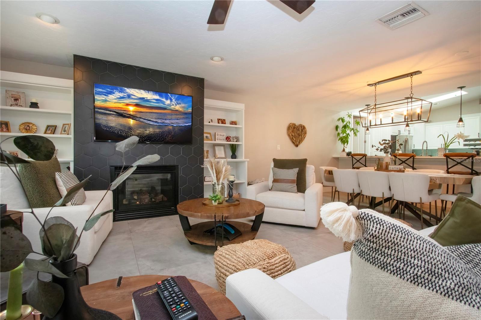 Be prepared to be amazed from the moment you enter this fabulous home! You will realize that this is not just a house, but a tranquil sanctuary where life's stresses can be left at the door! The expansive great room/dining/kitchen is truly the 'heart of the home' presenting the perfect setting for family and friends to gather. A gas fireplace adds a cozy touch on our chilly winter nights. The spacious owner's suite provides the perfect private retreat! Two roomy bedrooms and bath provide plenty of room for guests or family! Sun worshippers will bask in the sunshine poolside with a huge lanai for outdoor entertaining! Completely upgraded in cool calming hues and high end finishes, this home is move in ready. The furnishings are also available should you wish to invest in an income producing property or just simply leave your old furnishings behind! This home was a safe haven as well during our active 2024 hurricane season...solidly built and high and dry with hurricane shutters for added protection.