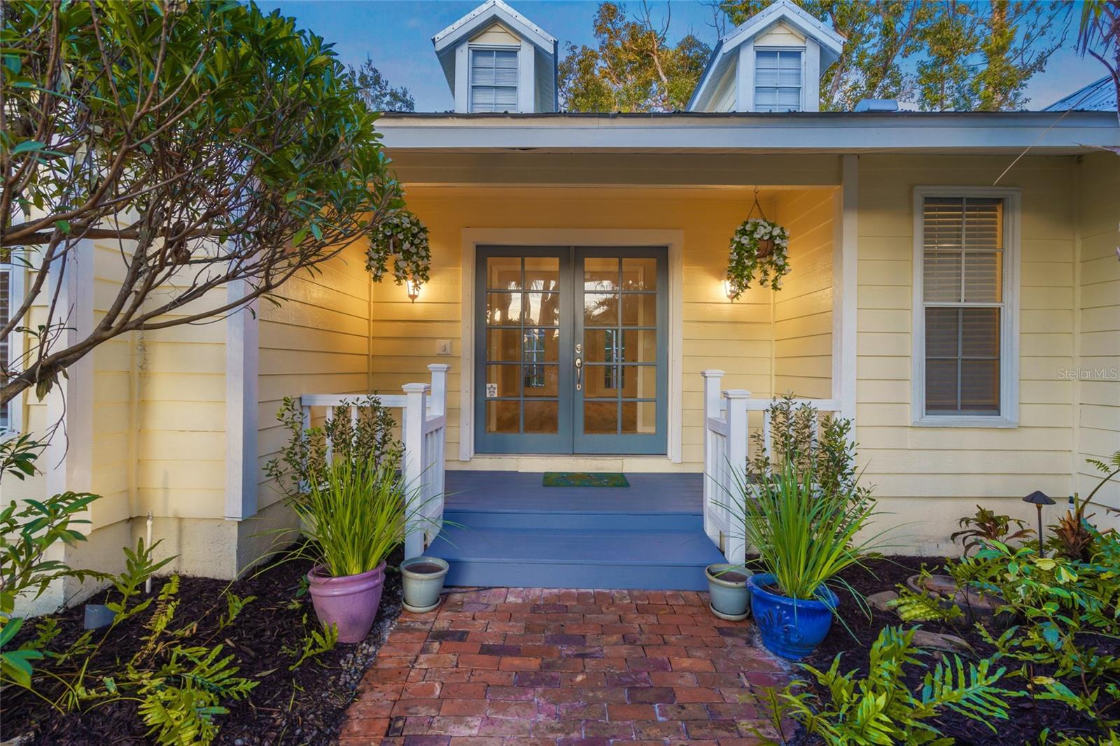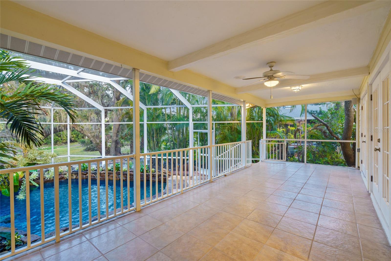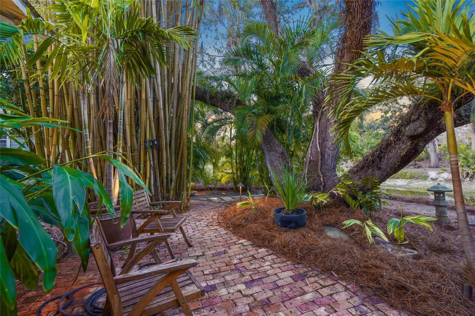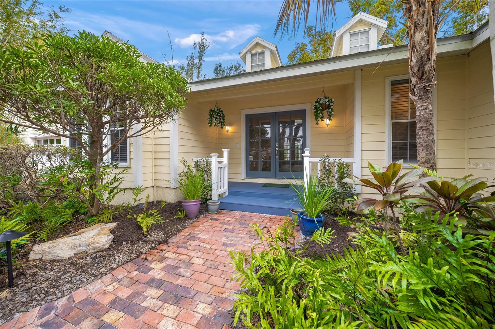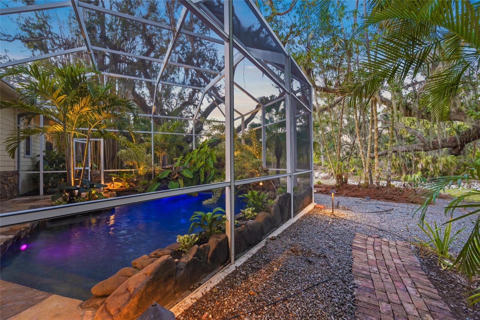 One or more photo(s) has been virtually staged. Nestled in the serene Lakes of Sarasota, this charming home welcomes you with a gently elevated Chicago Brick paver driveway and the shade of a majestic live oak tree. A curving brick paver path leads you through lush, tropical landscaping to a covered front porch—ideal for sipping morning coffee, catching vibrant Sarasota sunsets, or enjoying a peaceful moment with friends. Step inside through double French doors into a spacious, tiled foyer that flows into the generous living room. Soaring cathedral ceilings and abundant natural light—streaming through three sets of French doors and a skylight—make this the heart of the home. With access to both the front porch and rear patio, you’ll always be just moments from the outdoors. The kitchen is a chef’s dream, featuring solid wood cabinetry, thick, flecked granite countertops, and a breakfast bar for casual dining. Upgraded appliances include a Frigidaire cooktop, convection microwave, built-in oven, Whirlpool refrigerator, and a Bosch dishwasher—making meal prep both easy and enjoyable. The home’s split bedroom layout offers privacy and tranquility. Two spacious hall bedrooms share a full bath with a new vanity and a combined shower/tub. The owner’s suite offers direct access to the rear elevated patio, along with a large walk-in closet and two stunning stained glass windows. The en-suite bath features a spa soaking tub, separate shower, and twin pedestal sinks—your own private retreat. Upstairs, a massive fourth bedroom—perfect as a flex room, office, or game room—offers three walls of windows and plenty of space, creating a peaceful sanctuary away from the rest of the home. The outdoor living space is nothing short of magical. A Lucas Lagoon pool with waterfalls, natural stone accents, and an indigo blue gunite surface offers a resort-style experience right in your own backyard. With a heated spa feature and ambient lighting, this is your own unique, year-round pool paradise. The Lakes HOA offers plenty of recreation - gazebo, basketball court, playground, 2 tennis courts, fitness center, clubhouse and 2 community pools. Centrally located in Sarasota and under 15 minutes to I-75, UTC, Celery Fields, Legacy Trailhead, Donald Ross redesigned Bobby Jones Public Golf Course, Downtown Sarasota with its Farmers Market, shopping, and fine dining restaurants. Easy access to Lido and Siesta Key Beaches. Home was built elevated and had no water intrusion through 2024.