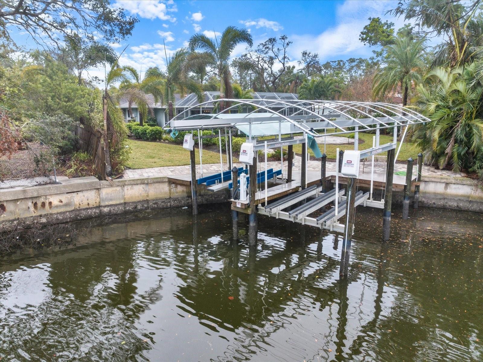 Are you searching fort the perfect WATERFRONT property with direct access to the Sarasota Bay and to Intracoastal Waterway With your own BOAT DOCK? Look no further! This stunning and fully remodeled home in elegant Whitfield Estates is a boater’s dream given the spacious backyard, a BOAT DOCK with two covered BOAT LIFTS. Situated in a tropical Sarasota paradise, this property offers quick, direct access to Big Sarasota Bay and the Intracoastal Waterway in just minutes. With no fixed bridges and a wide, deep water open canal navigating by sailboat, motorboat, or jet skis is a breeze! Located near the Ca' d'Zan, Ringling Museum and just a short drive away from Siesta Beach, Anna Maria Island and Sarasota Downtown , fine dining and upscale shopping, this home truly embodies the Florida waterfront lifestyle. The spacious split-plan design includes three bedrooms with three En Suite baths, an office, and a large laundry/ butlers pantry room, all on a nearly half-acre lot. Completely updated between 2019-2022 and move in ready, this home boasts luxurious features new covered docks with boat and jet ski lifts (With water and electricity) , a sparkling saltwater pool and spa, outdoor kitchen, solar panels, and so much more. The roof was replaced in 2017, and the solar panels ( completely paid off) and the well supplied irrigation help keep your energy costs low. Every detail of this home has been meticulously redone, making it essentially like-new and completely move-in ready. The home could be perfect for Short term rental Property. Due to the 13"elevation there was no storm damage from the latest hurricanes. Furnishing optional! Don’t miss this opportunity to enjoy the ultimate boating lifestyle. Schedule your private tour today!
