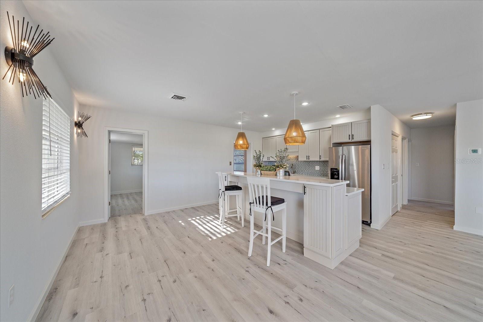 **********MOTIVATED SELLER - BRING AN OFFER********** Discover tranquil living in Clark Meadows, where this charming three-bedroom residence offers the perfect blend of comfort and convenience. This well-appointed home spans 1,400 square feet and features a thoughtful layout with a Primary Owner's suite with an ensuite bathroom, providing privacy and comfort for all occupants. The heart of the home showcases an updated kitchen equipped with modern appliances, stylish lighting fixtures, and a versatile dining space complete with a pull-up bar. The open-concept design seamlessly connects to a welcoming family room, creating an ideal setting for both everyday living and entertaining. The dedicated laundry room and convenient mud room entry from the covered parking area add practical functionality to daily life. Energy efficiency is a standout feature, with solar-electric power significantly reducing utility costs and providing reliable backup during outages. New AC in 2023 and all piping have been redone. The outdoor space truly sets this property apart. Situated on a peaceful corner lot, the fenced yard includes a newly installed paver patio perfect for outdoor gatherings. Nature enthusiasts will appreciate the adjacent pond and preserve, home to local wildlife including ducks, turtles, and rabbits. The location offers exceptional convenience, minutes from Siesta Key Beach, major highways, shopping destinations, and top-rated schools. This rare find in a sought-after neighborhood combines modern amenities with natural beauty, creating an ideal setting for your next chapter.