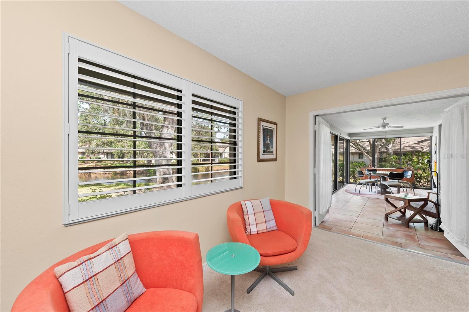 Rarely available water view unit! This home has it all - natural light, updates, space and peace and quiet. Enjoy entertaining? You'll have plenty of room in the large living and dining area that connect to the fabulous Florida room. Custom LED lighting highlights the tall ceilings which allow plenty of options for your artwork or photos. The primary bedroom is enormous with views of the water and two customized walk in closets. The primary bathroom has been modernized with a large walk in shower and spacious vanity. The second bedroom with a wall of shelving is currently used as an office while the third bedroom is being used as an artist studio. A hot water circulator helps save on water bills and moves hot water quickly to the shower and bath. Electric shades, shutters, a new water heater and hurricane shutters are all included in the sale. Did we mention it's a smart home? Control all of the lighting, locks and HVAC from simple apps on your phone! Pipers Waite has two heated (80 degree) pools and two hot tubs for residents only. The Meadows is an award winning community with acres of green space and walking trails. As a homeowner here you have access to tennis, pickle ball, golf and fitness center amenities. With Whole Foods, Trader Joe's, Home Depot and the amazing UTC shopping center this location can't be beat!