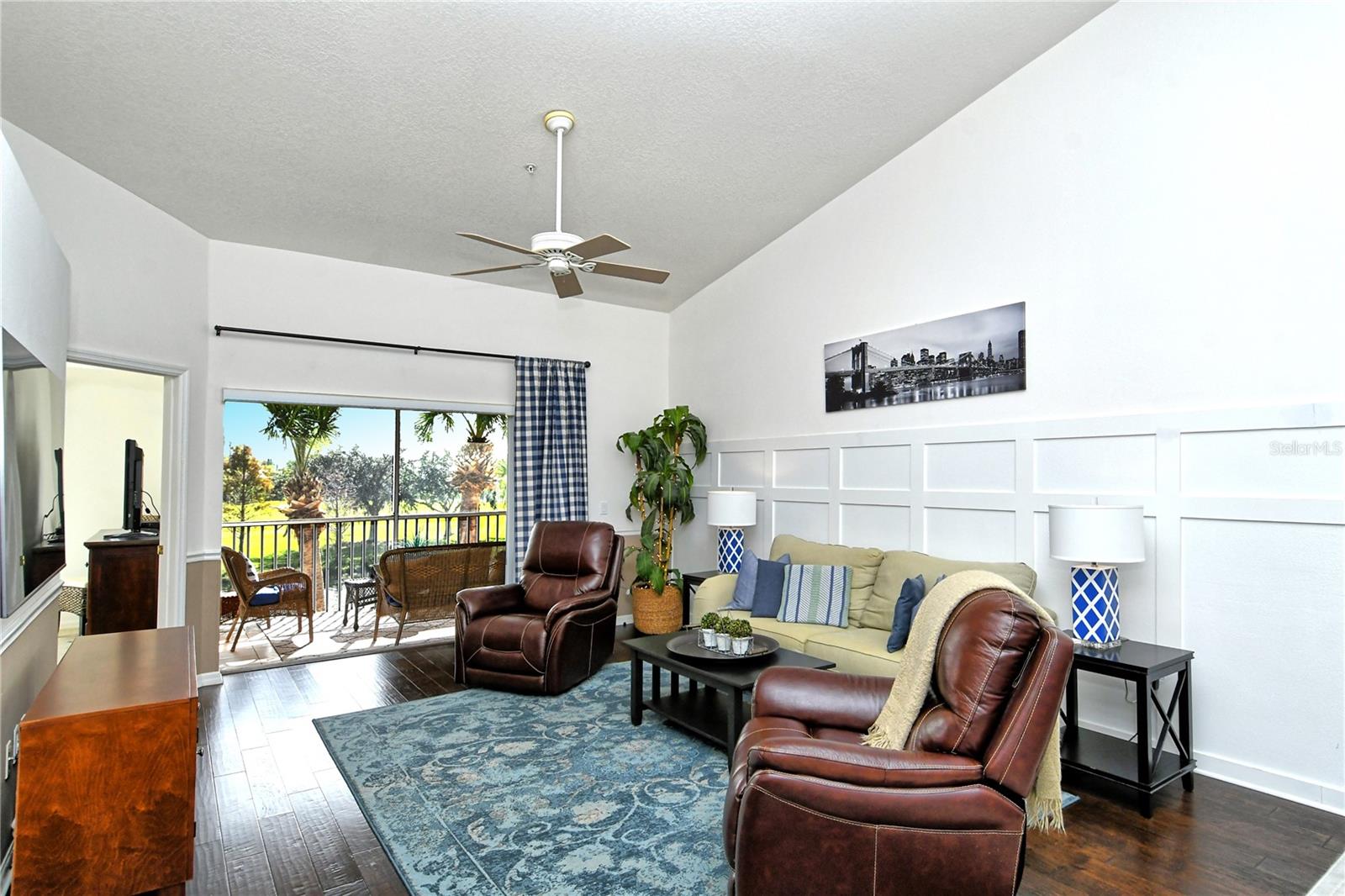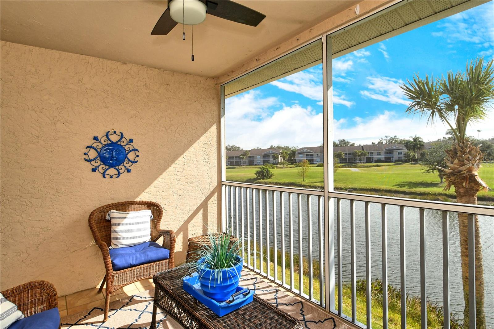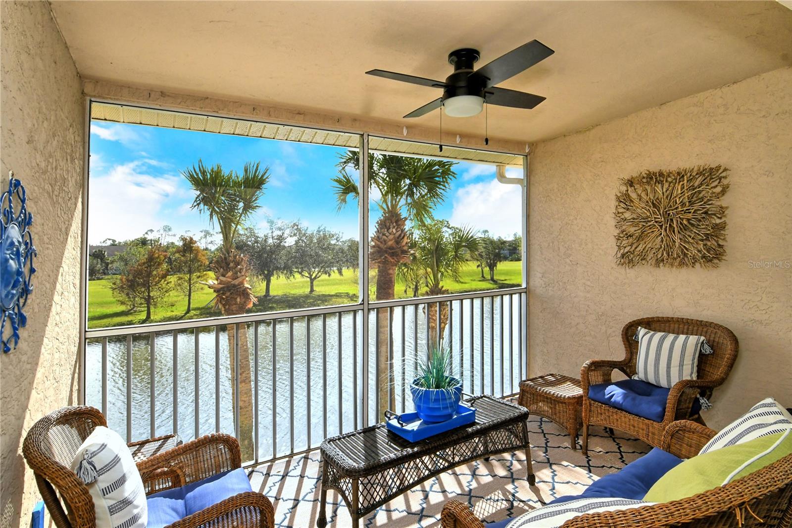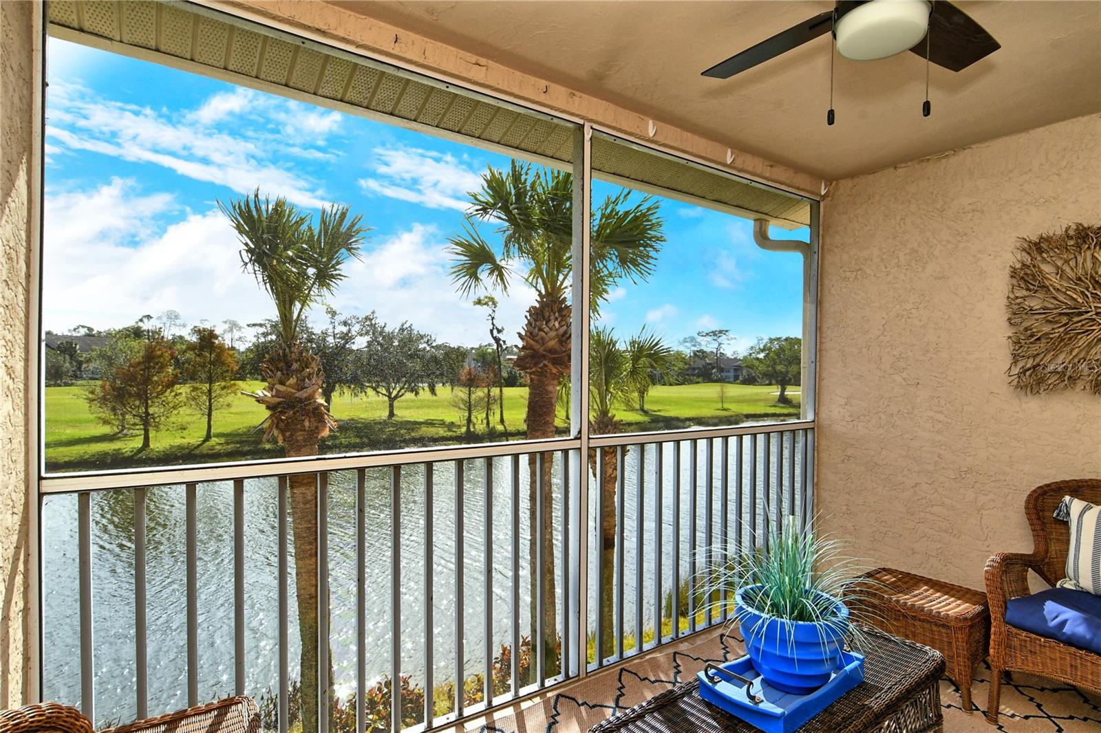 Take a look at this gorgeous, completely updated "Barrington" model veranda in Heritage Oaks Golf & Country Club that is being sold Turn-Key Furnished. As soon as you step through the front door you're greeted with an abundance of natural light, large vaulted ceilings, and a wonderfully appointed and updated space. The views from this unit are absolutely spectacular. Enjoy evenings on your two private screened lanais and take in the panoramic and sweeping views of water and the 14th Signature Hole of the golf course - this is truly a premium view! The kitchen has been thoughtfully updated with quartz countertops, stainless steel appliances, and a lovely subway tile backsplash making this the perfect space for an evening in or for entertaining friends and family. This property also features some amazing wood work details such as chair rail throughout, a lovely dry bar with custom wood shelving, and a gorgeous wood panel molding detail on the back wall in the living room - this detail really adds some character and charm to this outstanding property. In addition, beautiful hand-scraped laminate flooring has been installed in the living, dining, and den spaces giving a perfect amount of warmth to the space. Both bathrooms have been updated with new counter tops and light fixtures as well as a completely renovated shower with spectacular tile in the primary bath complete with a frameless shower door. The den/study is a perfect flex space and can be used as an office, den, or even a third bedroom as a custom frosted window has been installed for enhanced privacy. This property is perfect for a seasonal owner or even as a primary residence. Watch the abundance of wildlife in Heritage Oaks as the community is a Certified Audubon Neighborhood. Heritage Oaks is known for its pristine 18-hole golf course, har-tru tennis courts, fitness center, 24-hour security, an impressive clubhouse with a lovely restaurant and the sensational 19th Hole Lounge, 5 swimming pools, and a calendar of events packed with activities. You will not want to miss out on this spectacular home, it won't last long!