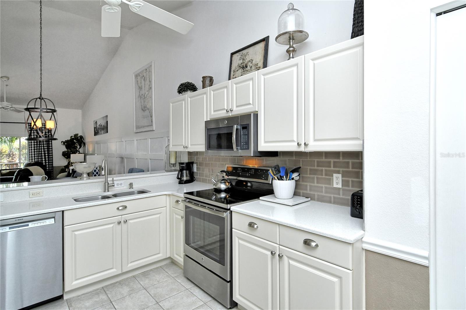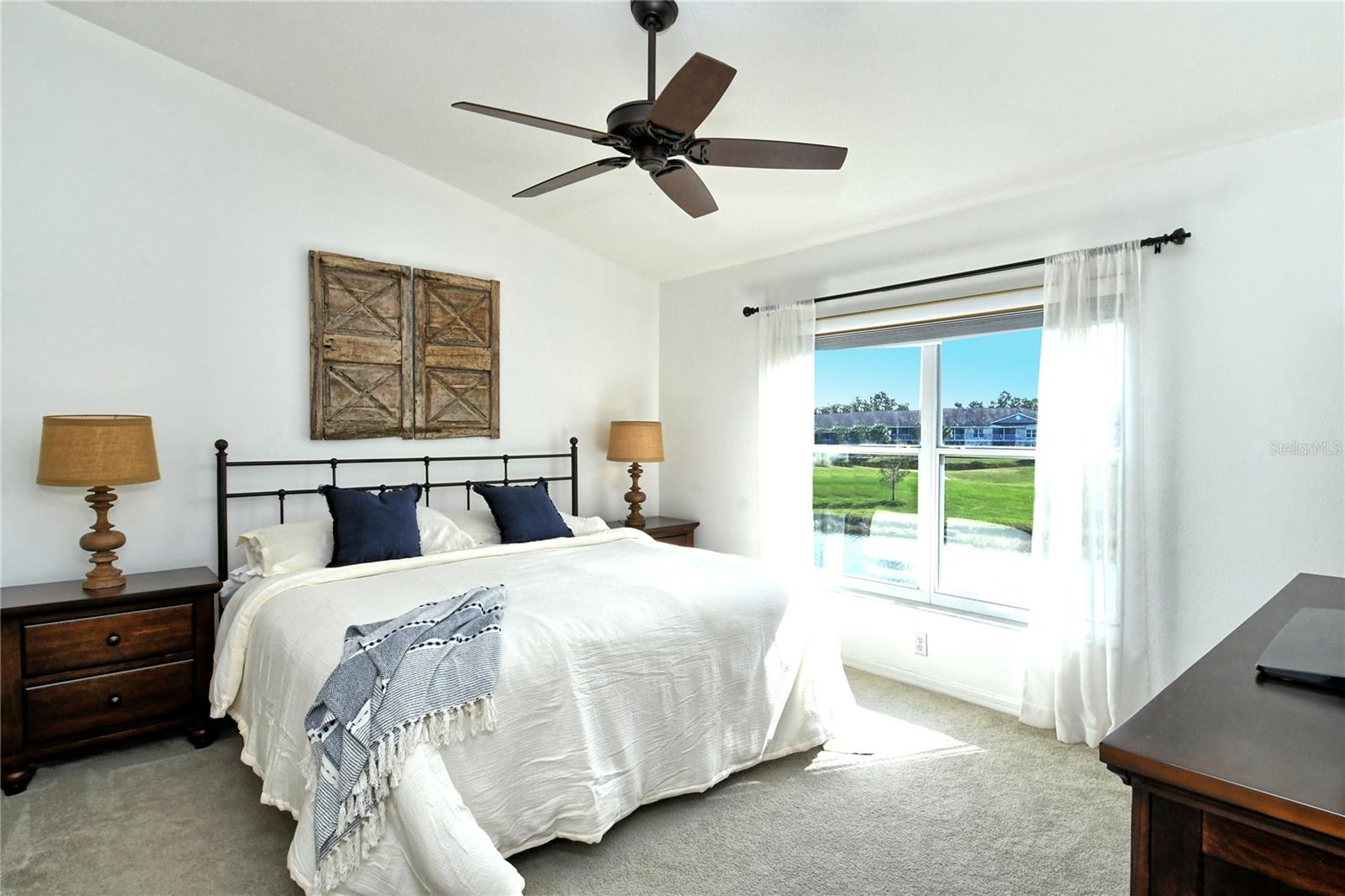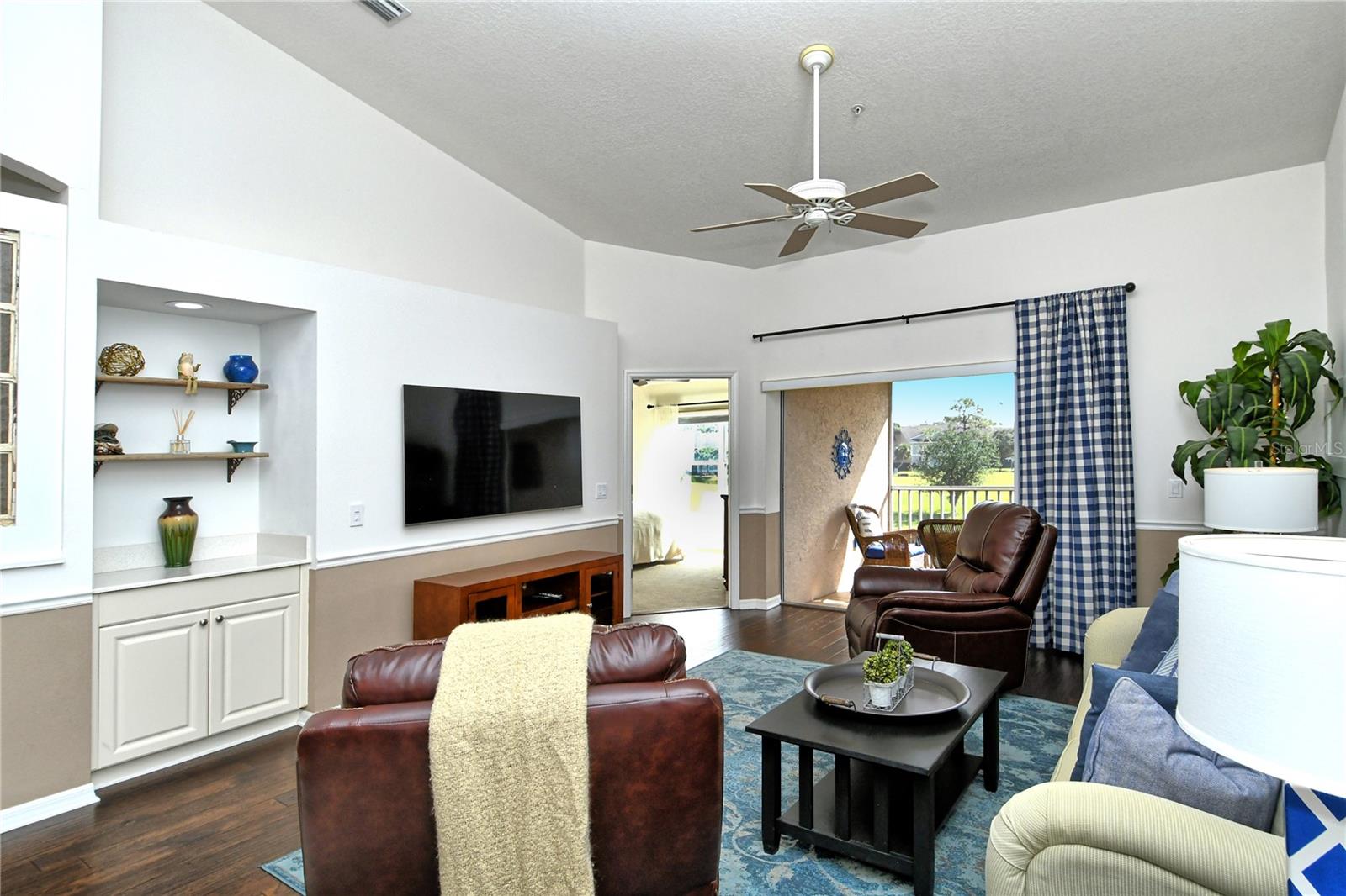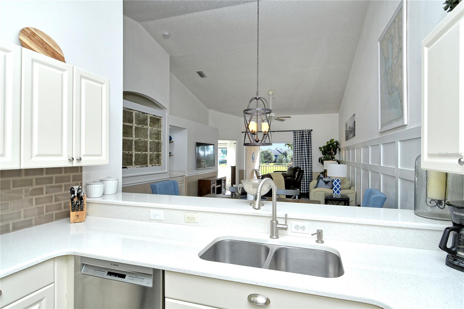 Take a look at this gorgeous, completely updated "Barrington" model veranda in Heritage Oaks Golf & Country Club that is being sold Turn-Key Furnished. As soon as you step through the front door you're greeted with an abundance of natural light, large vaulted ceilings, and a wonderfully appointed and updated space. The views from this unit are absolutely spectacular. Enjoy evenings on your two private screened lanais and take in the panoramic and sweeping views of water and the 14th Signature Hole of the golf course - this is truly a premium view! The kitchen has been thoughtfully updated with quartz countertops, stainless steel appliances, and a lovely subway tile backsplash making this the perfect space for an evening in or for entertaining friends and family. This property also features some amazing wood work details such as chair rail throughout, a lovely dry bar with custom wood shelving, and a gorgeous wood panel molding detail on the back wall in the living room - this detail really adds some character and charm to this outstanding property. In addition, beautiful hand-scraped laminate flooring has been installed in the living, dining, and den spaces giving a perfect amount of warmth to the space. Both bathrooms have been updated with new counter tops and light fixtures as well as a completely renovated shower with spectacular tile in the primary bath complete with a frameless shower door. The den/study is a perfect flex space and can be used as an office, den, or even a third bedroom as a custom frosted window has been installed for enhanced privacy. This property is perfect for a seasonal owner or even as a primary residence. Watch the abundance of wildlife in Heritage Oaks as the community is a Certified Audubon Neighborhood. Heritage Oaks is known for its pristine 18-hole golf course, har-tru tennis courts, fitness center, 24-hour security, an impressive clubhouse with a lovely restaurant and the sensational 19th Hole Lounge, 5 swimming pools, and a calendar of events packed with activities. You will not want to miss out on this spectacular home, it won't last long!
