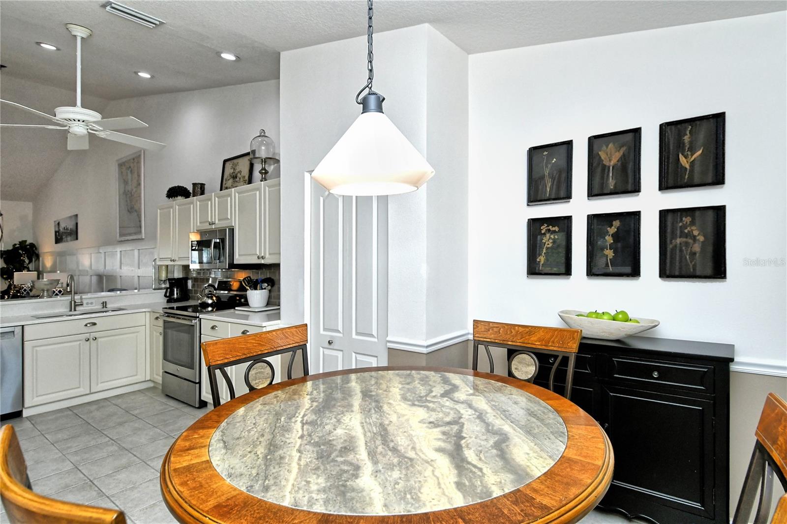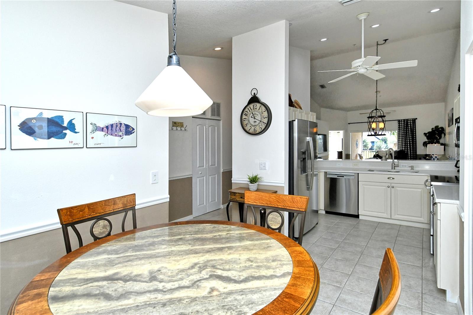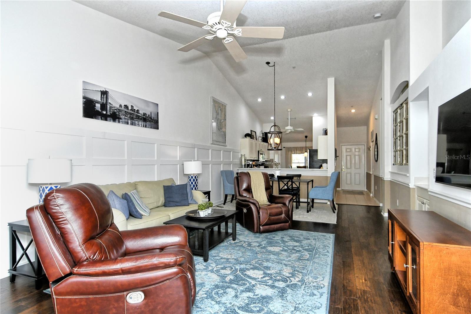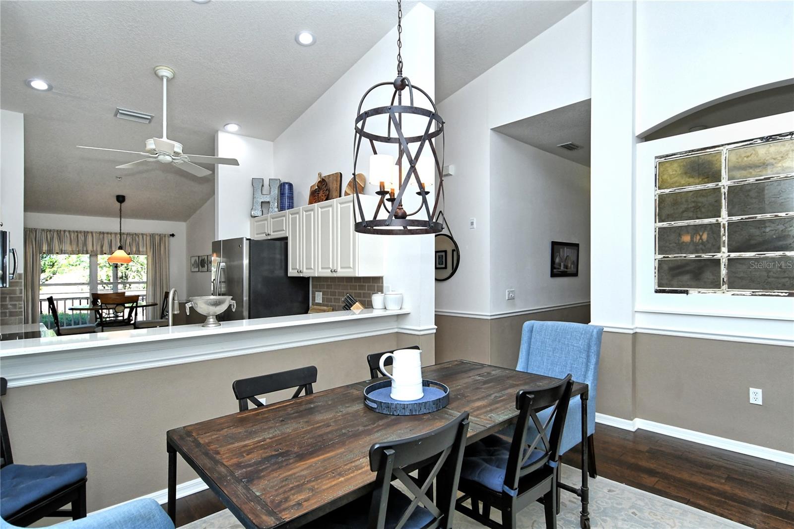 Take a look at this gorgeous, completely updated "Barrington" model veranda in Heritage Oaks Golf & Country Club that is being sold Turn-Key Furnished. As soon as you step through the front door you're greeted with an abundance of natural light, large vaulted ceilings, and a wonderfully appointed and updated space. The views from this unit are absolutely spectacular. Enjoy evenings on your two private screened lanais and take in the panoramic and sweeping views of water and the 14th Signature Hole of the golf course - this is truly a premium view! The kitchen has been thoughtfully updated with quartz countertops, stainless steel appliances, and a lovely subway tile backsplash making this the perfect space for an evening in or for entertaining friends and family. This property also features some amazing wood work details such as chair rail throughout, a lovely dry bar with custom wood shelving, and a gorgeous wood panel molding detail on the back wall in the living room - this detail really adds some character and charm to this outstanding property. In addition, beautiful hand-scraped laminate flooring has been installed in the living, dining, and den spaces giving a perfect amount of warmth to the space. Both bathrooms have been updated with new counter tops and light fixtures as well as a completely renovated shower with spectacular tile in the primary bath complete with a frameless shower door. The den/study is a perfect flex space and can be used as an office, den, or even a third bedroom as a custom frosted window has been installed for enhanced privacy. This property is perfect for a seasonal owner or even as a primary residence. Watch the abundance of wildlife in Heritage Oaks as the community is a Certified Audubon Neighborhood. Heritage Oaks is known for its pristine 18-hole golf course, har-tru tennis courts, fitness center, 24-hour security, an impressive clubhouse with a lovely restaurant and the sensational 19th Hole Lounge, 5 swimming pools, and a calendar of events packed with activities. You will not want to miss out on this spectacular home, it won't last long!