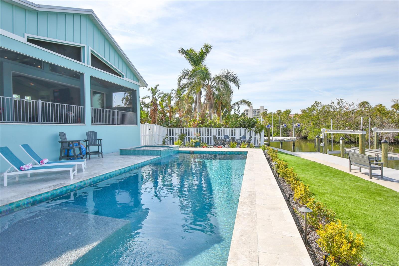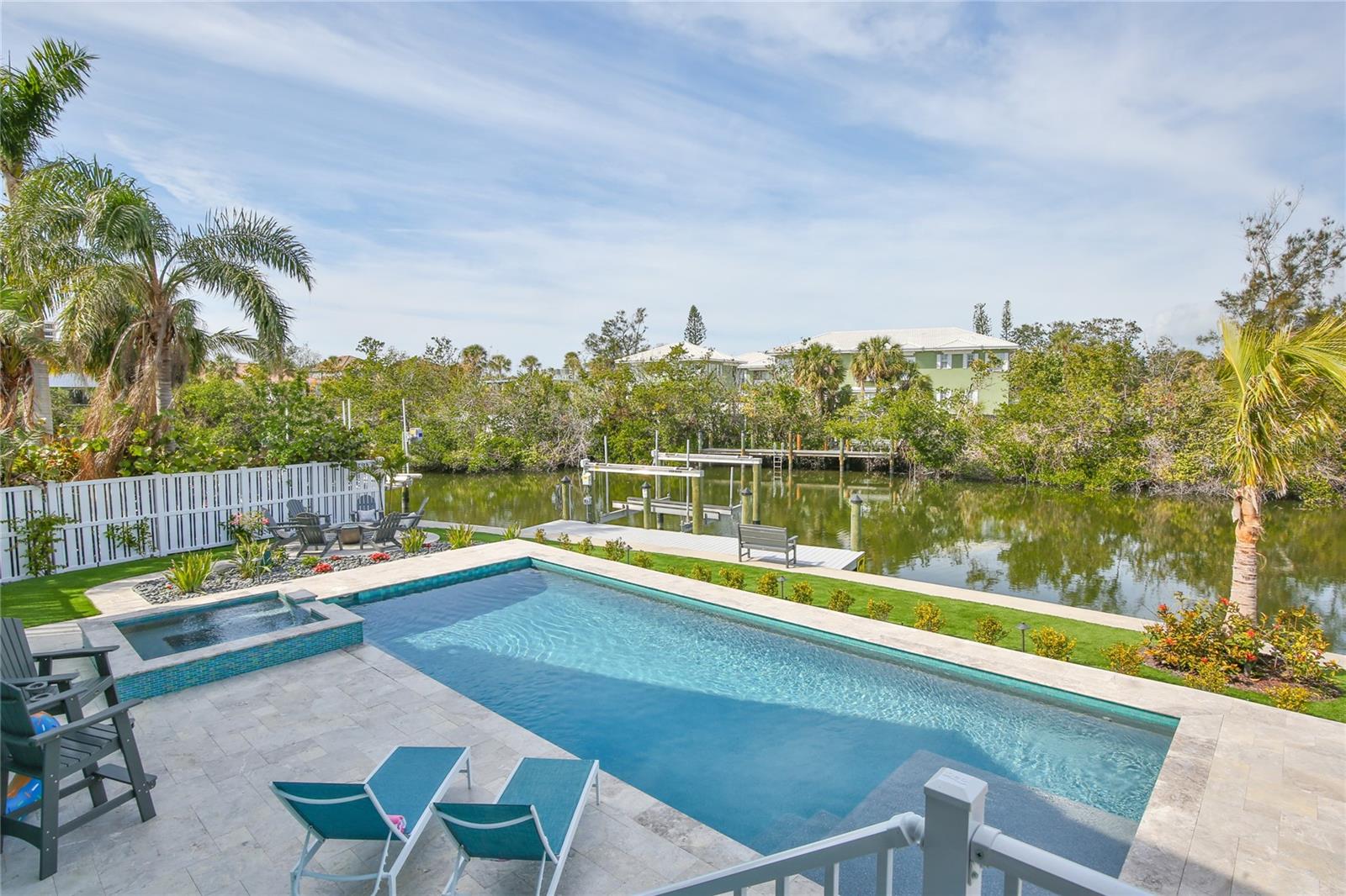 Stunning Coastal Elegance at 262 Island Circle, Siesta Key! Welcome to an unparalleled blend of sophistication and coastal charm. Home is being sold furnished. Fabulous location! Nestled on the exclusive Palm Island neighborhood of Siesta Key, this exquisite residence offers an extraordinary island lifestyle—perfectly positioned close to the pristine, white sand Beach of Siesta Key and the vibrant energy of Siesta Village. Spanning close to 3,500 square feet of meticulously designed living space, this newly built custom home provides the ultimate in luxury. The home includes 4 bedrooms, 4 full bathrooms, plus 2 additional half baths. Enjoy an additional, comfortable family room on the second floor. Every detail has been carefully curated to create a seamless balance of form and function. From the moment you enter, you'll be captivated by the open-concept layout, soaring ceilings, and walls of glass that flood the home with natural light, offering breathtaking panoramic views of the Grand Canal, playful manatees, water birds, and lush tropical landscapes. The chef-inspired kitchen is a culinary dream, featuring top-of-the-line Thermador appliances, custom cabinetry, and an expansive, Quartzite island perfect for both cooking and entertaining. The spacious living and dining areas flow effortlessly into the outdoor oasis, where a resort-style pool, hot tub, gas fire pit and outdoor kitchen await. Whether you're hosting guests or simply enjoying a quiet evening, this home offers the ideal setting for any occasion. The first floor primary suite is a true retreat, with ship lap ceiling and accent wall and a spa-like bathroom that includes a walk-in shower and dual vanities. Each additional bedroom/en-suite has been designed with comfort and luxury in mind, providing private, serene spaces for family and/or guests. In addition to the gorgeous interior, the property offers 80 feet of water frontage and unrivaled outdoor amenities including a private dock with 10,000 lb. boat lift ideal for boating enthusiasts to access Sarasota Bay and beyond. Situated just moments from the world-famous Siesta Key Beach, Iconic Siesta Village, and the vibrant downtown Sarasota scene, 262 Island Circle is the epitome of coastal, waterfront living. This is more than a home—it's an island lifestyle. This magnificent residence offers the perfect fusion of luxury and location. Discover your own slice of paradise on Siesta Key today. Call for an appointment.