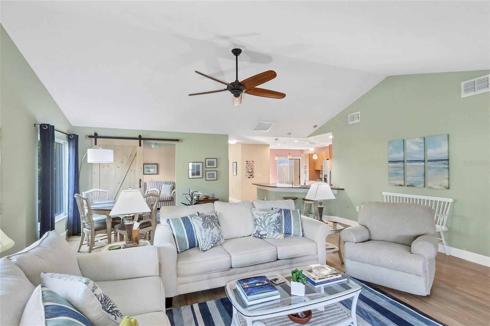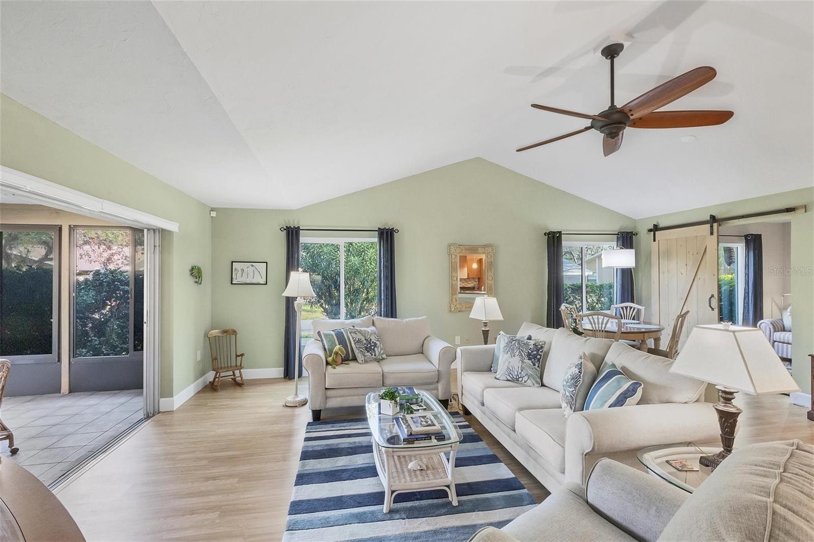 WAIT till you see this BEAUTIFULLY UPDATED villa in 55+ TALLYWOOD centrally located close to downtown Sarasota, St. Armand's/Lido, UTC, I-75 and SRQ! This home has plenty of large windows to the East, North and South to let the Florida sunshine in. The Cathedral ceilings lend volume and size to the common area rooms. You have 2 bedrooms (Split plan) PLUS a den with a BARN DOOR and can easily be converted back to a 3rd bedroom, BOTH full bathrooms have been updated including commodes, vanities, vessel bowl sinks shower doors and European digital temp controlled shower. Updated kitchen includes new wood, soft close cabinetry, granite countertops, tile backsplash and a suite of stainless steel appliances, as an added bonus there is a small fenced in patio off the kitchen for BBQ or a bistro table/chairs. Newer flooring with 5.25" floor molding and all interior windows have been replaced with HURRICANE IMPACT GLASS windows. As an added bonus you will appreciate the beautifully updated Florida room that has newer removable windows (non impact) to get a 4 seasons room. You have an assigned carport with a storage room as well very close to your front door. Your new villa is an end unit affording more windows and natural light and sits on a quiet corner lot. Other features include the removal of popcorn ceilings, extra attic insulation, matching suite washer dryer, newer hot water tank upgraded electrical to include recessed lighting and modern switches, 6 ceiling fans, new gutters in the back, interior doors and hardware, Ring security video and doorbell, Schlage key pad dead bolt plus NEST thermostat. Community amenities include oversize caged pool, clubhouse for community events, fitness area and shuffleboard. Price improvement: $298,000