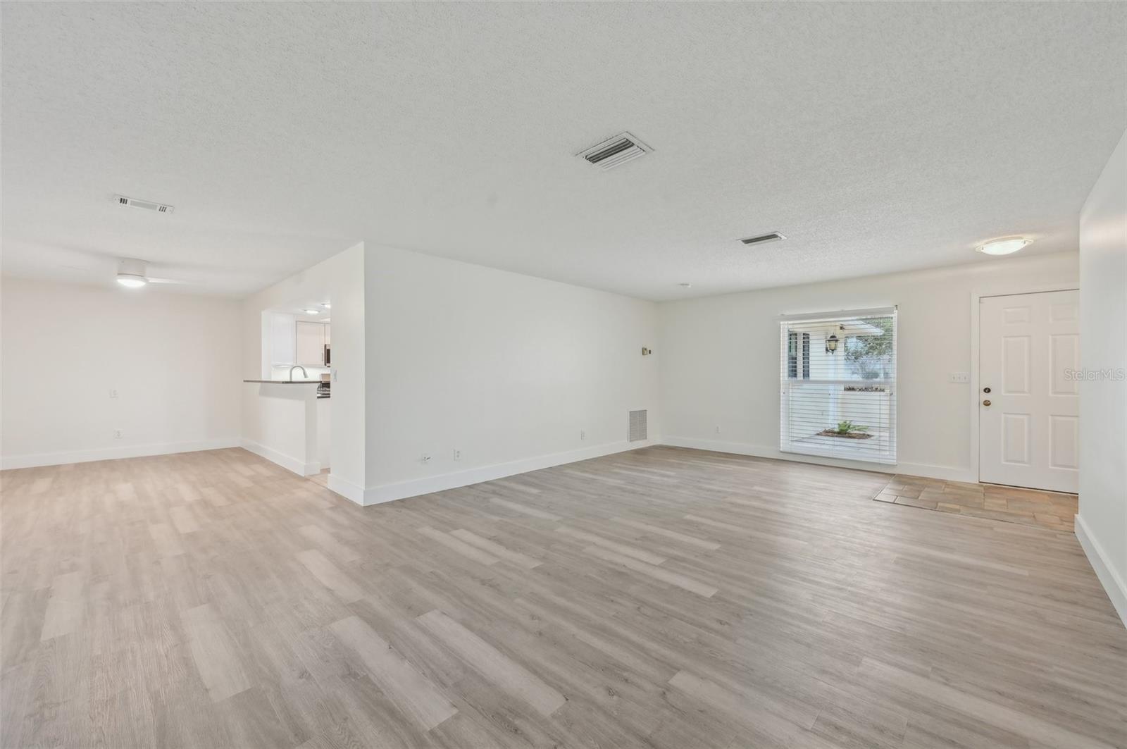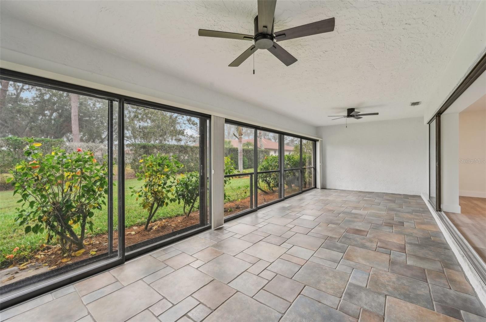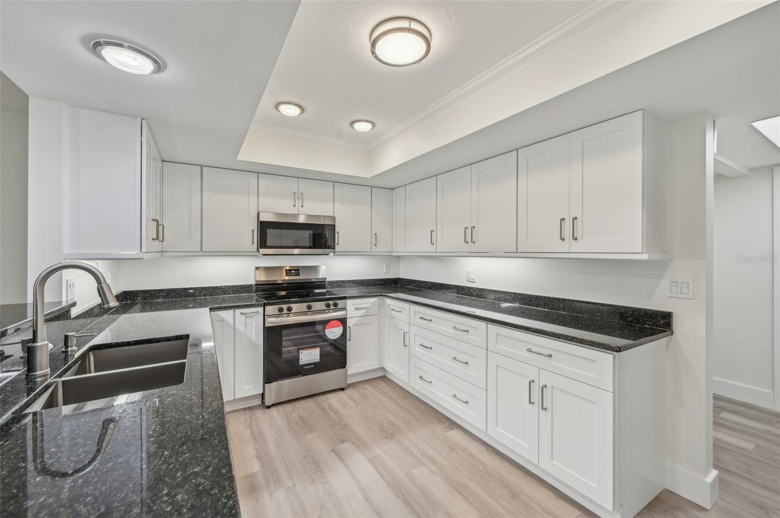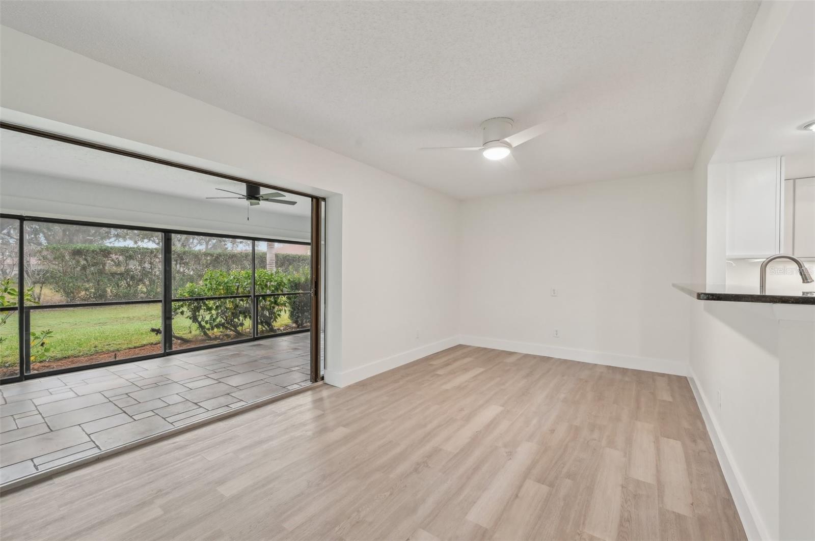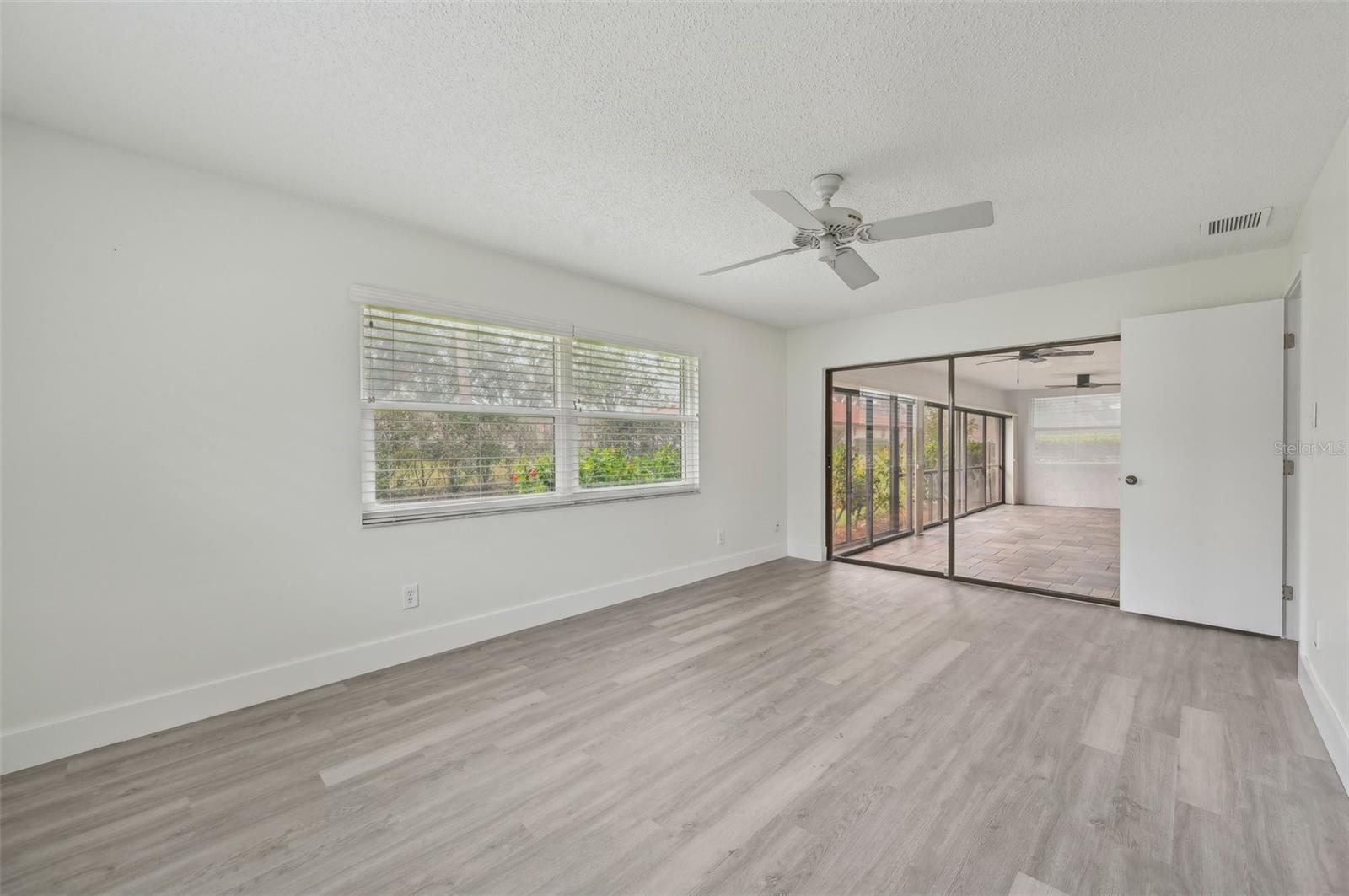 Welcome to 7157 Fairway Bend Circle, a beautifully renovated 2-bedroom, 2-bath villa with a versatile den, situated on a peaceful cul-de-sac in the highly desirable Palm Aire community. This stunning 2,056-square-foot home was thoughtfully updated in 2024 with fresh interior and exterior paint, new lighting, and luxury vinyl plank flooring throughout. The living room is impressively large, offering ample space for both relaxation and entertaining. The completely remodeled kitchen features Frigidaire appliances, soft-close cabinetry, granite countertops, and stylish lighting, making it both functional and elegant. The thoughtfully designed layout provides privacy and comfort, with the guest bedroom and bath located at the front of the home, while the primary suite is tucked away in the back. The primary suite boasts a walk-in closet, two additional closets, a walk-in shower, and a single-sink vanity, complemented by functional pocket doors. Sliding doors from the primary bedroom lead to a cozy den, which connects to the enclosed, air-conditioned lanai with elegant porcelain tile flooring—perfect for year-round relaxation or entertaining. Practical upgrades include a 2022 roof, a 2025 HVAC system, an epoxy-coated garage floor (2025), and a 2016 water heater. Palm Aire offers residents access to a heated community pool, clubhouse, and shuffleboard courts, with optional golf memberships available. Conveniently located near Sarasota’s top attractions, including the airport, University Town Center, downtown, and the beautiful Gulf beaches, this villa combines modern living with an unbeatable location. Don’t miss the chance to make this beautiful property your new home. One or more photos have been virtually staged.