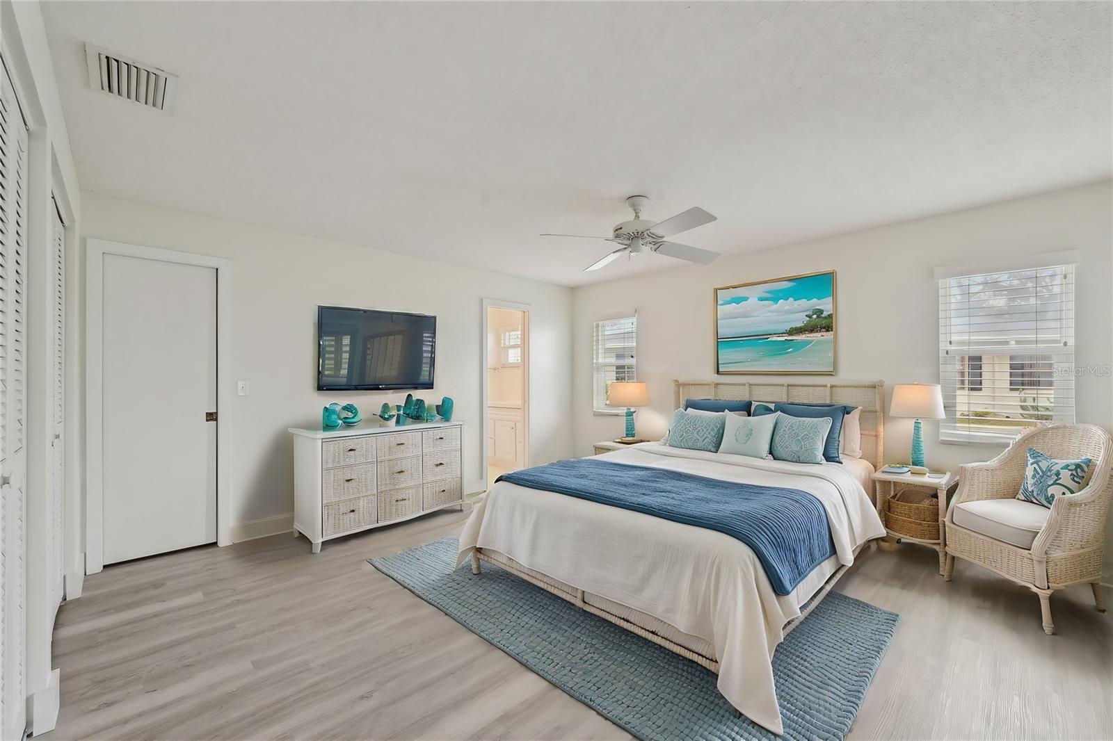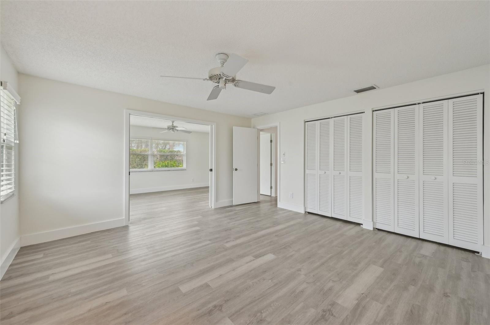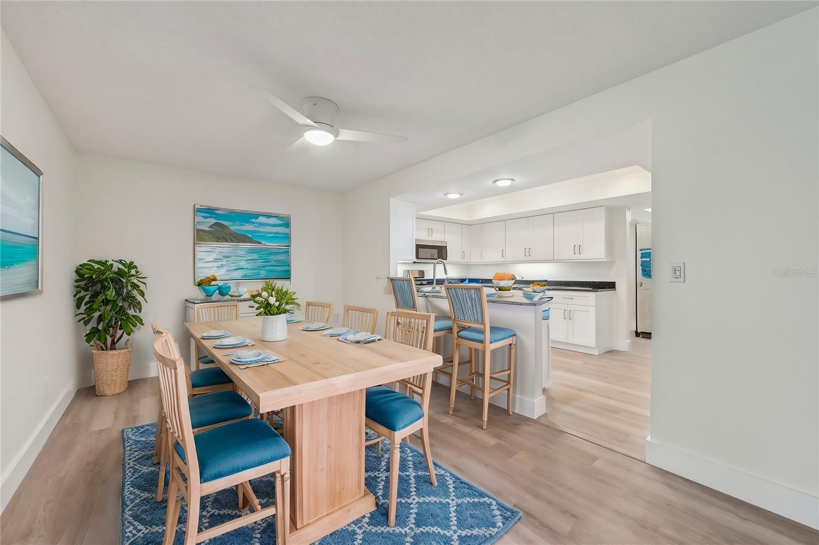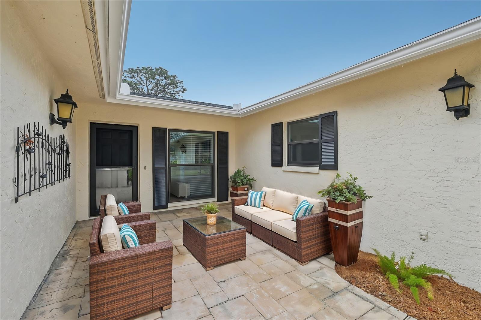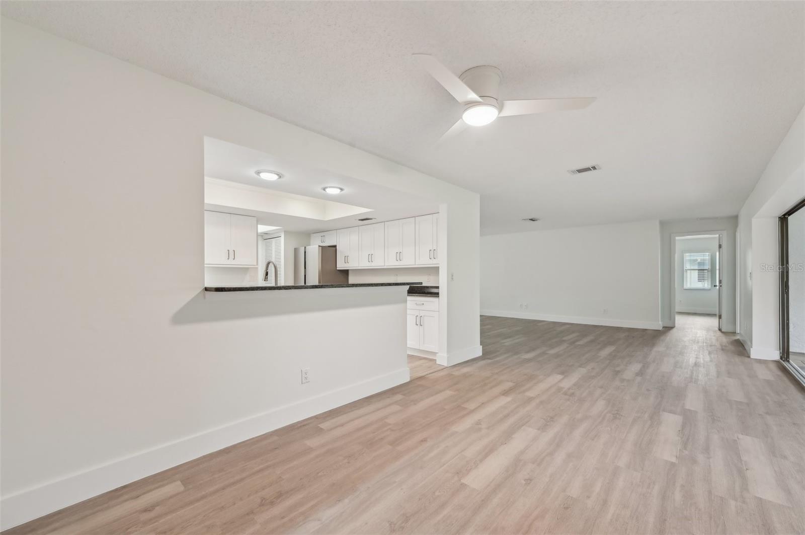 Welcome to 7157 Fairway Bend Circle, a beautifully renovated 2-bedroom, 2-bath villa with a versatile den, situated on a peaceful cul-de-sac in the highly desirable Palm Aire community. This stunning 2,056-square-foot home was thoughtfully updated in 2024 with fresh interior and exterior paint, new lighting, and luxury vinyl plank flooring throughout. The living room is impressively large, offering ample space for both relaxation and entertaining. The completely remodeled kitchen features Frigidaire appliances, soft-close cabinetry, granite countertops, and stylish lighting, making it both functional and elegant. The thoughtfully designed layout provides privacy and comfort, with the guest bedroom and bath located at the front of the home, while the primary suite is tucked away in the back. The primary suite boasts a walk-in closet, two additional closets, a walk-in shower, and a single-sink vanity, complemented by functional pocket doors. Sliding doors from the primary bedroom lead to a cozy den, which connects to the enclosed, air-conditioned lanai with elegant porcelain tile flooring—perfect for year-round relaxation or entertaining. Practical upgrades include a 2022 roof, a 2025 HVAC system, an epoxy-coated garage floor (2025), and a 2016 water heater. Palm Aire offers residents access to a heated community pool, clubhouse, and shuffleboard courts, with optional golf memberships available. Conveniently located near Sarasota’s top attractions, including the airport, University Town Center, downtown, and the beautiful Gulf beaches, this villa combines modern living with an unbeatable location. Don’t miss the chance to make this beautiful property your new home. One or more photos have been virtually staged.