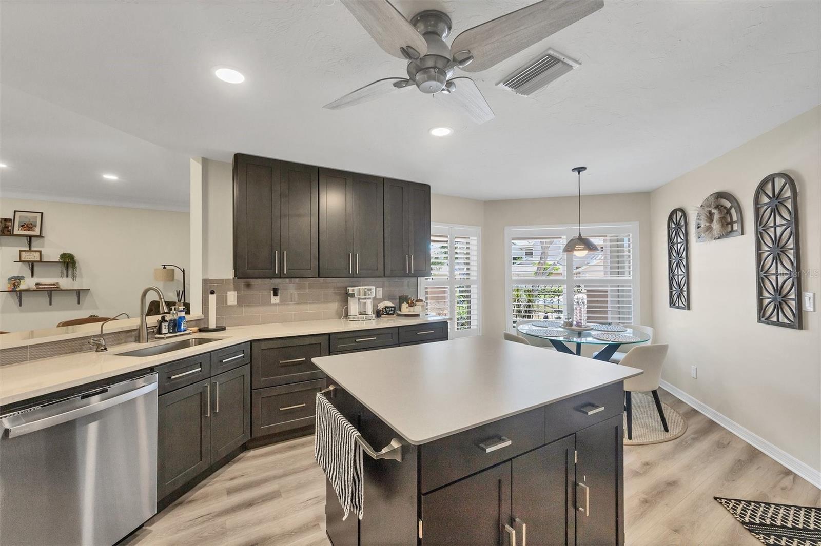 Welcome to this breathtaking residence in The Landings! This home has undergone meticulous updates, featuring kitchen enhancements such as new cabinetry, countertops, backsplash, flooring, under cabinet lighting, and appliances. The bathrooms are sleek and modern, featuring complete remodels with new cabinets and countertops, tile flooring, glass shower doors, light fixtures and toilets. Additional updates feature all-new lighting, ceiling fans, washer and dryer, door handles, plantation shutters, window treatments, water softener and vinyl flooring. The entire home, including the two-car garage floor, has been freshly painted. The AC was updated in 2022 and includes a UV air purifier. California closets have been installed in all closets for optimal storage and organization. The master suite is ideally situated at the back of the house on the main floor. The living and dining areas are designed for hosting, boasting lofty ceilings and French doors that open to a private screened porch. The Landings is a secure, guard-gated community that offers a range of amenities, including a gym, tennis courts, social activities, a kayak launch, a pool/spa, and a nature trail leading to the bayfront. With its close proximity to beaches, restaurants, shopping, and downtown, this community is the perfect place to call home.