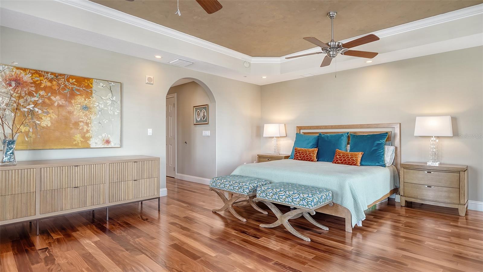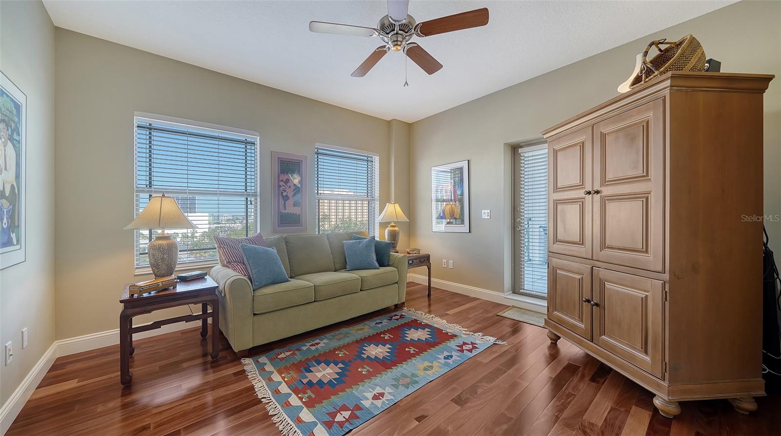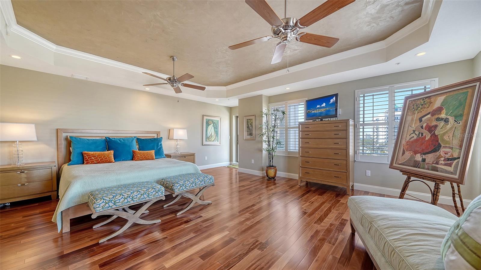 KANAYA, a boutique building just steps away from the vibrant cultural epicenter of downtown Sarasota, where luxury, lifestyle, and location converge. This northwestern-facing 5th-floor corner end unit features 3,003 square feet, 3 bedrooms, 3.5 baths, and an office/den with stunning views of Downtown Sarasota and Sarasota Bay. A private elevator delivers you to a private vestibule/foyer, setting the stage for a warm welcome. The open flow dining/living area is perfect for entertaining, leading out to the expansive balcony where you can take in the Florida breeze and feel the energy of Burns Court and Laurel Park below. The kitchen's spacious layout allows everyone to enjoy watching culinary creations come to life. The private primary suite includes a 13x10 private study, ideal for those working remotely and needing privacy. The entire condo is wired with Cat 5e ethernet cables for the fastest and most efficient connectivity. The spacious suite features a large corner bedroom with separate balcony access, an owner's bath suite with a soaking tub, shower with transom window, water closet, two vanities, and an oversized walk-in closet. Two additional bedroom ensuites also have access to a private balcony. Kanaya is an exclusive, secure building with a Butterfly MX smart intercom system, a cloud-based access controller that works whether you’re onsite or remote. Kanaya amenities include a magnificent 16th-floor rooftop lounge with showstopping panoramic views of the barrier islands, downtown Sarasota, bayfront, and Marina Jacks out to the Gulf of Mexico. The 3rd floor offers a south-facing 65-foot heated lap pool, sunbathing deck, fire tables, shower/sauna, yoga room, fitness center, and indoor social room and kitchen. Additional features include two deeded parking spaces and two storage rooms, plus extra bike storage for all your toys. The Burns Court district provides easy access to eateries, a movie theater, yoga studio, and trendy boutiques. Barrier islands like Lido, Siesta, and Longboat Key, known for their powdery sand and turquoise waters, are a short drive away. Kanaya is a pet-friendly building, so your furry friends are welcome. Kanaya has excellent financials, is well-funded, has a backup building generator, and recently passed favorably the Milestone Report by Karins Engineering, providing owners peace of mind. Overall, this residence offers the ideal combination of space, features, and proximity to the dynamic downtown area. This hidden gem is a value and available immediately!