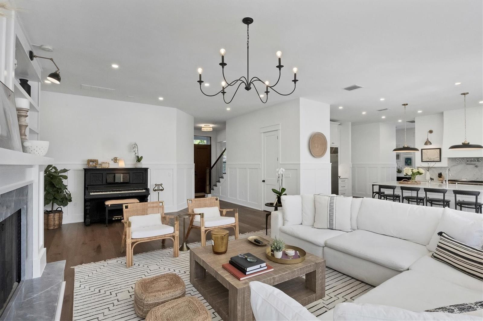 Welcome to this stunning 2021-built home in one of Sarasota’s most iconic and picturesque historic neighborhoods, Cherokee Park. Offering luxurious living with thoughtful design, this spacious residence of over 6000 square feet features a desirable first-floor primary suite with a decadent bathroom with soaking tub, oversized marble shower, and access to the covered porch for your morning coffee. The gourmet kitchen is equipped with Wolf and Subzero appliances, marble countertops, a walk-in pantry, oversized island for food prep or casual dining, and sweeping views of the pool and lush backyard. The family room is centrally located for optimal entertaining and boasts a gas fireplace, marble detail, and custom built-ins. The sophisticated den offers custom cabinetry and is ideal for a home office or a sitting room. Upstairs, you'll find four additional bedrooms, each offering ample space and walk-in closet storage, complemented by three full bathrooms. An oversized bonus room with wet bar and an open loft space offer additional living spaces on the second floor. Walk to the third floor for a finished attic space, perfect for additional storage or even more living space. The first floor laundry room boasts a custom mudroom with shoe cubbies and a built-in desk, conveniently located off the four-car garage. The private in-law suite includes a kitchenette, separate laundry, and elevator access for added comfort and independence. This home features beautiful oak flooring throughout, adding warmth and elegance to every room. Impeccable attention to detail is evident in every corner and the rooms are filled with abundant natural light. Enjoy quiet evenings on the back porch overlooking the heated pool and fenced yard with newly installed and maintenance-free turf grass. Built with steel-reinforced framing and durable Hardie board cement siding, this home offers superior structural integrity, long-lasting durability, and low-maintenance peace of mind. This house remained dry and with no damage following the hurricanes. Perfect for multigenerational living or hosting guests, this home combines modern elegance with practicality. Make this your own-Seller is willing to customize this home to suit your needs. Co-listing agent is the owner.