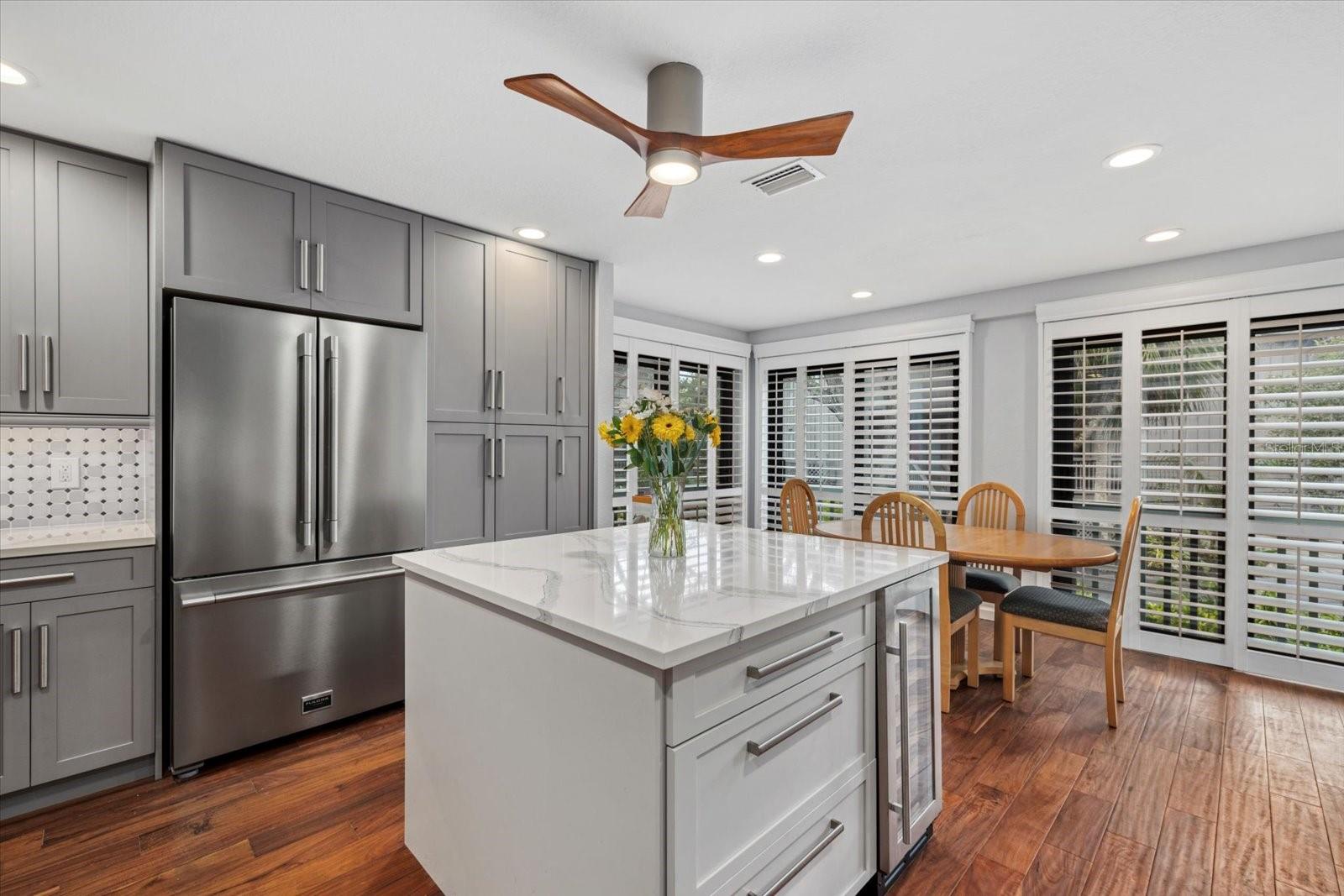 Welcome to the Landings, a renowned and very much in demand neighborhood in mid Sarasota. This tastefully remodeled free standing townhome hits all the buttons. It's in impeccable condition and ready for a new owner. No damage or water intrusion from hurricanes. The home has had extensive work done. To name a few items: windows and sliding glass doors replaced with hurricane glass fixtures, total kitchen remodel, wall convection oven, beautiful quartz countertops, wood cabinets and stainless steel appliances, new flooring, remodeled baths, paint, newer air conditioner, plantation shutters throughout, new doors, wine cooler and the list goes on. Relax on the expansive deck off the living and dining rooms with your morning coffee or evening cocktail. The decor is up to date and all neutral with an attractive accent wall. You must see to appreciate the quality.