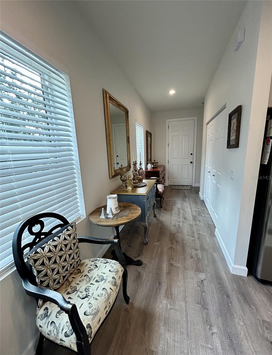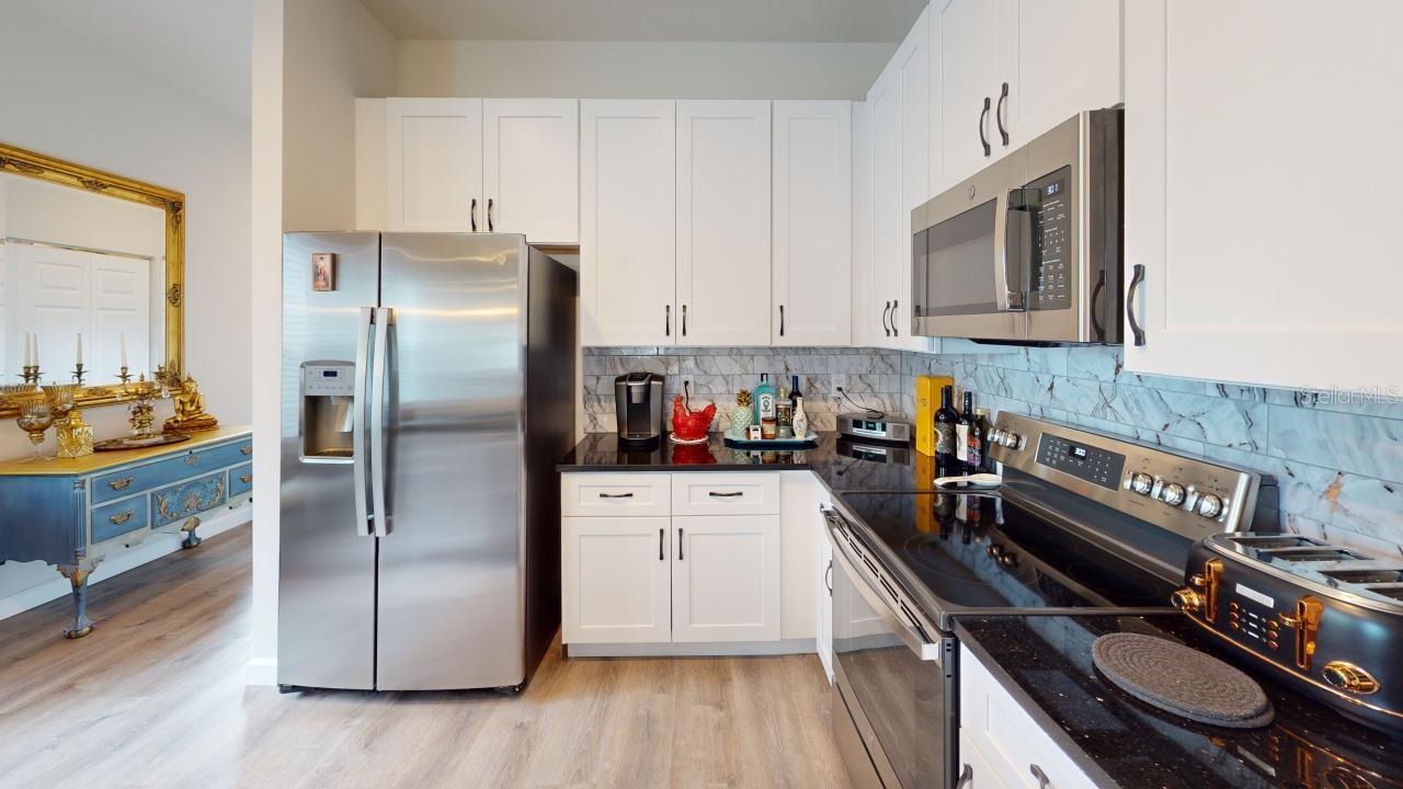 This charming Sarasota residence built 3 years ago in the gated community of Hammock Place offers meticulously designed living space on a single floor. The home features three bedrooms, including a spacious primary suite and two well-appointed bathrooms. The upgraded kitchen is a highlight, showcasing crisp white (soft closure) cabinetry, GE Profile stainless steel appliances, granite countertops, a striking marble backsplash and bar seating at the island. The dining area exudes elegance with a crystal chandelier creating a unique ambiance. Luxury vinyl floors run throughout, complementing the light airy feel of the rooms. Large windows in the living area and bedrooms allow ample natural light and offer views of the surrounding greenery. The bathrooms feature contemporary fixtures and marble inspired tiling. This home seamlessly blends an open floor plan for comfort and style, with thoughtful details like ceiling fans and recessed lighting enhancing its appeal. In addition, other features that this exceptional quality home offers are high ceilings (9'5"), ICF's insulated concrete walls, hurricane rated impact glass windows and doors, 2 car garage with cabinet storage space and an extra refrigerator. Hammock Place is a gated and deed restricted community of 40 homes conveniently located near Bobby Jones Golf Course, Sarasota Lawn Bowling Club, Nathan Benderson Park, University Parkway for local dining, shopping, UTC Mall, healthcare facilities, SRQ airport, downtown Sarasota, Lakewood Ranch Main Street, our famous beautiful white sand Gulf Beaches (Lido 8mi & Siesta Key 11mi), Ringling Museum and many other attractions nearby. Schedule your private showing today, you won't be disappointed!