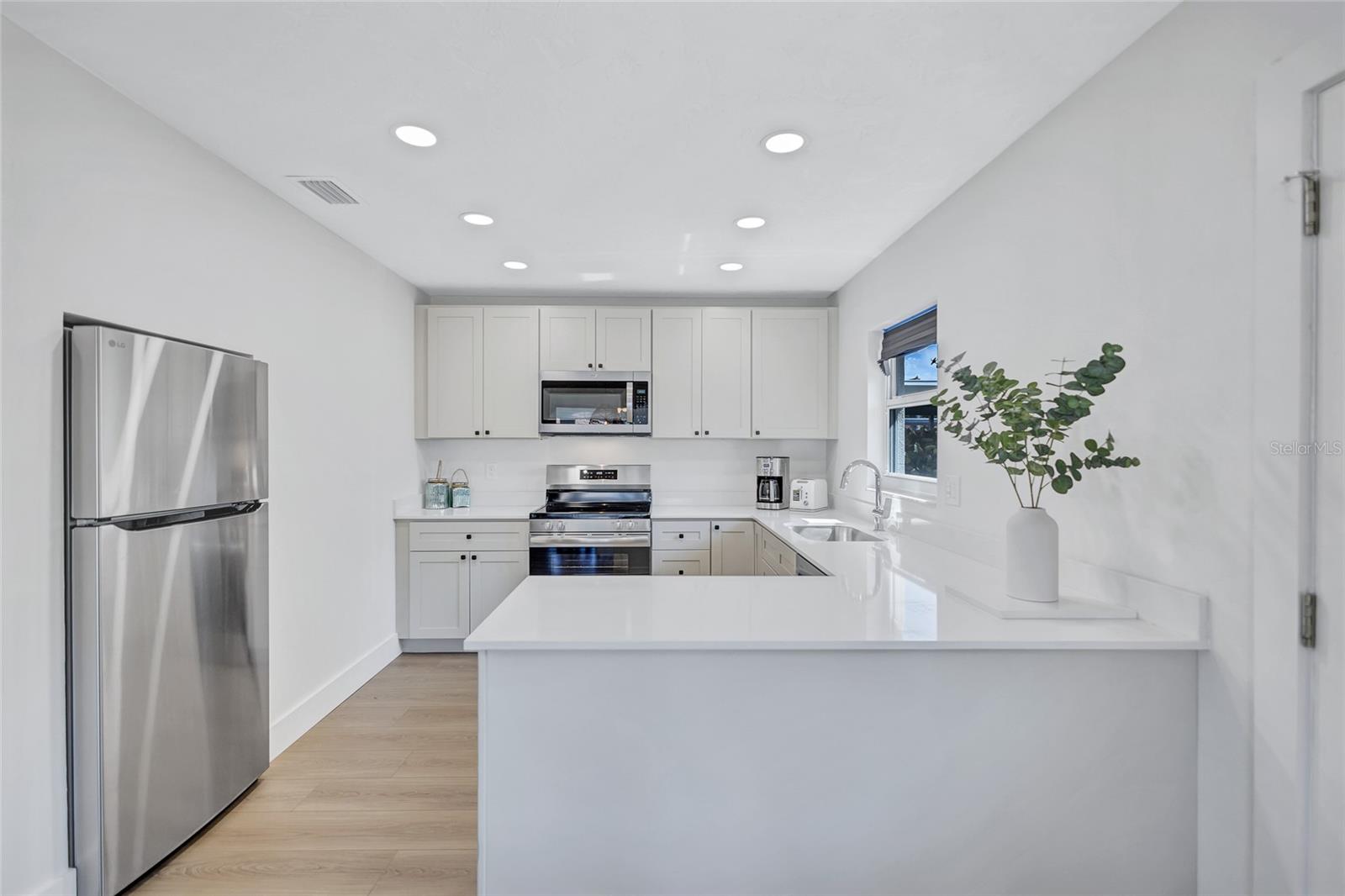 Discover your slice of paradise in this beautifully renovated villa nestled in the much sought after community of Vista Hermosa on Siesta Key. Step inside to find a completely transformed living space featuring new luxury vinyl flooring throughout. The kitchen boasts a recent renovation with elegant quartz countertops and gleaming stainless steel appliances, including a new dishwasher, stovetop, and microwave. Comfort meets efficiency with a newly installed A/C system, ensuring year-round climate control. This maintenance-free community offers a heated swimming pool, renovated clubhouse w/kitchen, grilling areas, and an assigned covered parking space. Located just a few minutes from the world-renowned Siesta Beach, known for its powdery sand and crystal-clear Gulf waters, this 2 bedroom, 2 bath villa offers the perfect balance of relaxation and recreation. The vibrant Siesta Key Village is also nearby, providing endless opportunities for dining, shopping, and entertainment. Enjoy the convenience of living close to Stickney Pointe bridge where you can venture off the island in minutes to visit Downtown Sarasota, St. Armands's Circle and Longboat Key! This turnkey residence presents an excellent opportunity for those looking to establish roots in one of Southwest Florida's most desirable coastal communities. Whether as a permanent residence, seasonal retreat or investment opportunity, this villa's recent updates and prime location make it an ideal choice. Don't miss the chance to make this renovated coastal gem your own!