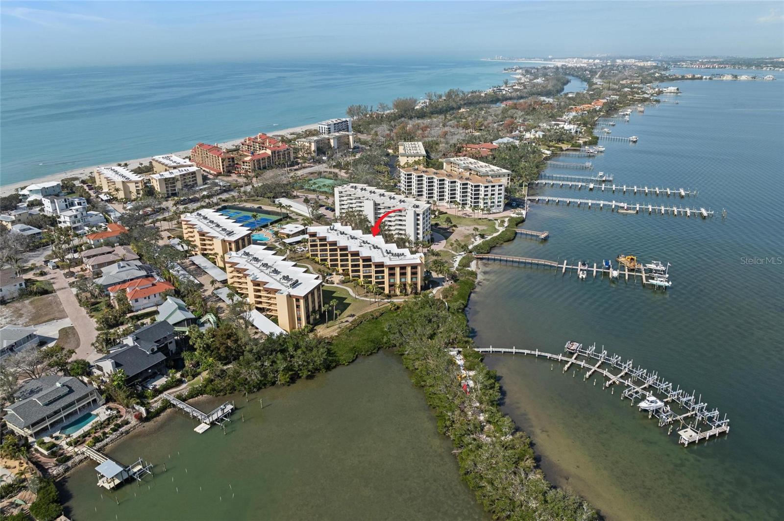 Gulf-to-Bay Paradise at 8767 Midnight Pass Rd #505F Experience the best of coastal living in this beautifully updated Gulf-to-Bay condo, offering breathtaking sunrise views over the bay and just a short stroll to stunning Gulf sunsets. Located in a highly sought-after community, this residence provides private beach access, two resort-style pools (one beachfront, one bayside), a dock for waterfront enjoyment, pickleball and tennis courts, a fitness center, and multiple grilling areas—all designed for an active and relaxing lifestyle. Inside, the condo features fresh paint, new laminate flooring, an updated kitchen, and the convenience of an in-unit washer and dryer. The spacious lanai is the perfect spot to unwind while taking in the tranquil bay views. Beyond the community, take full advantage of all that Siesta Key has to offer! Hop on the free Siesta Key trolley to explore local shops and restaurants in Siesta Village, or meet friends for a day of sun and sand at the award-winning Siesta Key Beach, renowned for its soft, powdery quartz sand.