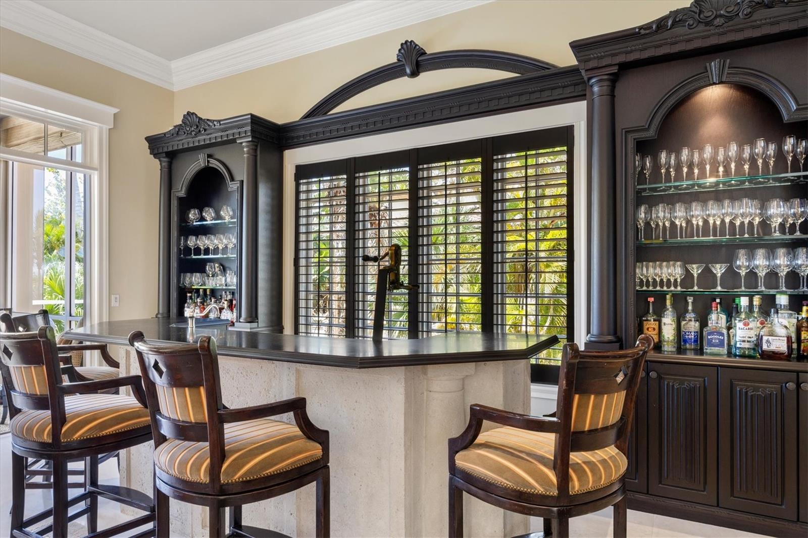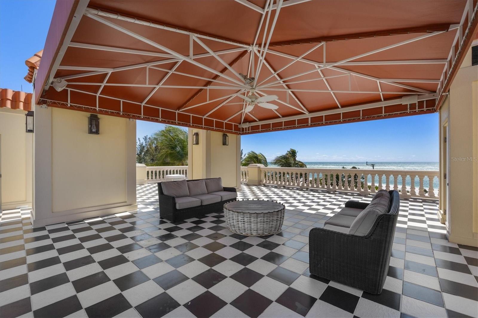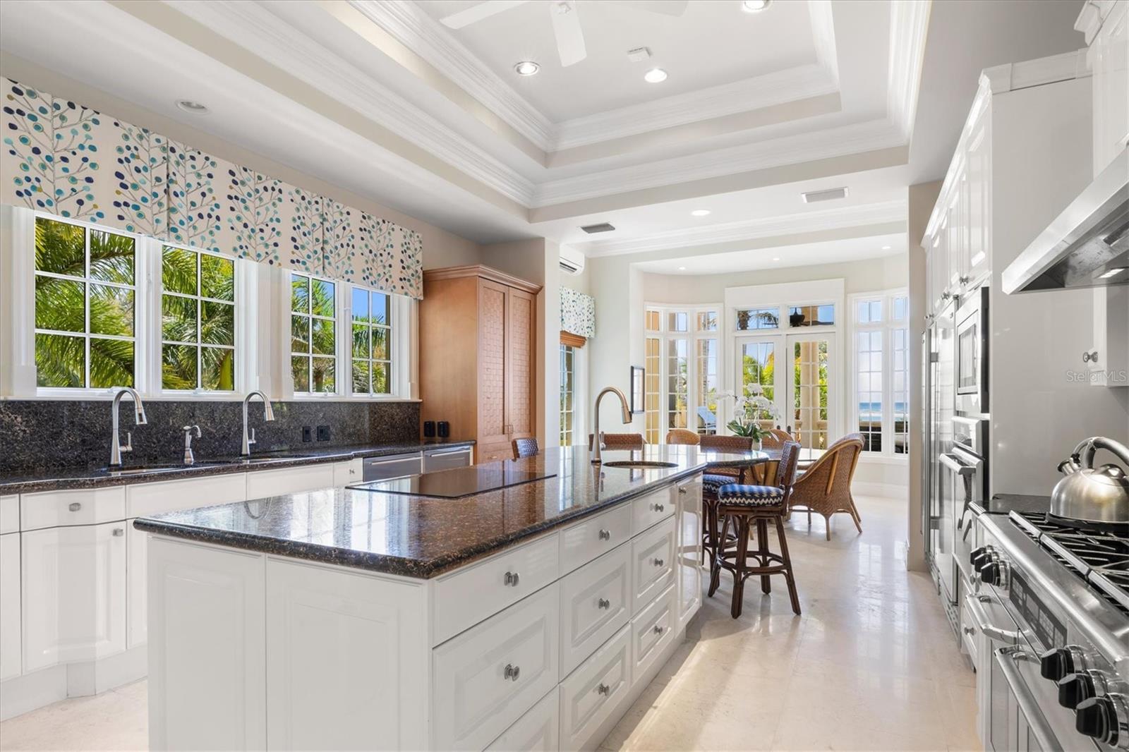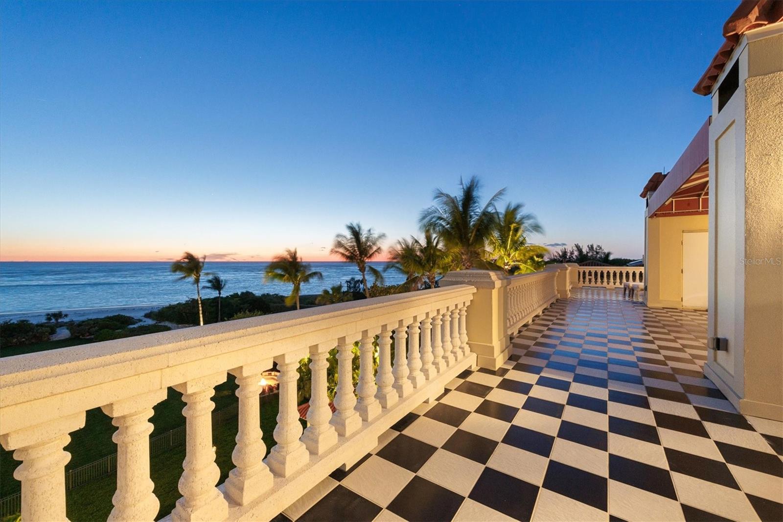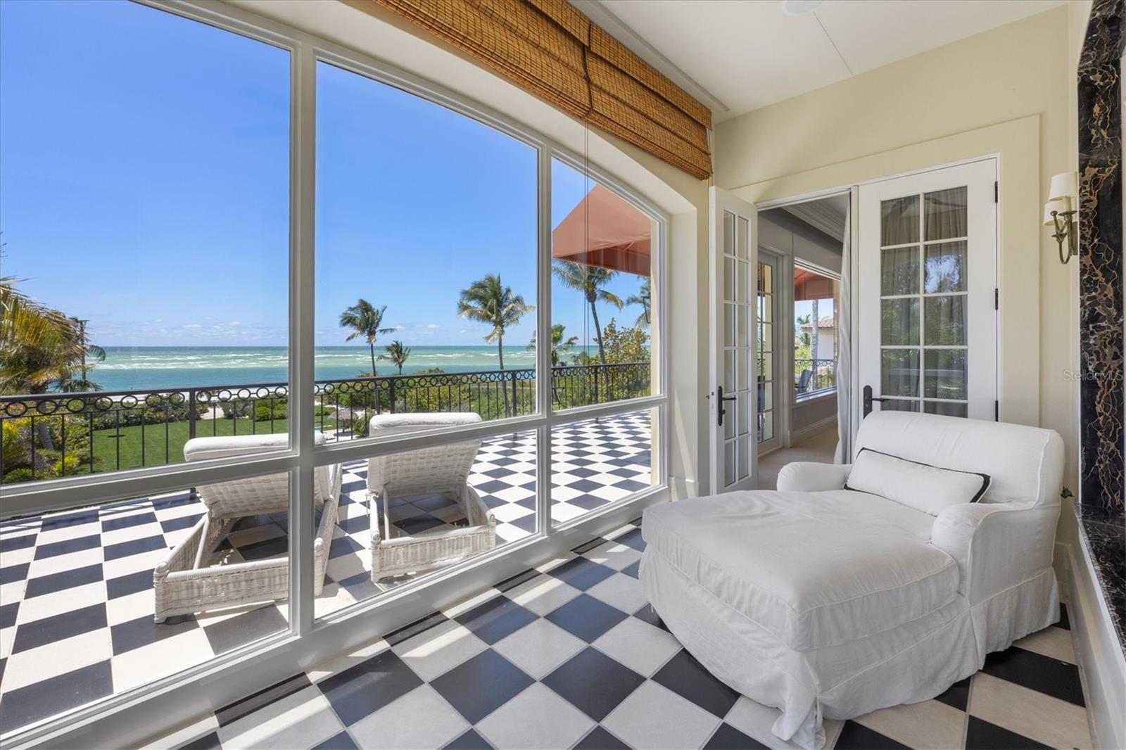 Along the iconic shores of Lido Key Beach, 1067 Westway Drive stands as a beacon of comfortable and sophisticated coastal living. Every detail has been meticulously curated to create an exceptional lifestyle situated on an extraordinary property in an extraordinary home. As you step into the sun-soaked atrium foyer, you are immediately greeted by the grand staircase made of travertine and adorned with custom railings. This entrance sets the casual tone for the rest of the home, where every room is a masterpiece of design and craftsmanship. The great room is a wonderful space, with its soaring ceilings, intricate moldings and stone fireplace. Floor-to-ceiling windows and doors offer panoramic views of the Gulf of Mexico, access to an enormous terrace and endless sunsets. This space is seamlessly connected to the bar and lounge, equipped with a glass-enclosed wine room with space for 500-plus bottles, creating a space that is ready to host friends and family. Adjacent to the lounge is a sunroom with glass walls that fill the room with natural light, creating a serene space to relax and unwind. The gourmet kitchen is a dream, boasting an enormous center island with seating and storage, granite counters, two sinks, two dishwashers, a Wolf® induction cooktop and a Dacor® range with six burners. Customized pullouts in the cabinetry and custom designed pantries ensure everything is organized. There is also an informal dining area enveloped in large banks of windows and doors providing access to the terrace and framing the best views. The adjacent dining room is the perfect setting for intimate dinners or lavish gatherings, with plenty of seating and a custom tray ceiling. Outside, the grounds are an oasis, with lush Florida landscaping, multiple covered and uncovered seating areas, a custom infinity-edge pool with intricate tile design, and multiple roof decks. One of the highlights of this home’s outdoor entertaining spaces is the rooftop deck, ready for hosting events with the well-equipped kitchenette and bath, and plenty of space for dining, dancing and enjoying the sunset over the Gulf of Mexico or the sunrise over Sarasota Bay and downtown Sarasota. The primary bedroom suite is a sanctuary of luxury and comfort, with its own private terrace overlooking the sparkling waters of the Gulf of Mexico, an adjacent exercise room and access to a front terrace. The resort-like en-suite bath is a work of art, with its dual vanities, oversized soaking tub with marble surround and enormous windows, and an indoor-outdoor marble walk-in shower. The custom organized closet offers a central storage island, abundant space for clothing, shoes and accessories, and its own private laundry room. The guest suites are retreats, each with their own en-suite bath, custom-organized spacious closet, plantation shutters, and high ceilings with crown molding. Some offer terraces with lush views of the property and beyond. Additional features include a movie theatre, a fitness room, access to the second rooftop deck, a stunning office with custom built-in storage and an additional family room, game room and bunk room. With its unrivaled location, exquisite design and unparalleled amenities, 1067 Westway Drive is more than just a home, it is the ultimate in beachfront living.