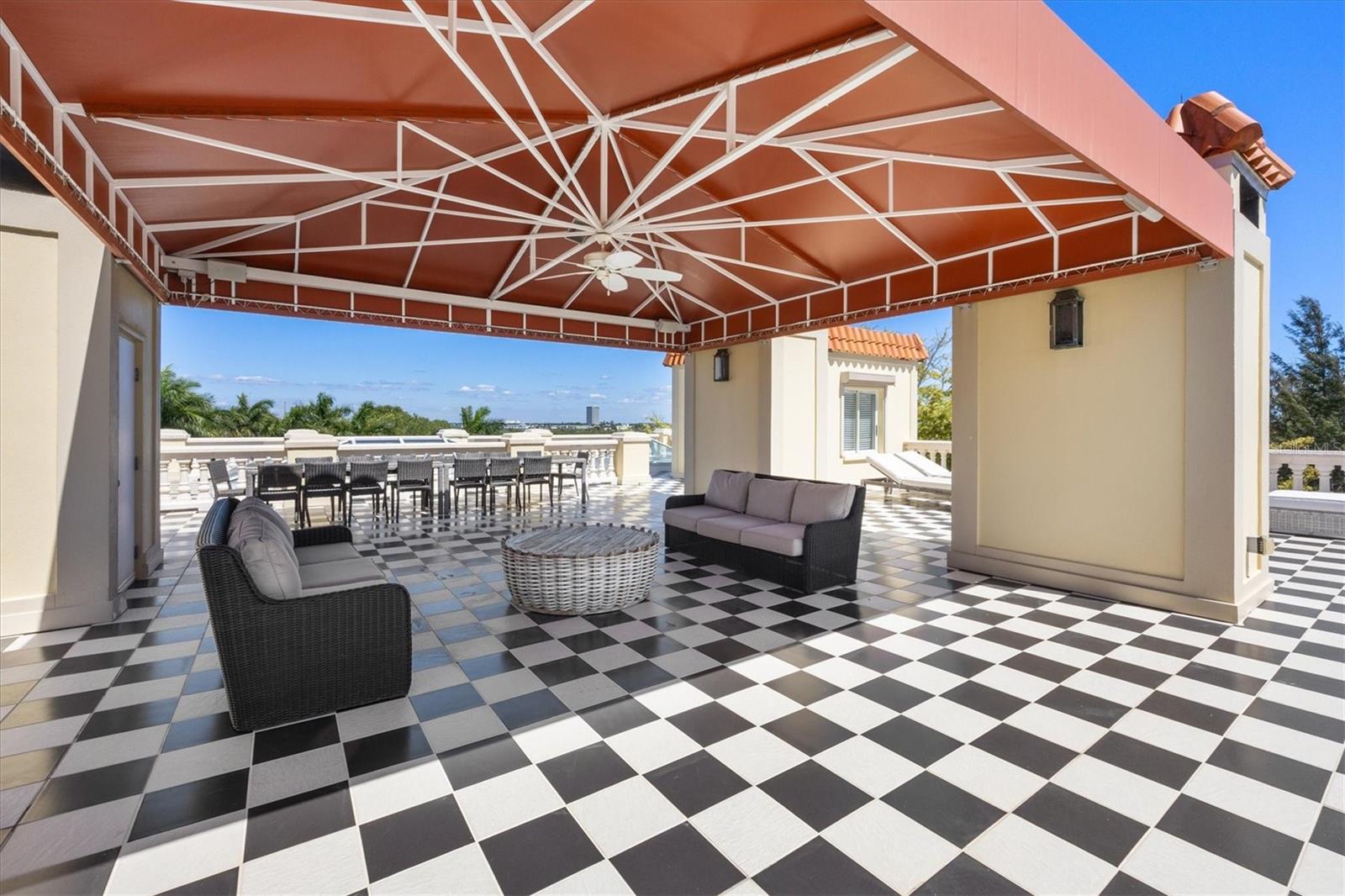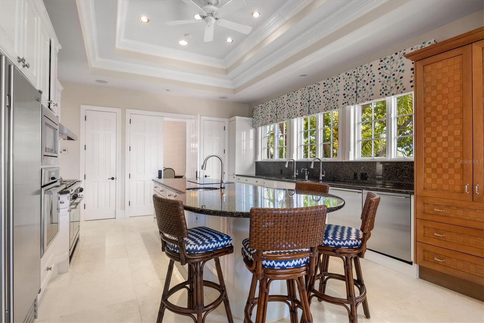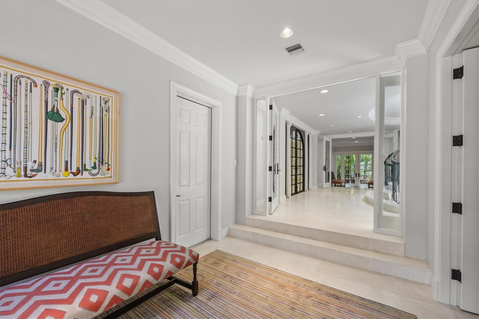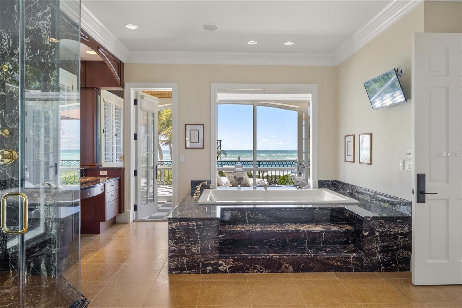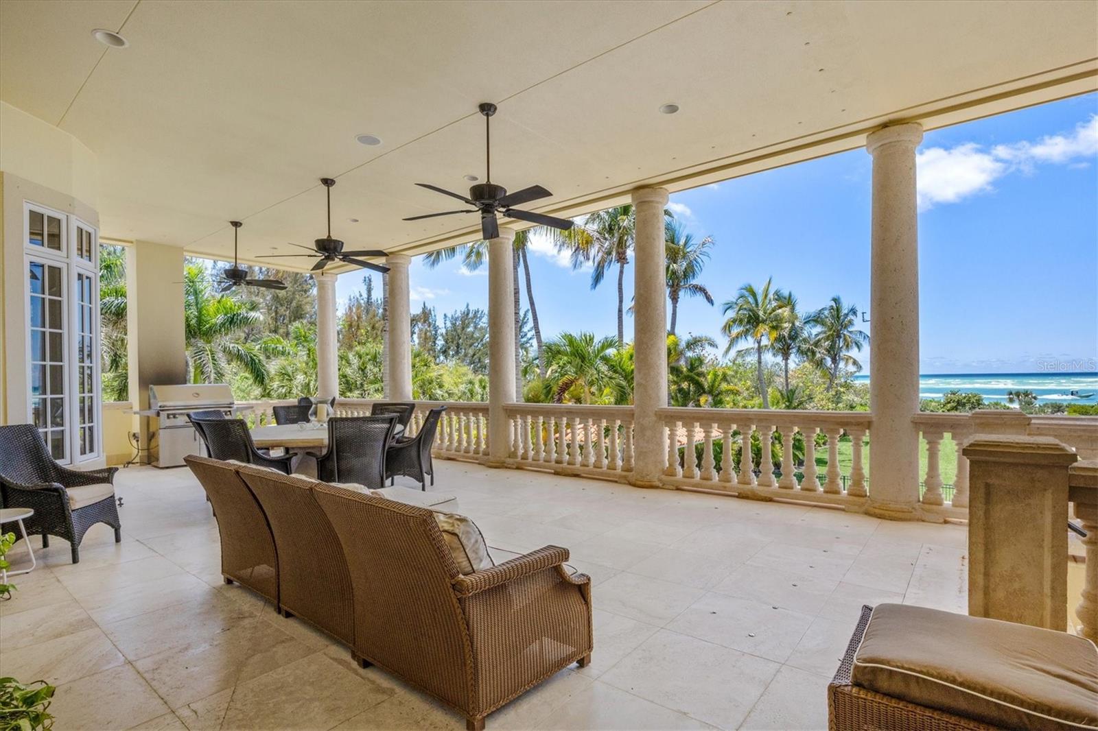 Along the iconic shores of Lido Key Beach, 1067 Westway Drive stands as a beacon of comfortable and sophisticated coastal living. Every detail has been meticulously curated to create an exceptional lifestyle situated on an extraordinary property in an extraordinary home. As you step into the sun-soaked atrium foyer, you are immediately greeted by the grand staircase made of travertine and adorned with custom railings. This entrance sets the casual tone for the rest of the home, where every room is a masterpiece of design and craftsmanship. The great room is a wonderful space, with its soaring ceilings, intricate moldings and stone fireplace. Floor-to-ceiling windows and doors offer panoramic views of the Gulf of Mexico, access to an enormous terrace and endless sunsets. This space is seamlessly connected to the bar and lounge, equipped with a glass-enclosed wine room with space for 500-plus bottles, creating a space that is ready to host friends and family. Adjacent to the lounge is a sunroom with glass walls that fill the room with natural light, creating a serene space to relax and unwind. The gourmet kitchen is a dream, boasting an enormous center island with seating and storage, granite counters, two sinks, two dishwashers, a Wolf® induction cooktop and a Dacor® range with six burners. Customized pullouts in the cabinetry and custom designed pantries ensure everything is organized. There is also an informal dining area enveloped in large banks of windows and doors providing access to the terrace and framing the best views. The adjacent dining room is the perfect setting for intimate dinners or lavish gatherings, with plenty of seating and a custom tray ceiling. Outside, the grounds are an oasis, with lush Florida landscaping, multiple covered and uncovered seating areas, a custom infinity-edge pool with intricate tile design, and multiple roof decks. One of the highlights of this home’s outdoor entertaining spaces is the rooftop deck, ready for hosting events with the well-equipped kitchenette and bath, and plenty of space for dining, dancing and enjoying the sunset over the Gulf of Mexico or the sunrise over Sarasota Bay and downtown Sarasota. The primary bedroom suite is a sanctuary of luxury and comfort, with its own private terrace overlooking the sparkling waters of the Gulf of Mexico, an adjacent exercise room and access to a front terrace. The resort-like en-suite bath is a work of art, with its dual vanities, oversized soaking tub with marble surround and enormous windows, and an indoor-outdoor marble walk-in shower. The custom organized closet offers a central storage island, abundant space for clothing, shoes and accessories, and its own private laundry room. The guest suites are retreats, each with their own en-suite bath, custom-organized spacious closet, plantation shutters, and high ceilings with crown molding. Some offer terraces with lush views of the property and beyond. Additional features include a movie theatre, a fitness room, access to the second rooftop deck, a stunning office with custom built-in storage and an additional family room, game room and bunk room. With its unrivaled location, exquisite design and unparalleled amenities, 1067 Westway Drive is more than just a home, it is the ultimate in beachfront living.