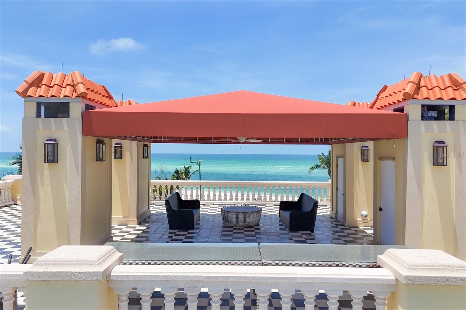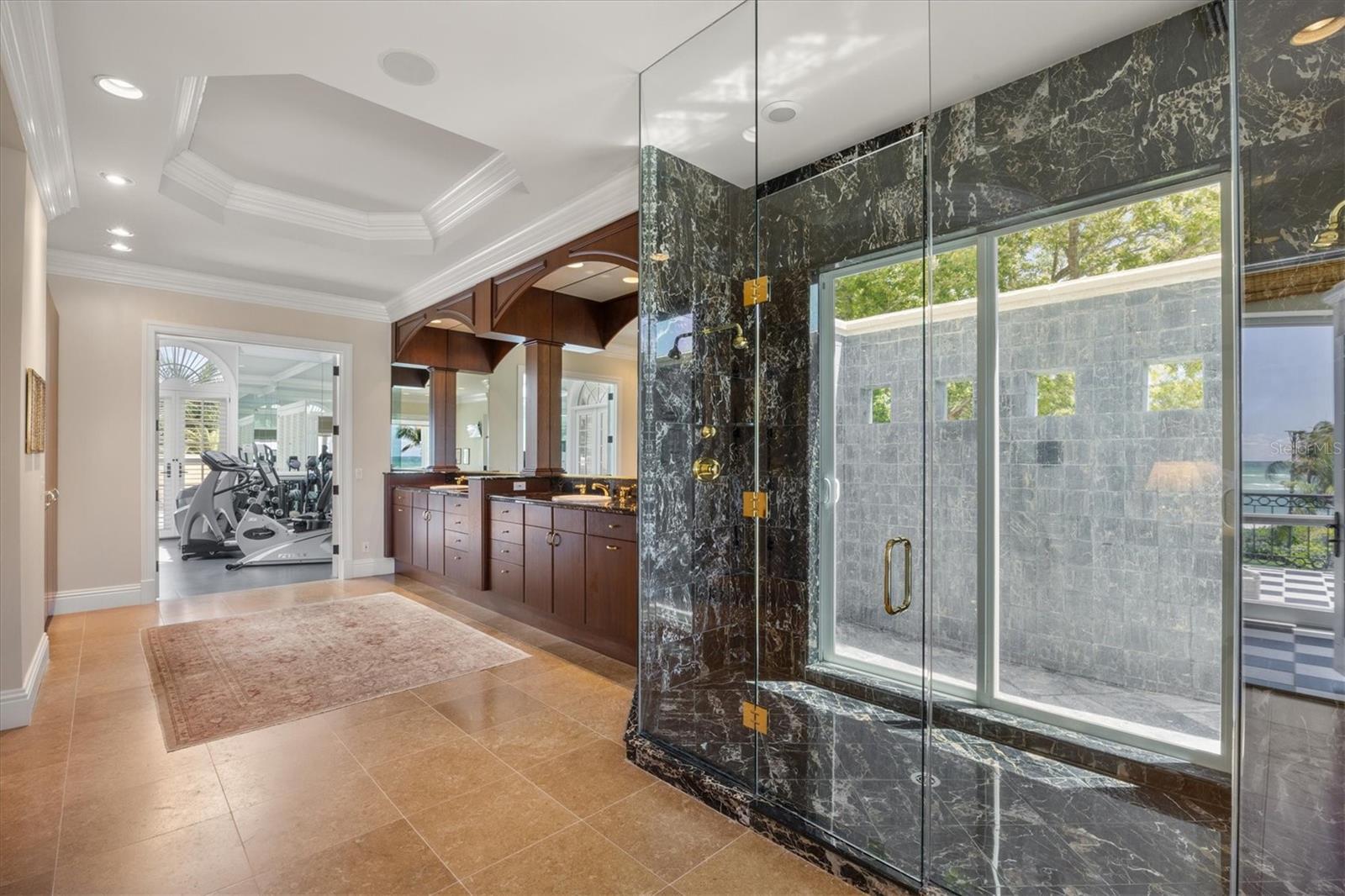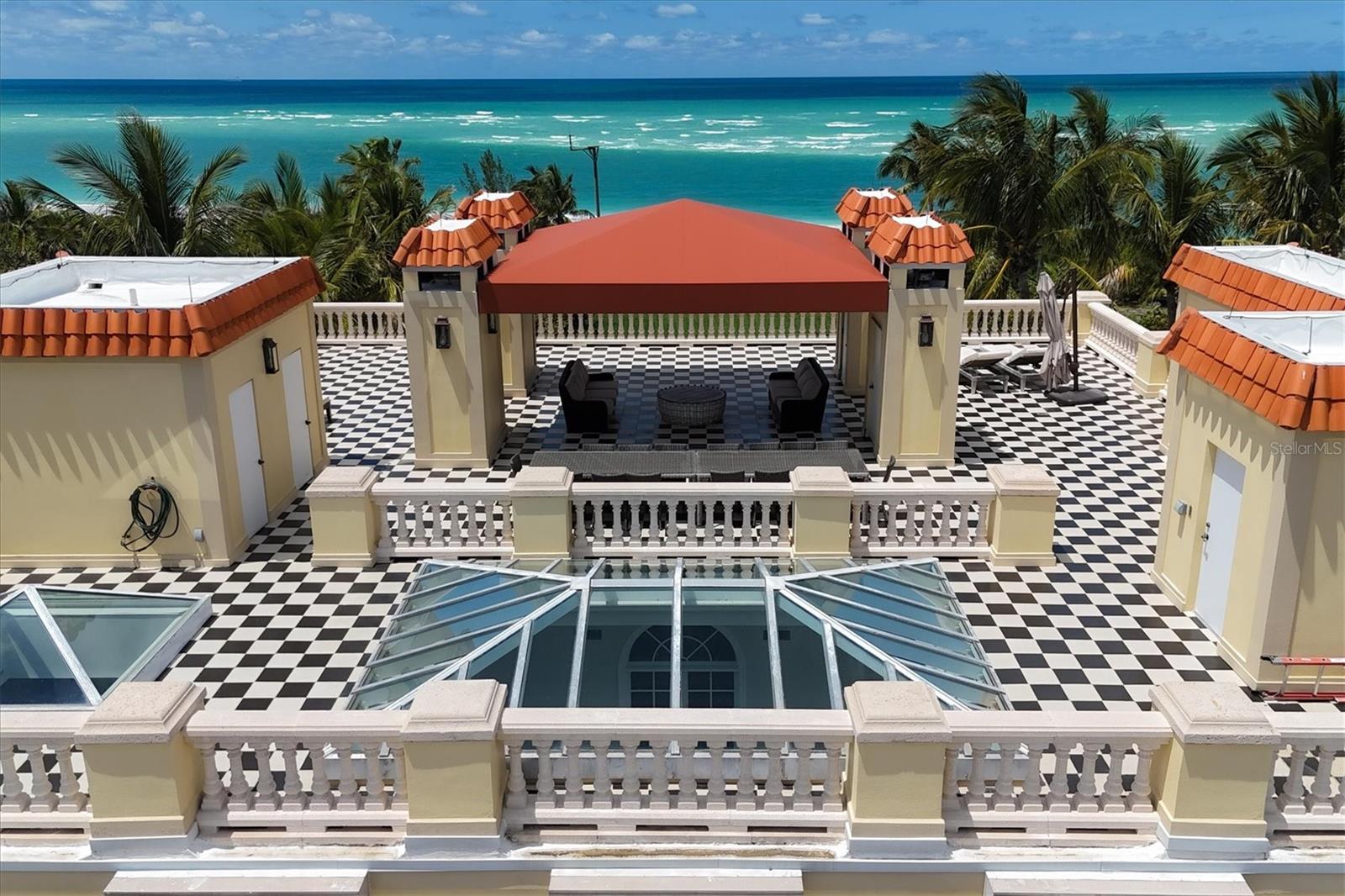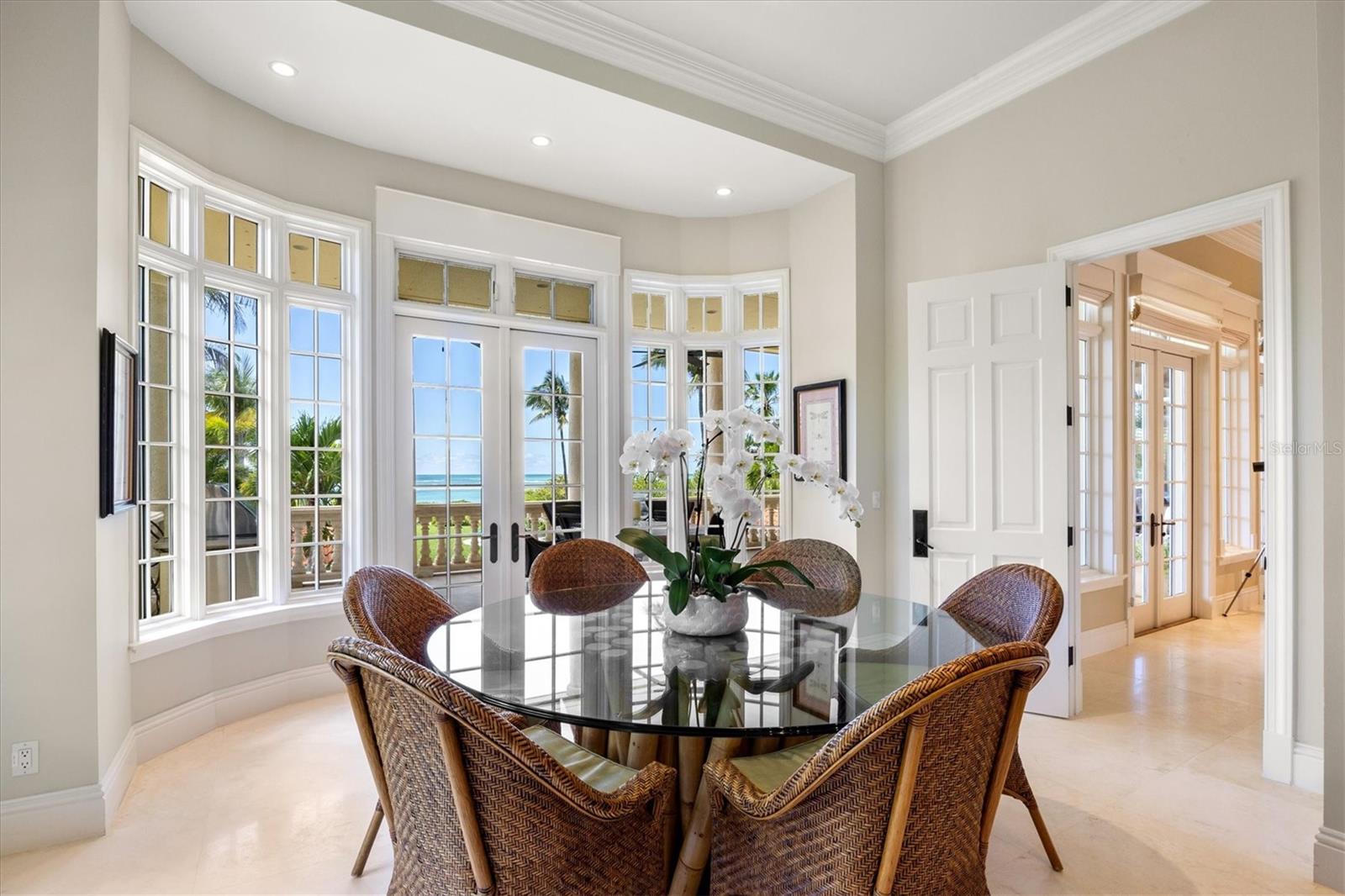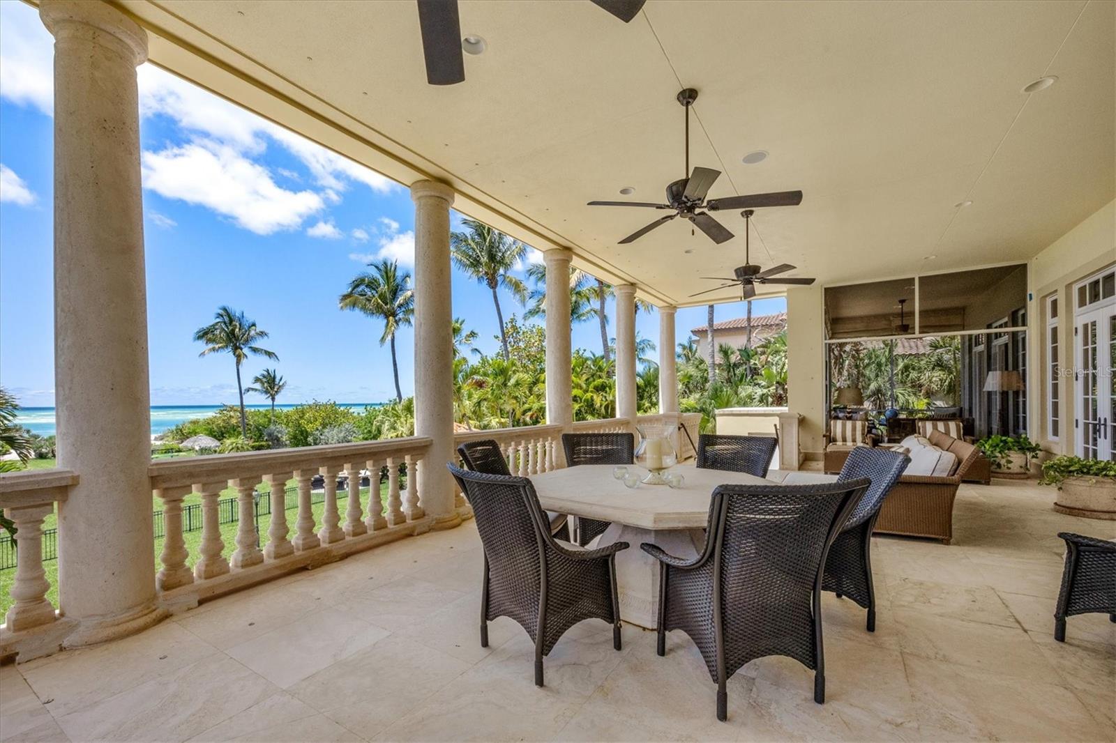 Along the iconic shores of Lido Key Beach, 1067 Westway Drive stands as a beacon of comfortable and sophisticated coastal living. Every detail has been meticulously curated to create an exceptional lifestyle situated on an extraordinary property in an extraordinary home. As you step into the sun-soaked atrium foyer, you are immediately greeted by the grand staircase made of travertine and adorned with custom railings. This entrance sets the casual tone for the rest of the home, where every room is a masterpiece of design and craftsmanship. The great room is a wonderful space, with its soaring ceilings, intricate moldings and stone fireplace. Floor-to-ceiling windows and doors offer panoramic views of the Gulf of Mexico, access to an enormous terrace and endless sunsets. This space is seamlessly connected to the bar and lounge, equipped with a glass-enclosed wine room with space for 500-plus bottles, creating a space that is ready to host friends and family. Adjacent to the lounge is a sunroom with glass walls that fill the room with natural light, creating a serene space to relax and unwind. The gourmet kitchen is a dream, boasting an enormous center island with seating and storage, granite counters, two sinks, two dishwashers, a Wolf® induction cooktop and a Dacor® range with six burners. Customized pullouts in the cabinetry and custom designed pantries ensure everything is organized. There is also an informal dining area enveloped in large banks of windows and doors providing access to the terrace and framing the best views. The adjacent dining room is the perfect setting for intimate dinners or lavish gatherings, with plenty of seating and a custom tray ceiling. Outside, the grounds are an oasis, with lush Florida landscaping, multiple covered and uncovered seating areas, a custom infinity-edge pool with intricate tile design, and multiple roof decks. One of the highlights of this home’s outdoor entertaining spaces is the rooftop deck, ready for hosting events with the well-equipped kitchenette and bath, and plenty of space for dining, dancing and enjoying the sunset over the Gulf of Mexico or the sunrise over Sarasota Bay and downtown Sarasota. The primary bedroom suite is a sanctuary of luxury and comfort, with its own private terrace overlooking the sparkling waters of the Gulf of Mexico, an adjacent exercise room and access to a front terrace. The resort-like en-suite bath is a work of art, with its dual vanities, oversized soaking tub with marble surround and enormous windows, and an indoor-outdoor marble walk-in shower. The custom organized closet offers a central storage island, abundant space for clothing, shoes and accessories, and its own private laundry room. The guest suites are retreats, each with their own en-suite bath, custom-organized spacious closet, plantation shutters, and high ceilings with crown molding. Some offer terraces with lush views of the property and beyond. Additional features include a movie theatre, a fitness room, access to the second rooftop deck, a stunning office with custom built-in storage and an additional family room, game room and bunk room. With its unrivaled location, exquisite design and unparalleled amenities, 1067 Westway Drive is more than just a home, it is the ultimate in beachfront living.