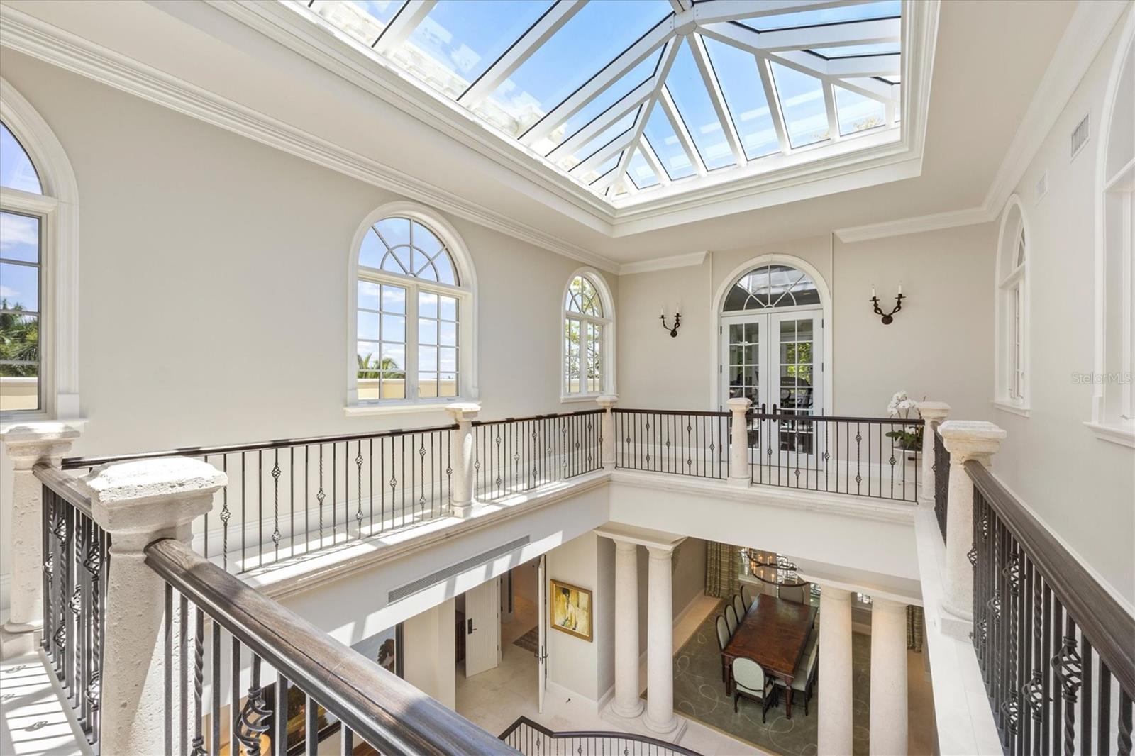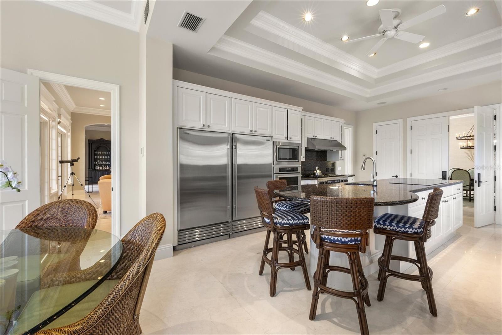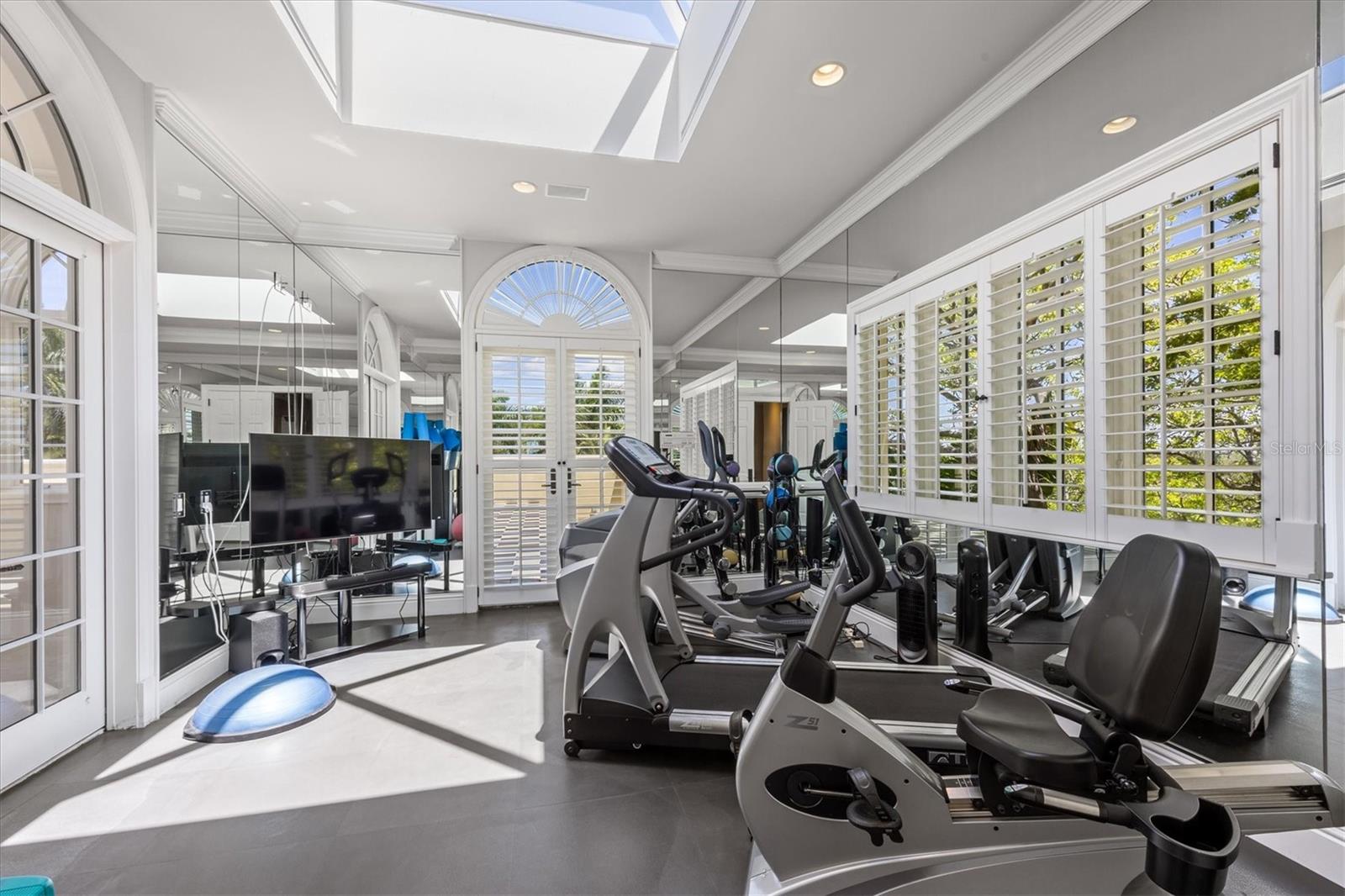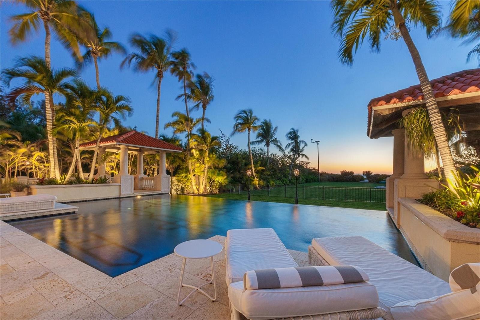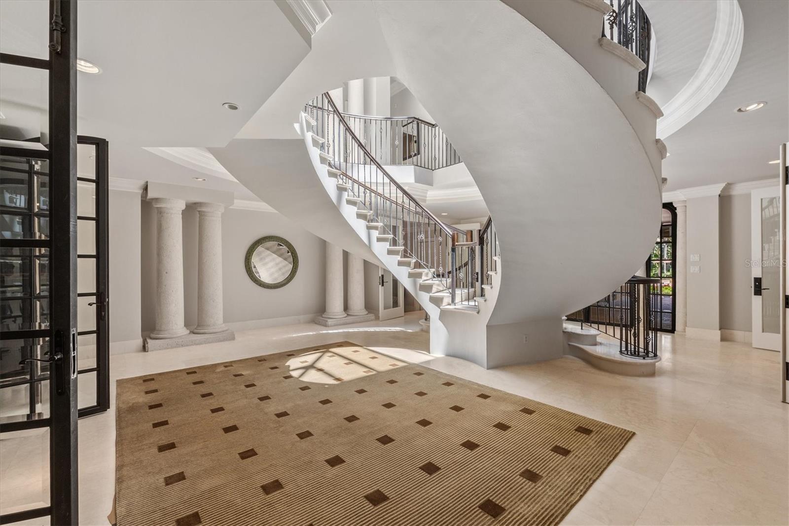 Along the iconic shores of Lido Key Beach, 1067 Westway Drive stands as a beacon of comfortable and sophisticated coastal living. Every detail has been meticulously curated to create an exceptional lifestyle situated on an extraordinary property in an extraordinary home. As you step into the sun-soaked atrium foyer, you are immediately greeted by the grand staircase made of travertine and adorned with custom railings. This entrance sets the casual tone for the rest of the home, where every room is a masterpiece of design and craftsmanship. The great room is a wonderful space, with its soaring ceilings, intricate moldings and stone fireplace. Floor-to-ceiling windows and doors offer panoramic views of the Gulf of Mexico, access to an enormous terrace and endless sunsets. This space is seamlessly connected to the bar and lounge, equipped with a glass-enclosed wine room with space for 500-plus bottles, creating a space that is ready to host friends and family. Adjacent to the lounge is a sunroom with glass walls that fill the room with natural light, creating a serene space to relax and unwind. The gourmet kitchen is a dream, boasting an enormous center island with seating and storage, granite counters, two sinks, two dishwashers, a Wolf® induction cooktop and a Dacor® range with six burners. Customized pullouts in the cabinetry and custom designed pantries ensure everything is organized. There is also an informal dining area enveloped in large banks of windows and doors providing access to the terrace and framing the best views. The adjacent dining room is the perfect setting for intimate dinners or lavish gatherings, with plenty of seating and a custom tray ceiling. Outside, the grounds are an oasis, with lush Florida landscaping, multiple covered and uncovered seating areas, a custom infinity-edge pool with intricate tile design, and multiple roof decks. One of the highlights of this home’s outdoor entertaining spaces is the rooftop deck, ready for hosting events with the well-equipped kitchenette and bath, and plenty of space for dining, dancing and enjoying the sunset over the Gulf of Mexico or the sunrise over Sarasota Bay and downtown Sarasota. The primary bedroom suite is a sanctuary of luxury and comfort, with its own private terrace overlooking the sparkling waters of the Gulf of Mexico, an adjacent exercise room and access to a front terrace. The resort-like en-suite bath is a work of art, with its dual vanities, oversized soaking tub with marble surround and enormous windows, and an indoor-outdoor marble walk-in shower. The custom organized closet offers a central storage island, abundant space for clothing, shoes and accessories, and its own private laundry room. The guest suites are retreats, each with their own en-suite bath, custom-organized spacious closet, plantation shutters, and high ceilings with crown molding. Some offer terraces with lush views of the property and beyond. Additional features include a movie theatre, a fitness room, access to the second rooftop deck, a stunning office with custom built-in storage and an additional family room, game room and bunk room. With its unrivaled location, exquisite design and unparalleled amenities, 1067 Westway Drive is more than just a home, it is the ultimate in beachfront living.