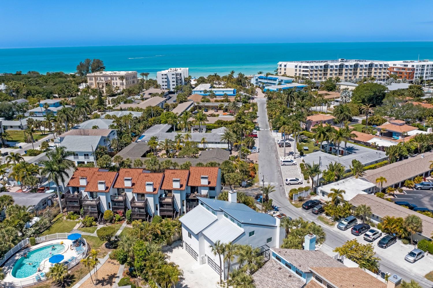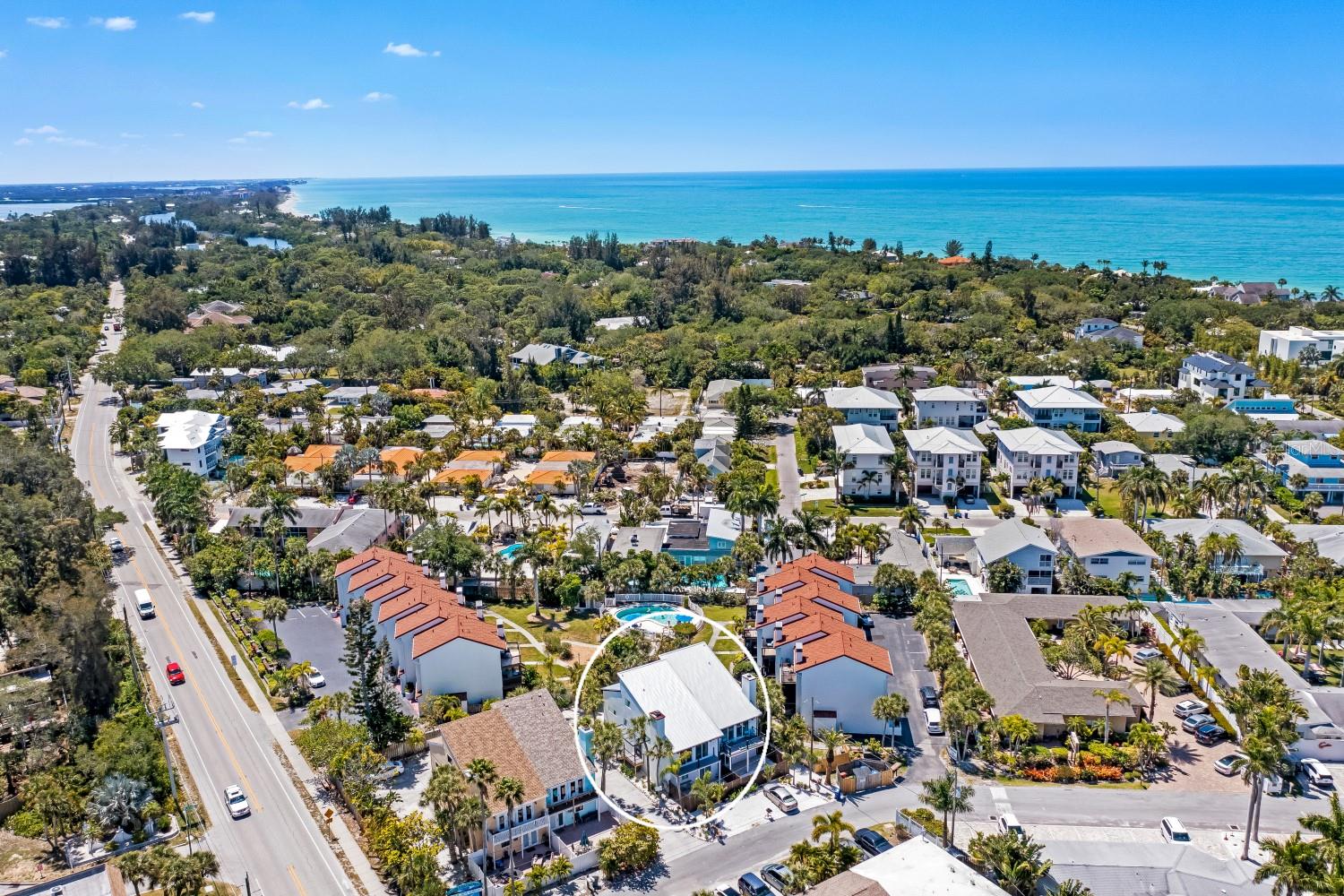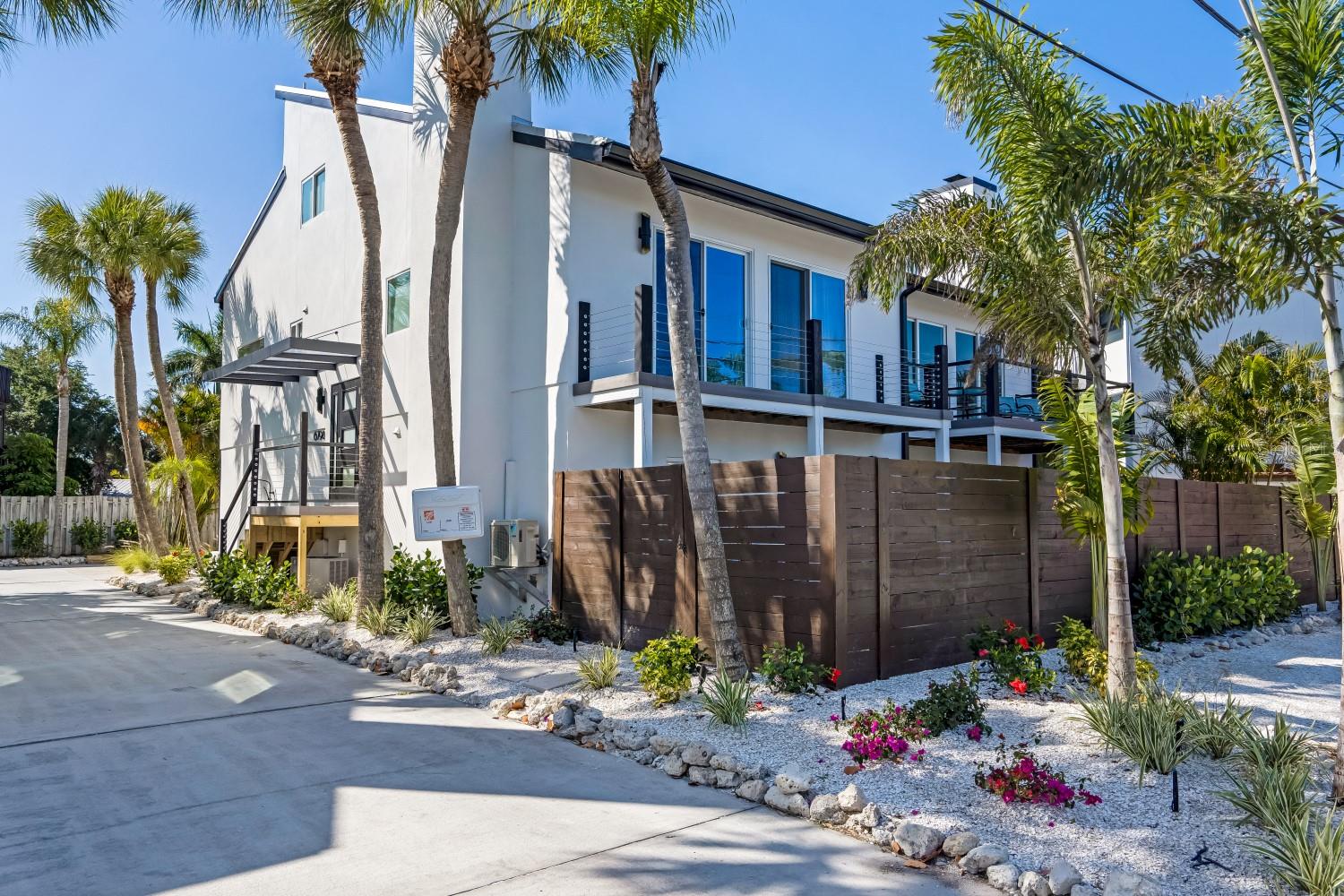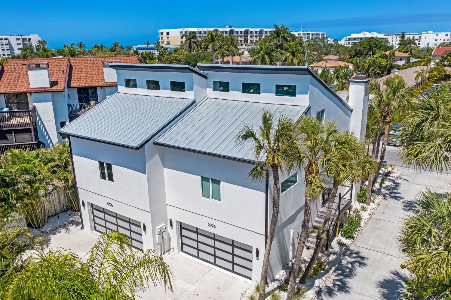 STEPS TO SIESTA KEY BEACH ** COMPLETE MODERN TRANSFORMATION, SHOWS LIKE A NEW CONSTRUCTION MODEL HOME ** INCREDIBLE CASH FLOW OPPORTUNITY with WEEKLY AIRBB RENTAL PROGRAM ** This 3 bedroom, 3 bath is a complete show-stopper with top of the line contemporary finishes throughout and hurricane impact windows. This luxurious townhome comes turnkey furnished with rental bookings already in place, establishing immediate return on your new ownership. Stepping inside this custom design, you will love the soaring vaulted ceiling, low maintenance vinyl flooring and lux kitchen with coastal modern cabinetry, quartz countertops and stainless appliances. The primary suite is on the 3rd floor loft area overlooking the entire family area with gorgeous tropical views of Siesta Key. An additional “in law suite” or studio is located on the 1st floor with a private entrance, patio and gorgeous epoxy flooring through the entire area (including the 2 car garage). Owners in this boutique community enjoy access to an adorable community pool on their way to deeded beach access to Siesta Key beach. You cannot find a more inclusive, turnkey package located beside the beach, at this price point. This home serves as a wonderful 2nd home or investment property for your AirBB portfolio. Call today to view!