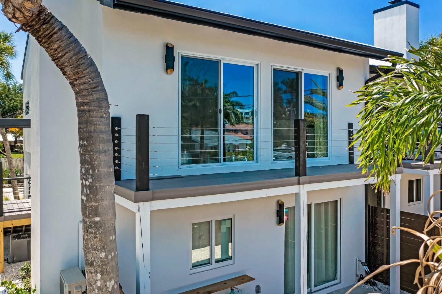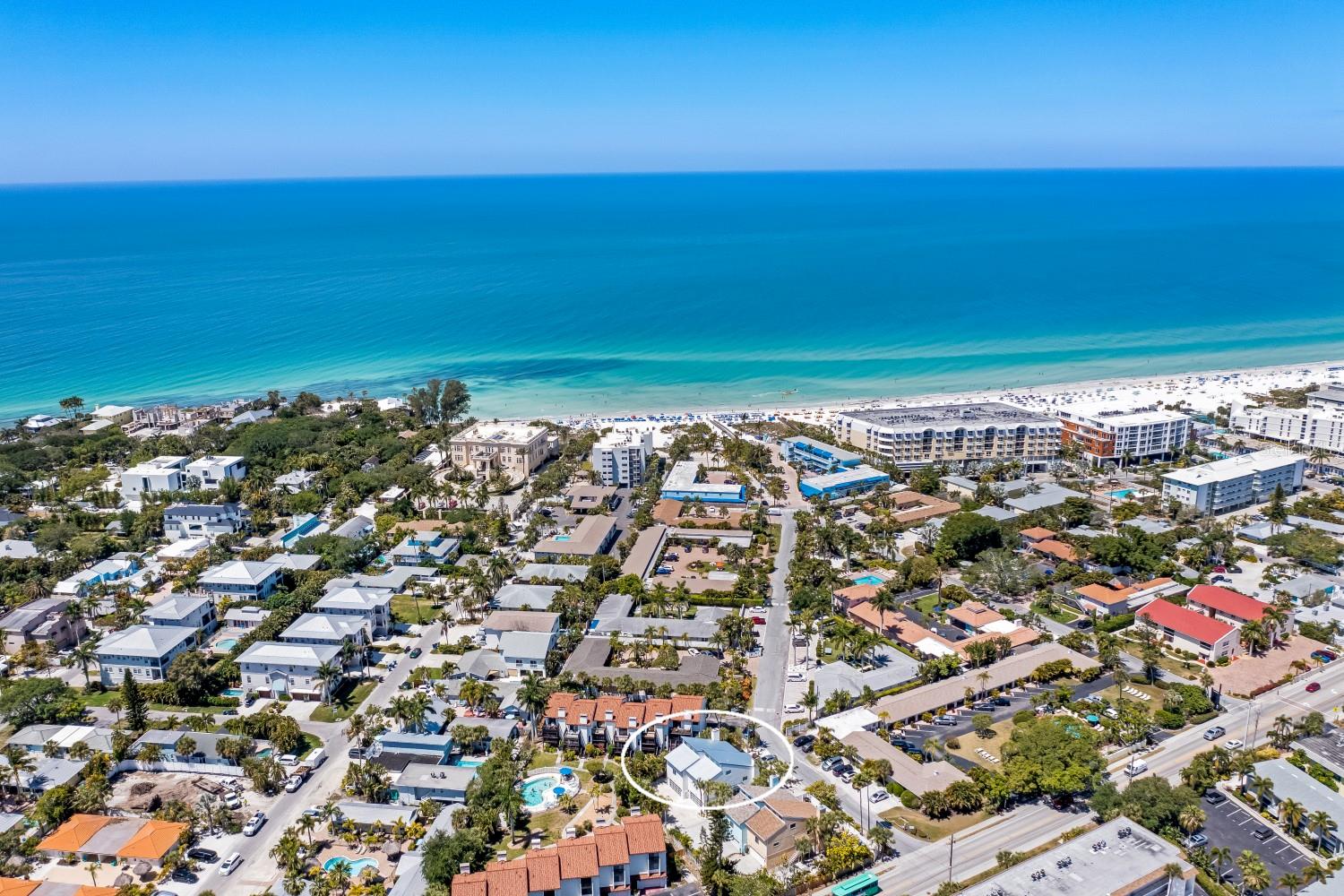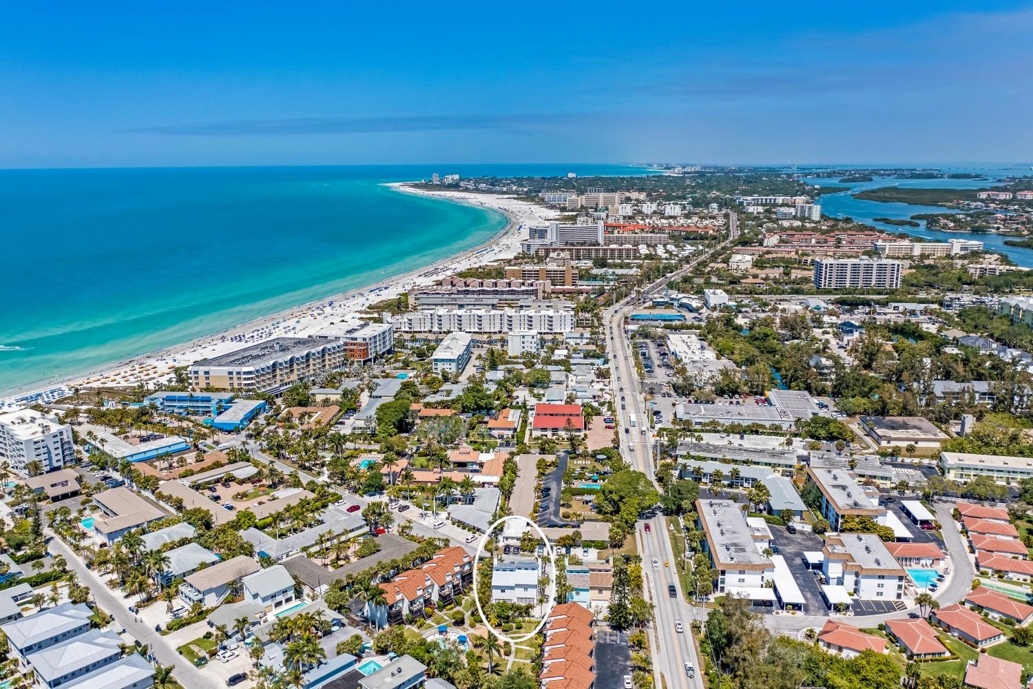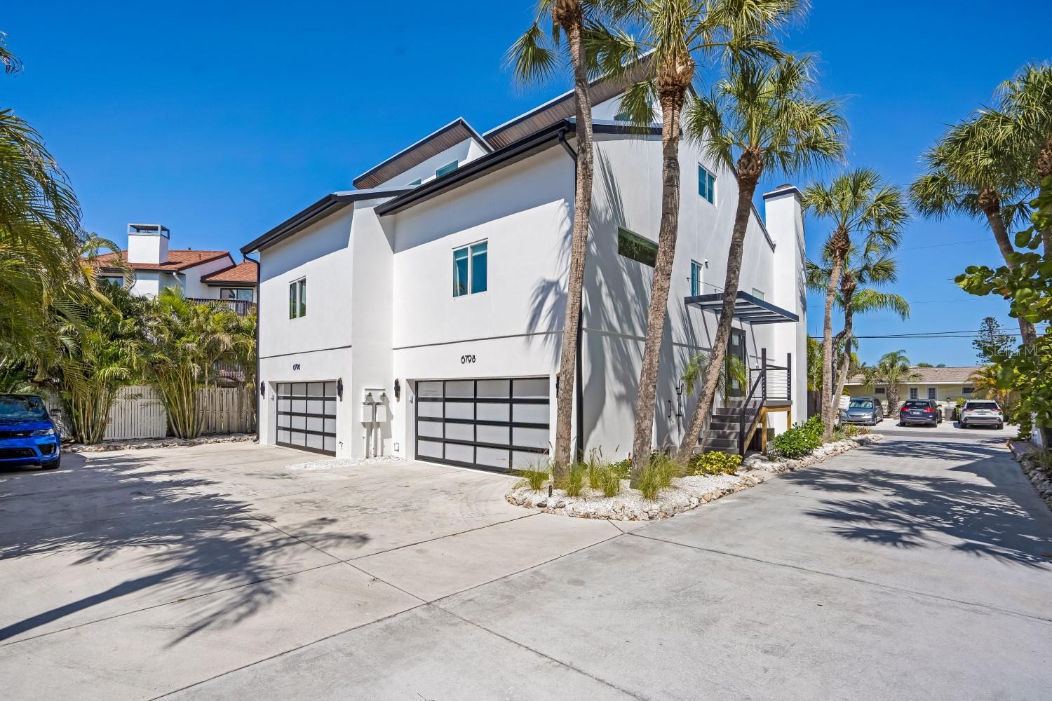 STEPS TO SIESTA KEY BEACH ** COMPLETE MODERN TRANSFORMATION, SHOWS LIKE A NEW CONSTRUCTION MODEL HOME ** INCREDIBLE CASH FLOW OPPORTUNITY with WEEKLY AIRBB RENTAL PROGRAM ** This 3 bedroom, 3 bath is a complete show-stopper with top of the line contemporary finishes throughout and hurricane impact windows. This luxurious townhome comes turnkey furnished with rental bookings already in place, establishing immediate return on your new ownership. Stepping inside this custom design, you will love the soaring vaulted ceiling, low maintenance vinyl flooring and lux kitchen with coastal modern cabinetry, quartz countertops and stainless appliances. The primary suite is on the 3rd floor loft area overlooking the entire family area with gorgeous tropical views of Siesta Key. An additional “in law suite” or studio is located on the 1st floor with a private entrance, patio and gorgeous epoxy flooring through the entire area (including the 2 car garage). Owners in this boutique community enjoy access to an adorable community pool on their way to deeded beach access to Siesta Key beach. You cannot find a more inclusive, turnkey package located beside the beach, at this price point. This home serves as a wonderful 2nd home or investment property for your AirBB portfolio. Call today to view!