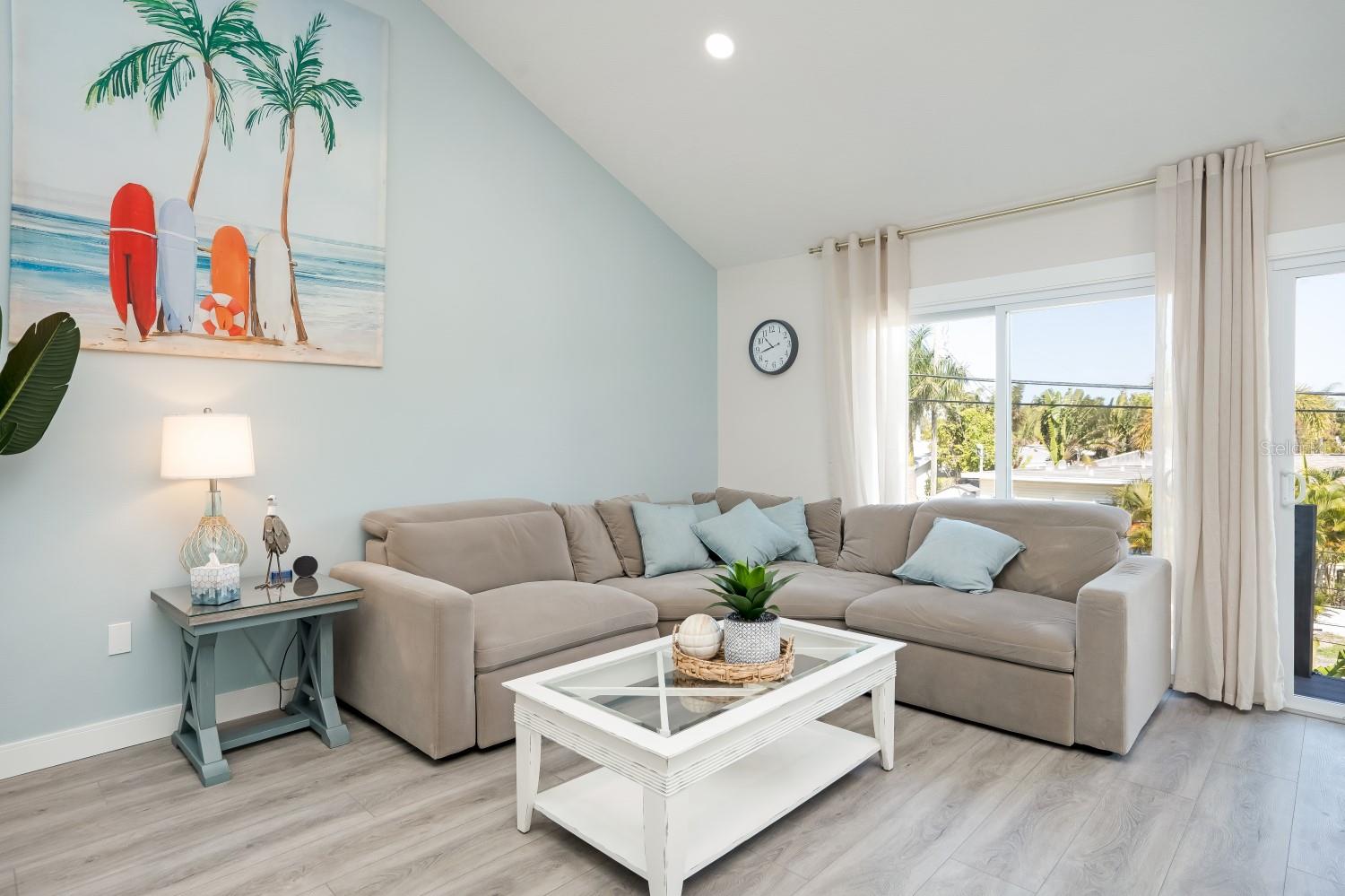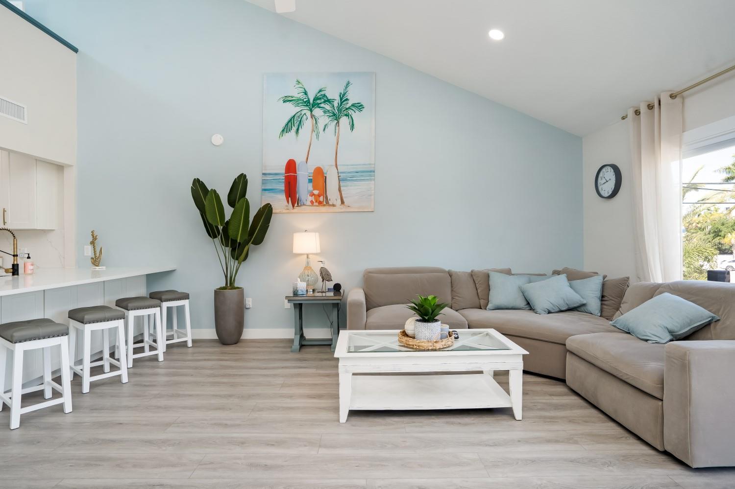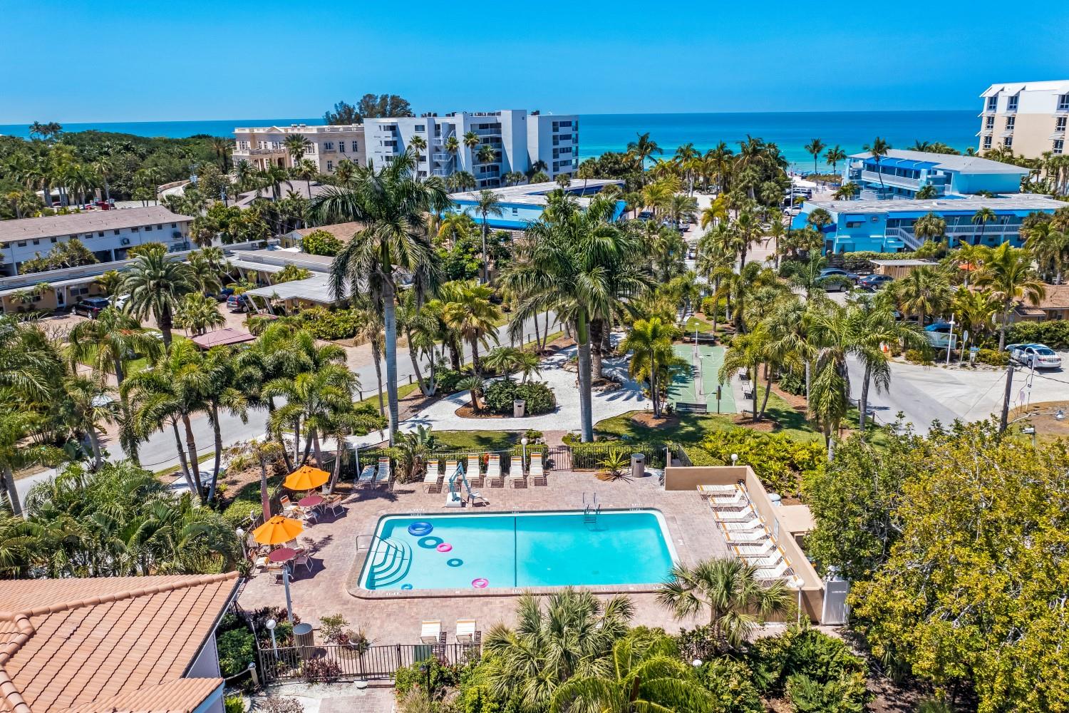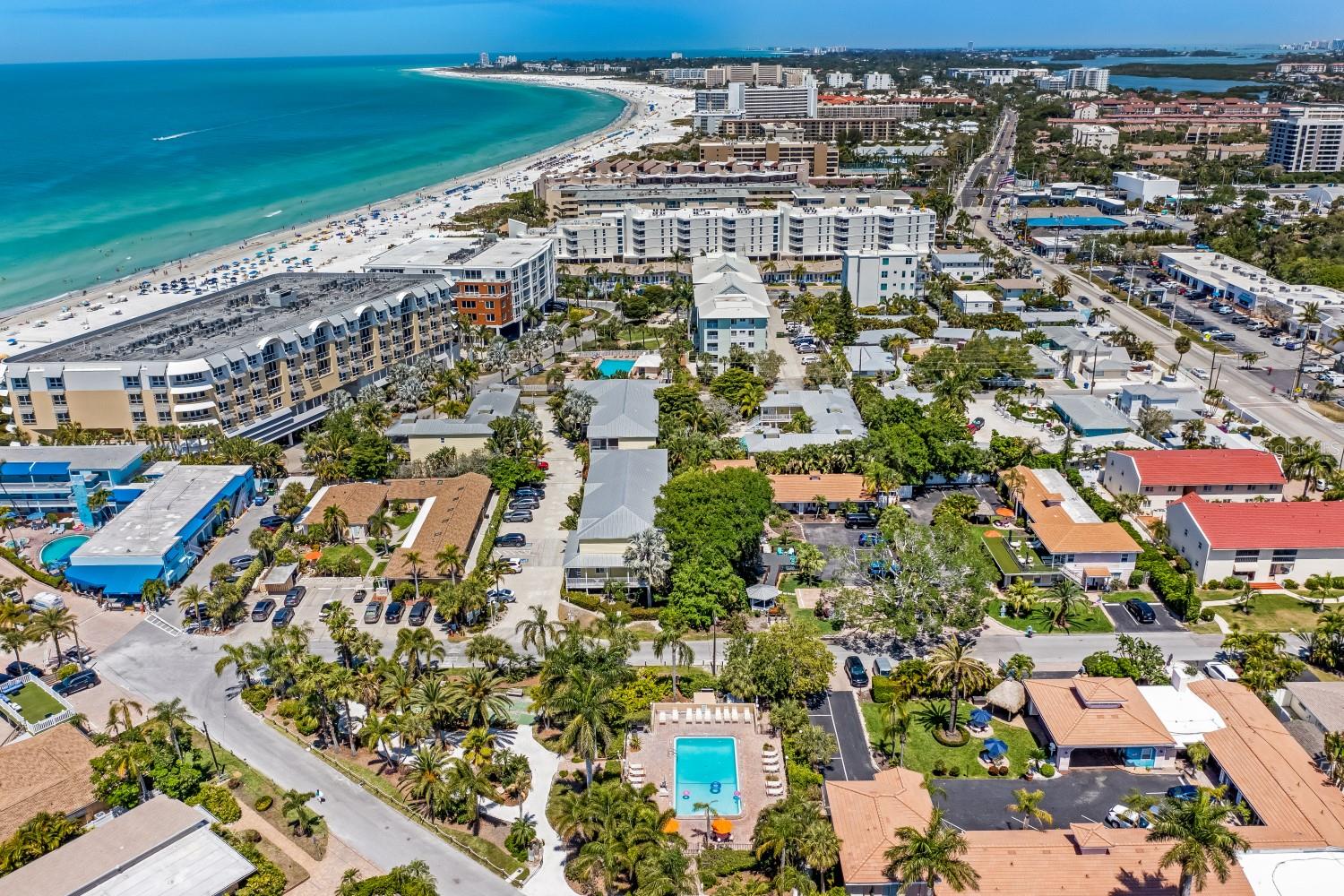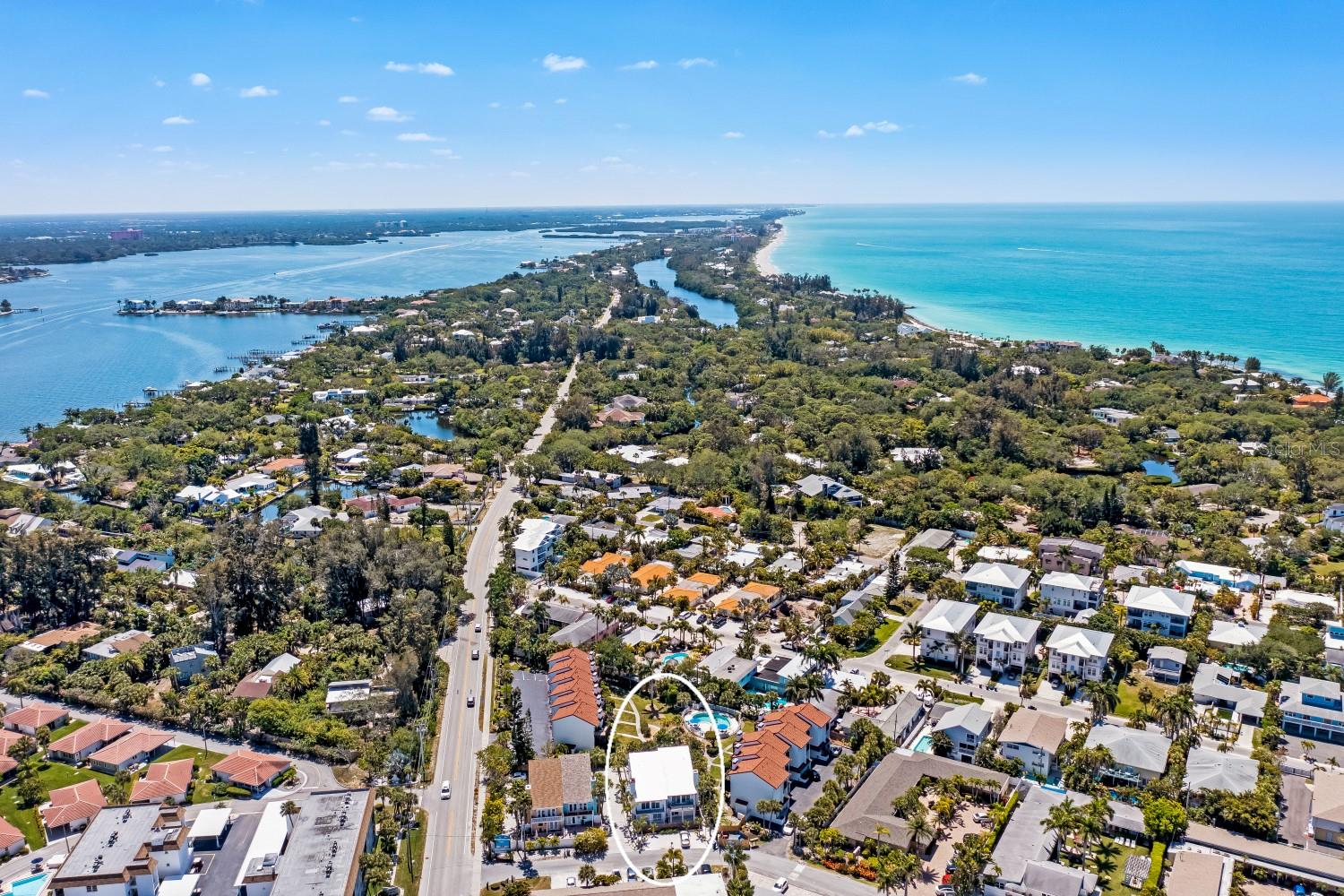 STEPS TO SIESTA KEY BEACH ** COMPLETE MODERN TRANSFORMATION, SHOWS LIKE A NEW CONSTRUCTION MODEL HOME ** INCREDIBLE CASH FLOW OPPORTUNITY with WEEKLY AIRBB RENTAL PROGRAM ** This 3 bedroom, 3 bath is a complete show-stopper with top of the line contemporary finishes throughout and hurricane impact windows. This luxurious townhome comes turnkey furnished with rental bookings already in place, establishing immediate return on your new ownership. Stepping inside this custom design, you will love the soaring vaulted ceiling, low maintenance vinyl flooring and lux kitchen with coastal modern cabinetry, quartz countertops and stainless appliances. The primary suite is on the 3rd floor loft area overlooking the entire family area with gorgeous tropical views of Siesta Key. An additional “in law suite” or studio is located on the 1st floor with a private entrance, patio and gorgeous epoxy flooring through the entire area (including the 2 car garage). Owners in this boutique community enjoy access to an adorable community pool on their way to deeded beach access to Siesta Key beach. You cannot find a more inclusive, turnkey package located beside the beach, at this price point. This home serves as a wonderful 2nd home or investment property for your AirBB portfolio. Call today to view!