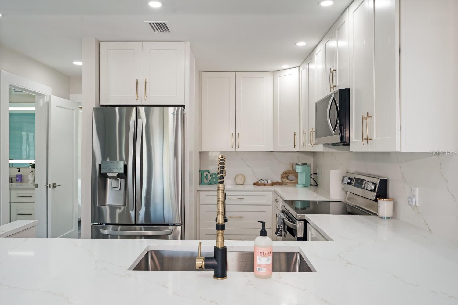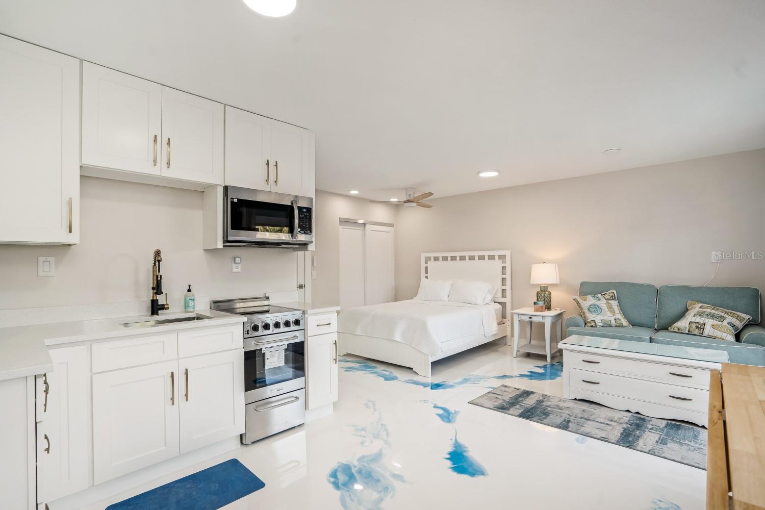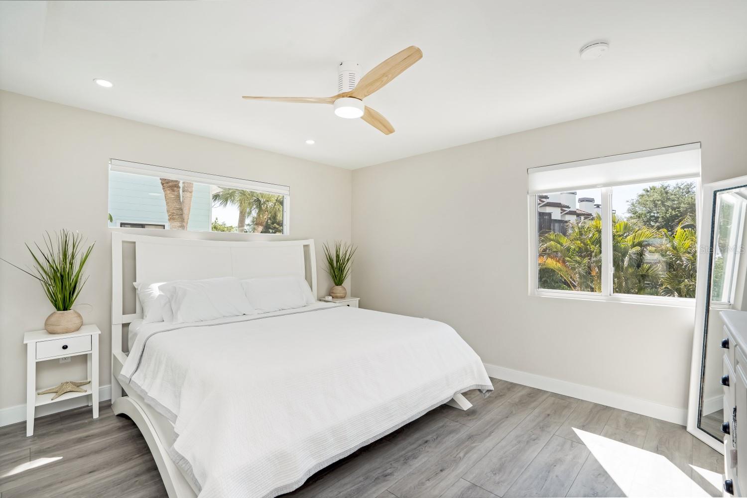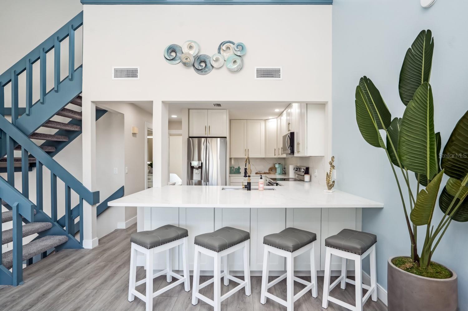 STEPS TO SIESTA KEY BEACH ** COMPLETE MODERN TRANSFORMATION, SHOWS LIKE A NEW CONSTRUCTION MODEL HOME ** INCREDIBLE CASH FLOW OPPORTUNITY with WEEKLY AIRBB RENTAL PROGRAM ** This 3 bedroom, 3 bath is a complete show-stopper with top of the line contemporary finishes throughout and hurricane impact windows. This luxurious townhome comes turnkey furnished with rental bookings already in place, establishing immediate return on your new ownership. Stepping inside this custom design, you will love the soaring vaulted ceiling, low maintenance vinyl flooring and lux kitchen with coastal modern cabinetry, quartz countertops and stainless appliances. The primary suite is on the 3rd floor loft area overlooking the entire family area with gorgeous tropical views of Siesta Key. An additional “in law suite” or studio is located on the 1st floor with a private entrance, patio and gorgeous epoxy flooring through the entire area (including the 2 car garage). Owners in this boutique community enjoy access to an adorable community pool on their way to deeded beach access to Siesta Key beach. You cannot find a more inclusive, turnkey package located beside the beach, at this price point. This home serves as a wonderful 2nd home or investment property for your AirBB portfolio. Call today to view!