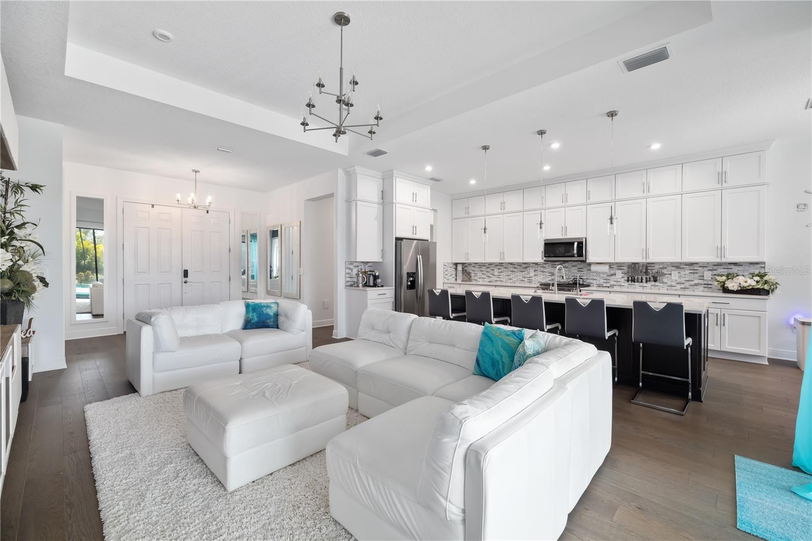 Welcome to the Asher model by Cardel Homes, a meticulously designed residence offering 2,300 square feet of luxurious living space in the gated Worthington community of Sarasota. This thoughtfully crafted home features 3 spacious bedrooms and 3 well-appointed bathrooms, providing ample space for families of all sizes. The versatile den/office has been transformed into an additional bedroom, making it ideal for growing families seeking extra space. Additionally, the flex room, complete with a full bath, opens directly to the outdoor living area and pool. This adaptable space is perfect for an executive office, home gym, game room, or any purpose that suits your lifestyle. The Asher's open-concept design seamlessly connects the gourmet kitchen, dining area, and family room, creating an inviting environment for both daily living and entertaining. High-end finishes, tray ceilings in the family room and primary bedroom, and expansive windows enhance the home's elegance and natural light. Situated in Worthington, residents enjoy the benefits of no Community Development District (CDD) fees and low Homeowners Association (HOA) fees, making it an affordable choice without compromising on quality. The community's prime location offers easy access to Sarasota's top amenities, including pristine beaches, world-class golf courses, picturesque parks, and premier shopping destinations. Notably, the vibrant Lakewood Ranch area and the upscale Waterside Place are just a short drive away, providing a plethora of dining, shopping, and entertainment options. Experience the perfect blend of luxury, convenience, and community in the Asher model at Worthington—a place you'll be proud to call home.