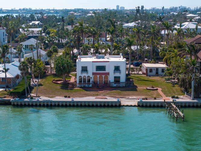 Set on one of the most coveted streets on Siesta Key, this beautifully crafted 1926 Spanish-style home sits on a double lot with 150 feet of deep-water bay frontage, significantly larger than most properties’ 100 feet of frontage. Spanning 3,788 square feet with three bedrooms and four bathrooms, this gorgeous historic home exudes timeless character and craftsmanship and showcases authentic Spanish architectural details throughout, from its distinctive terracotta roof tiles to its graceful arched doorways. Its prized North Siesta Key location on Norsota Way offers breathtaking panoramic views of Sarasota Bay and an unobstructed sightline to downtown Sarasota’s stunning skyline. By day, soak in the endless expanse of shimmering blue waters; by night, watch as the city lights create a dazzling display across the bay. Boating enthusiasts will appreciate the deep-water access, providing seamless navigation to the Intracoastal Waterway and the Gulf of Mexico. While it sustained significant damage from the 2024 storms, it offers an extraordinary opportunity to restore it to its original beauty or reimagine the property with a custom waterfront estate designed to your personal tastes. A rare offering in one of Siesta Key's most sought-after waterfront enclaves, this property presents limitless potential in an unrivaled location. The property and structures are being sold as is due to the recent hurricane damage.
