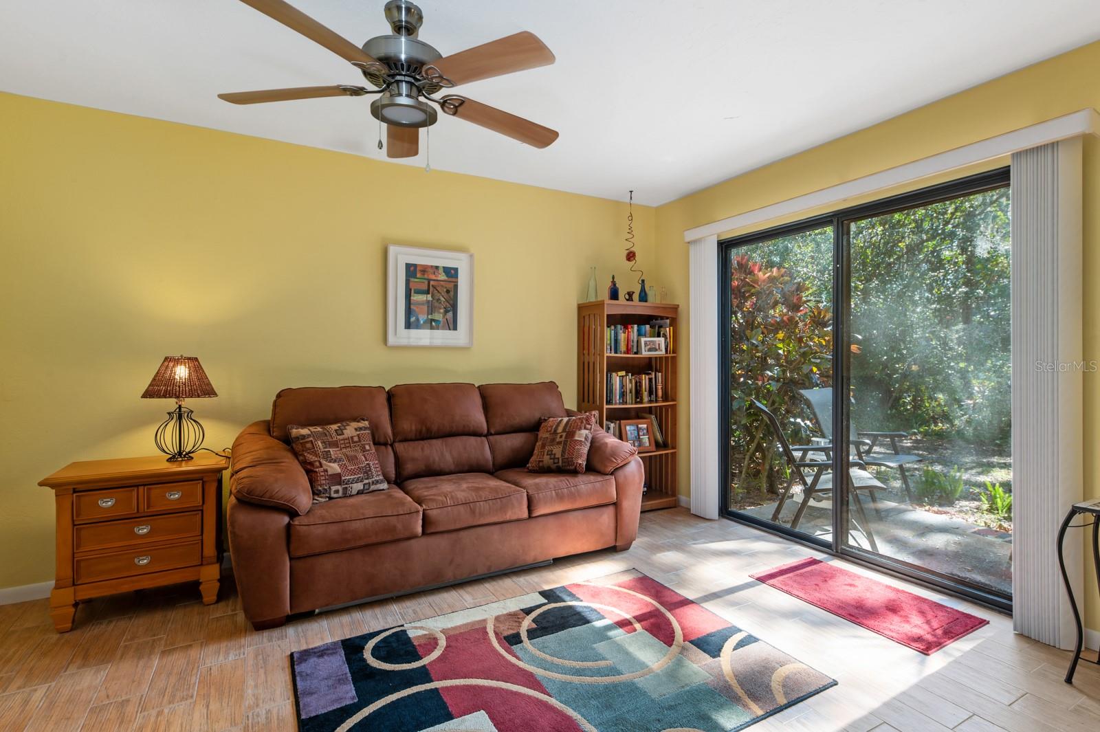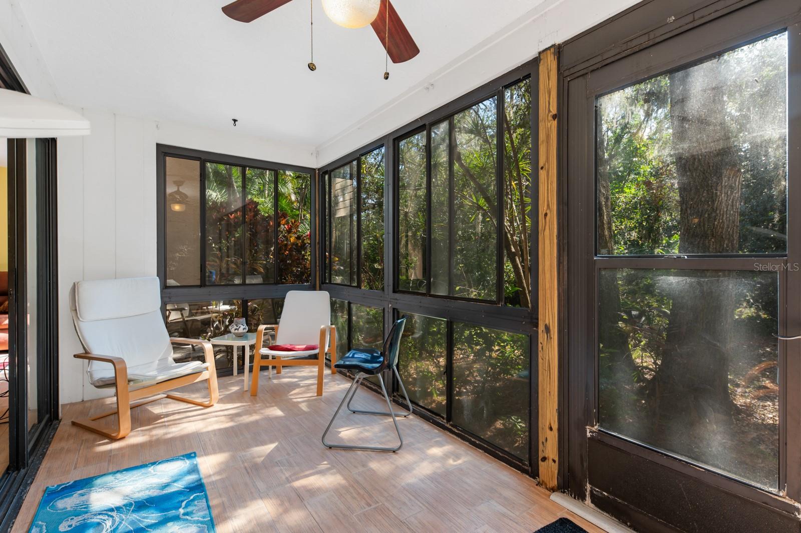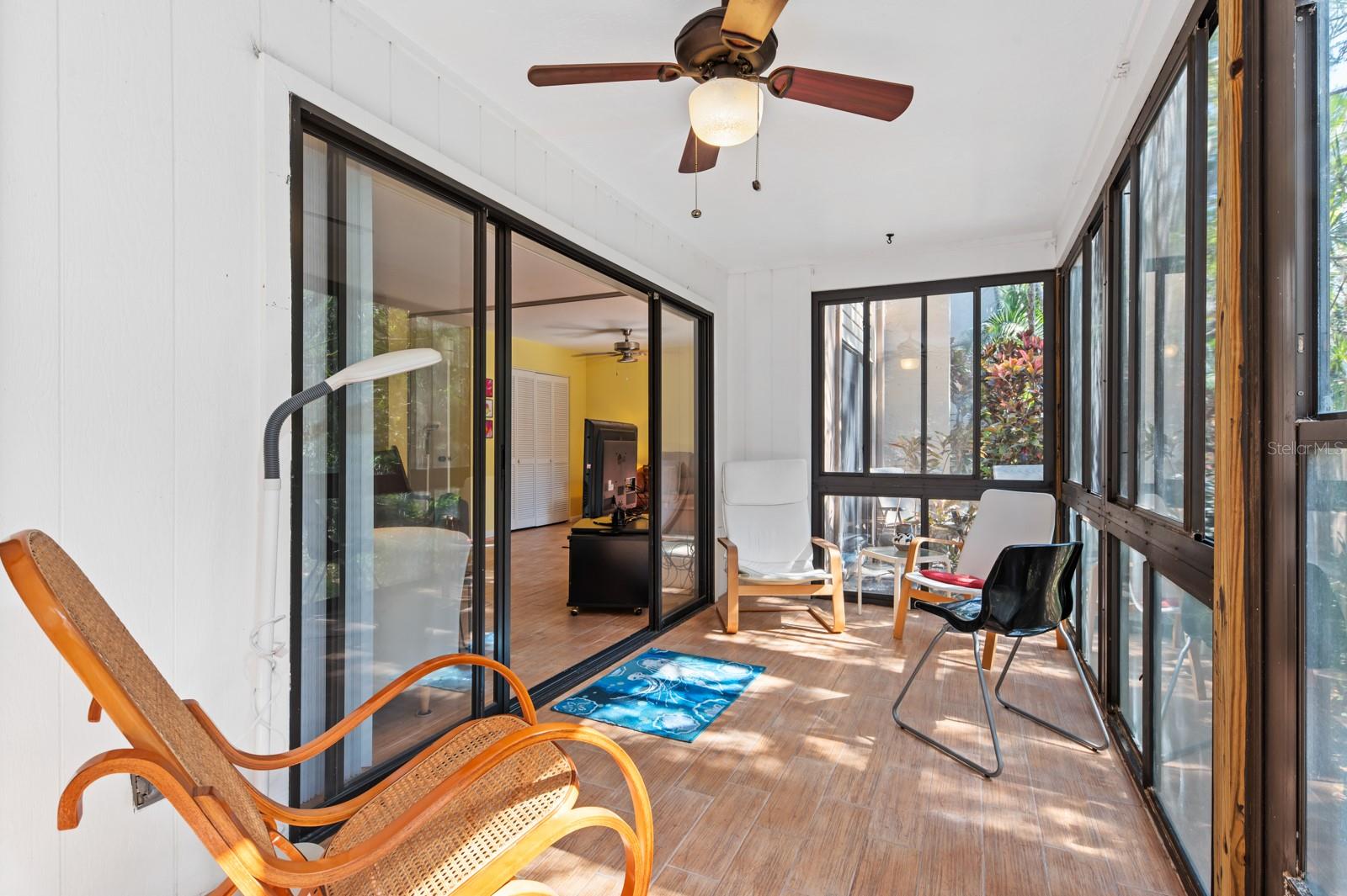Experience the epitome of coastal living in the exclusive gated Pelican Cove Community. Revel in the natural light that pours in through the expansive rear sliding glass doors/windows. Modern conveniences abound, including a BRAND-new A/C system, and ceramic tile flooring throughout and front and rear courtyards. Unwind on your glass-enclosed lanai as you immerse yourself in nature's splendor. Spread across 75 acres of pristine, gated waterfront property, Pelican Cove is a tropical oasis teeming with amenities. Discover an 86-slip boat harbor, six heated swimming pools, a hot tub, three clubhouses, lighted tennis and pickleball courts, shuffleboard, basketball, dog walking areas, and over 5 miles of walking trails and boardwalks. Unleash your creativity with art studios, a pottery classroom, woodworking, and sculpting, or attend classes at Pelican Cove University. Choose from over 37 clubs, including photography, fiber art, biking, yoga, Tai Chi, culinary arts, and card clubs. The community also offers evening jazz and classical music concerts, ensuring an enriched lifestyle for all. Award-winning landscaping and superior management set Pelican Cove apart as the ultimate adult sanctuary.