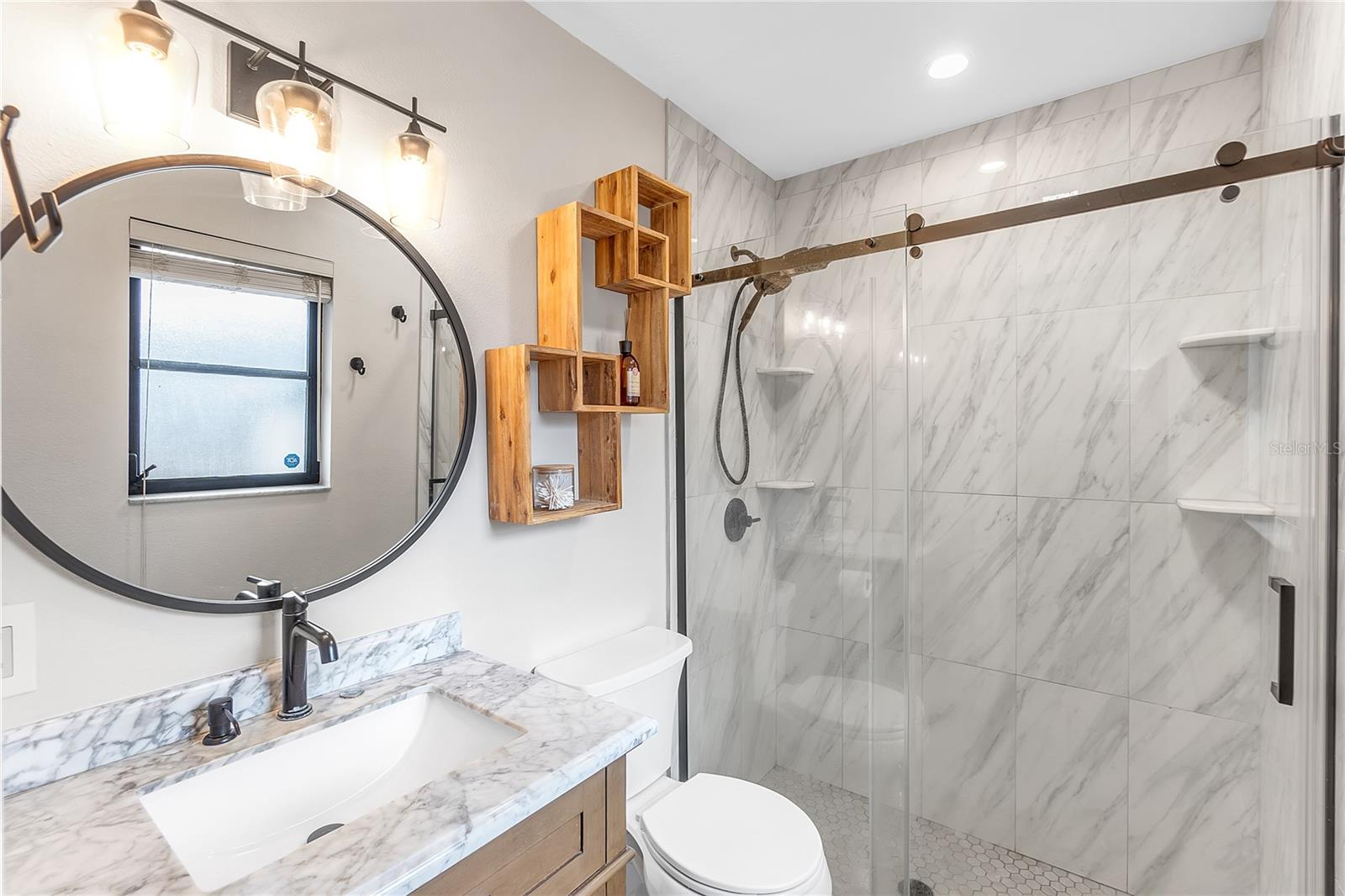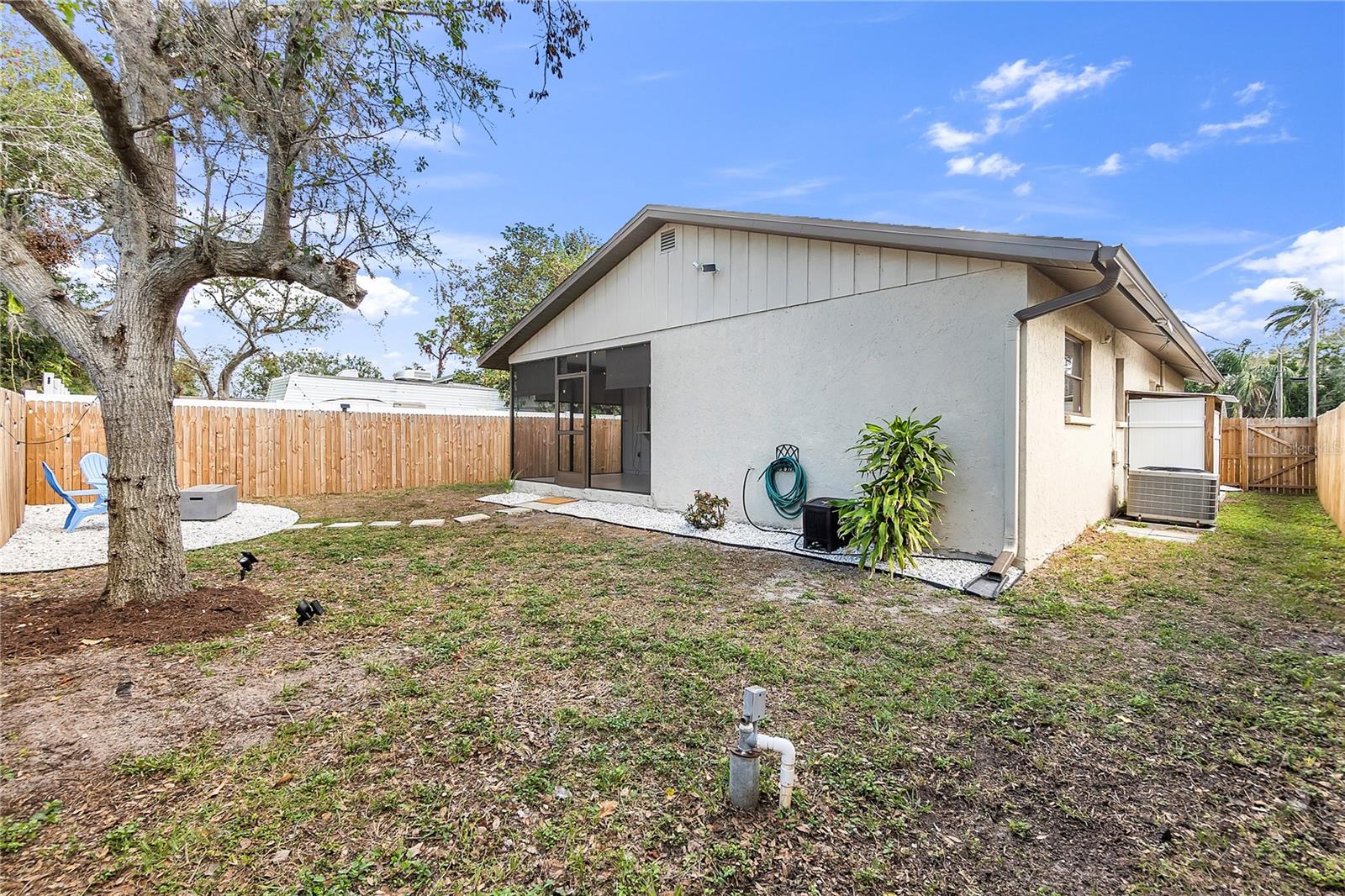 Nestled in the heart of Sarasota sits a hidden neighborhood leading way to a charming home. The solid block construction home features 2 spacious bedrooms and 2 remodeled bathrooms, showcasing custom tile work, modern vanities, upgraded showers, and stylish lighting. The master bath offers a luxurious walk-in shower, while the second bath includes an oversized bathtub for ultimate relaxation. The split floor plan ensures privacy with an owner's suite, complete with a walk-in closet. The bedrooms are outfitted with high-end engineered hardwood floors, providing both warmth and elegance. The custom kitchen is a chef’s dream, boasting ample counter space and storage, with the added convenience of a reverse osmosis and water alkaline system under the sink. A whole-house water filtration and softener system is also installed for your comfort. Enjoy the best of both indoor and outdoor living with a screened-in lanai, perfect for relaxing evenings, or step outside to your fully fenced backyard and gather around the fire pit with friends and family. Additional benefits include no HOA fees, no CCD fees and no flood insurance required. Conveniently located near shopping, dining, and just 7 miles from the world-renowned Siesta Key Beach, this property is ideal for those who love the coastal lifestyle. For outdoor enthusiasts, the Legacy Trail, a scenic 18-mile recreational trail perfect for biking or jogging, is just minutes away.