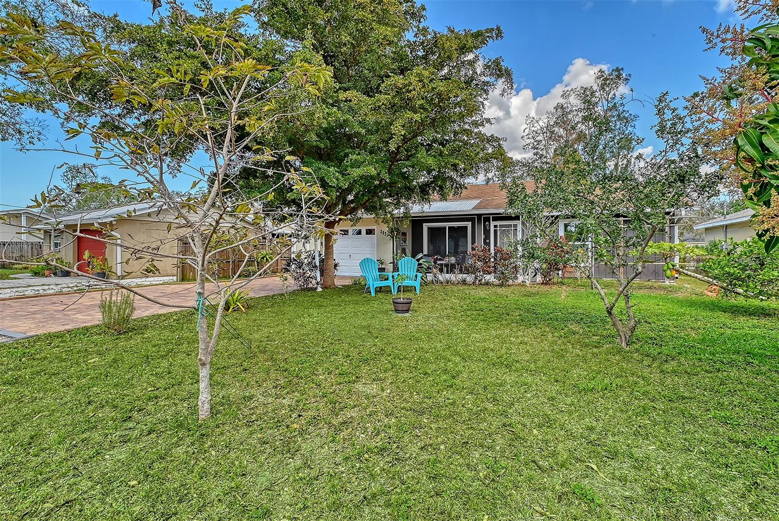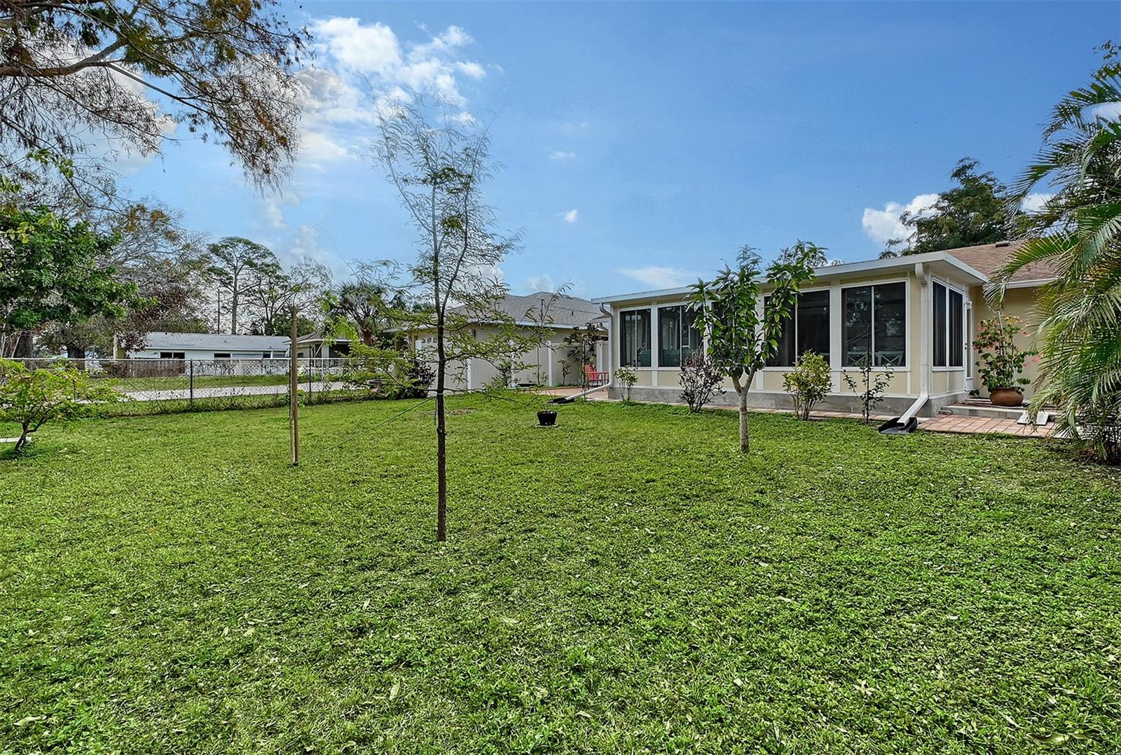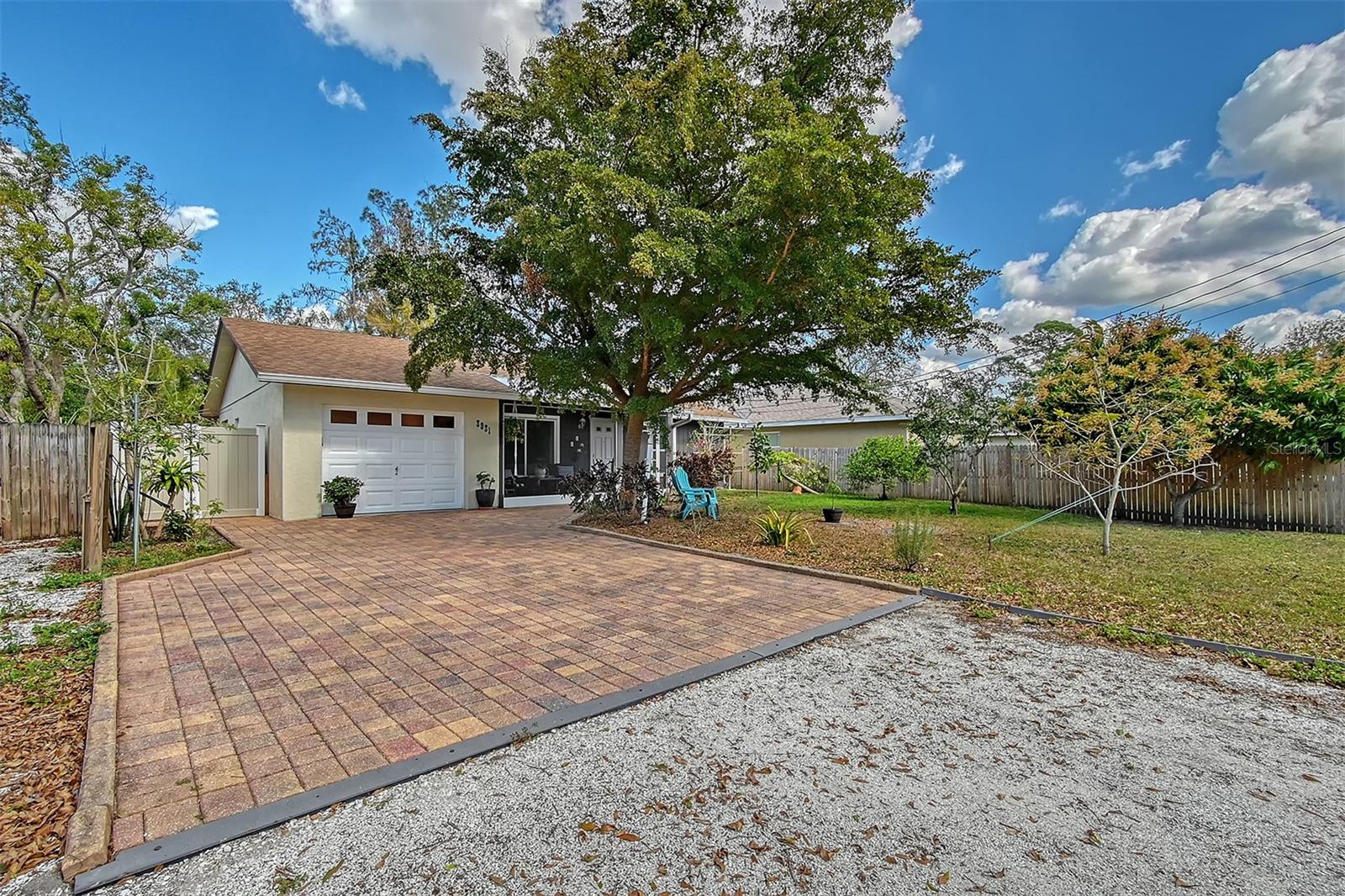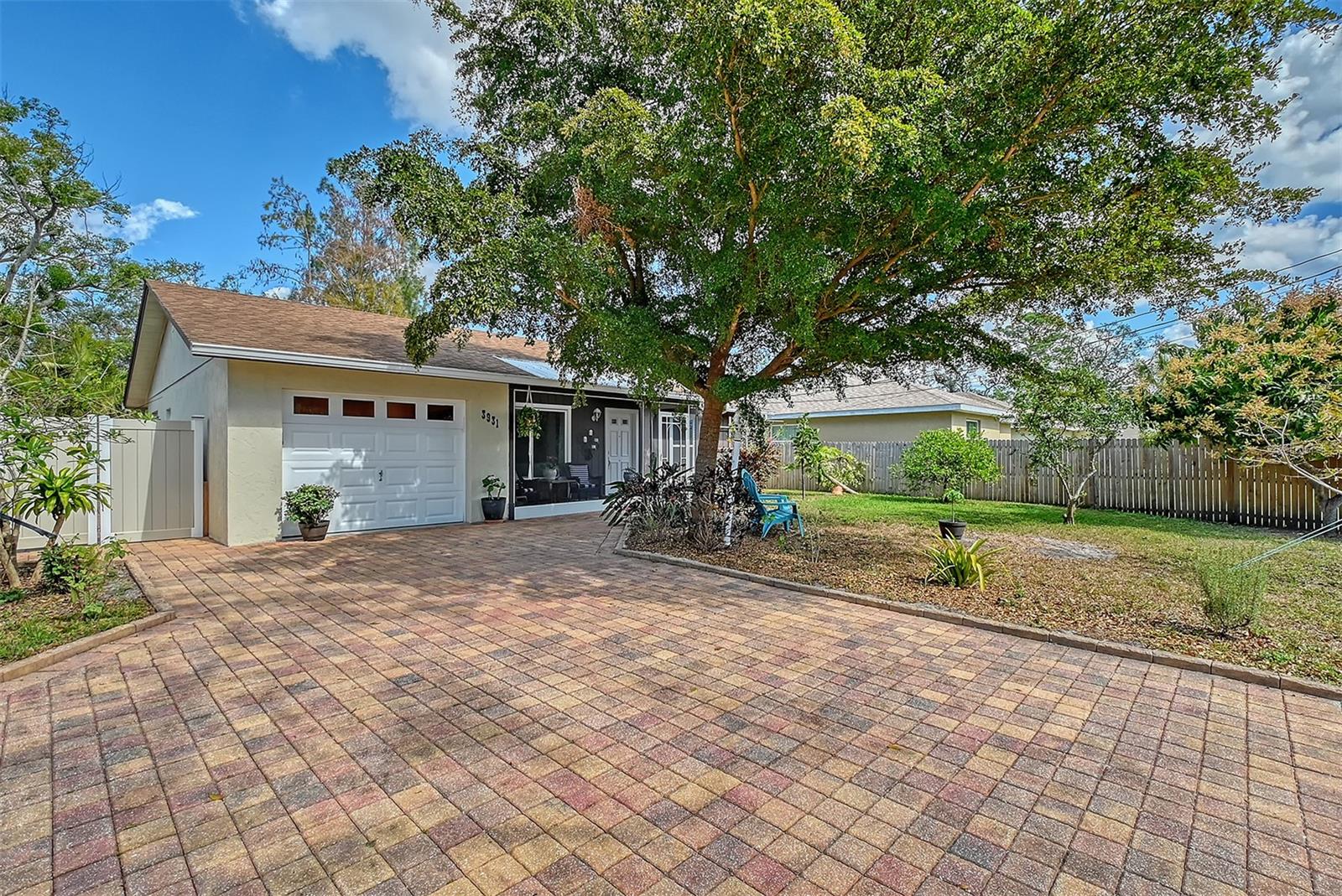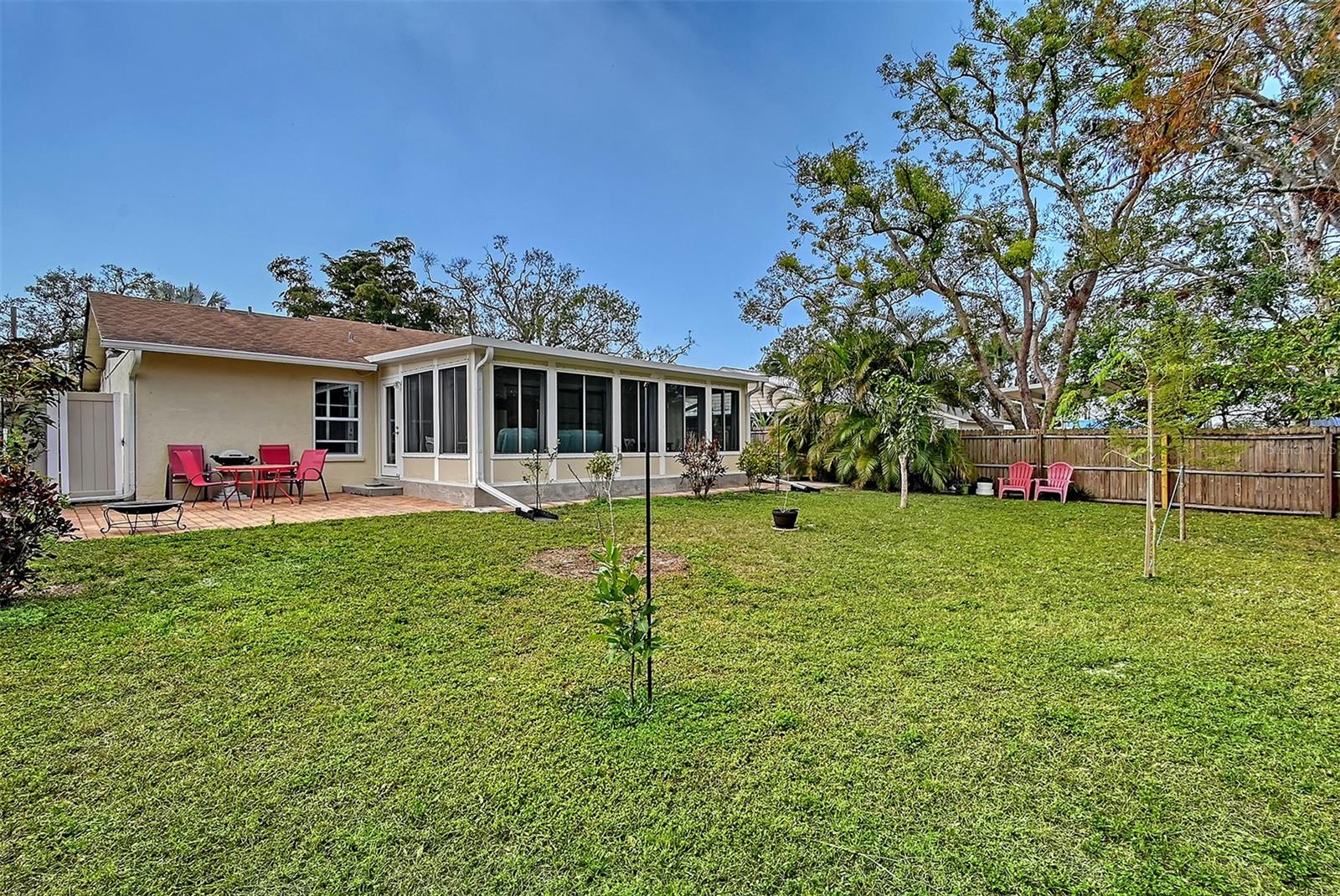 Hurry to this well kept home. It is the cutest home around. This 2 bedroom and 2 bath home has been remodeled tastefully. It is a beautiful open floor plan with a kitchen/dining room connected. The large kitchen has real wood cabinets and granite countertops. The living room and bedrooms have a wood look laminate and the rest of the home is ceramic tile. There is a large sunroom on the back of the house that brings wonderful light throughout the house. This home has hurricane windows and clear hurricane shutters for the sunroom. Enjoy sitting on the front screened in lanai. The backyard is large and very private. The lot attaches to the street behind and you could store a boat or trailer if needed. along with the one car garage there is a newer shed in the backyard. The owner has planted both the front and backyard with many trees and flowers. They finished the driveway and back patio with pavers. This home is centrally located and close to stores, restaurants and the beaches.