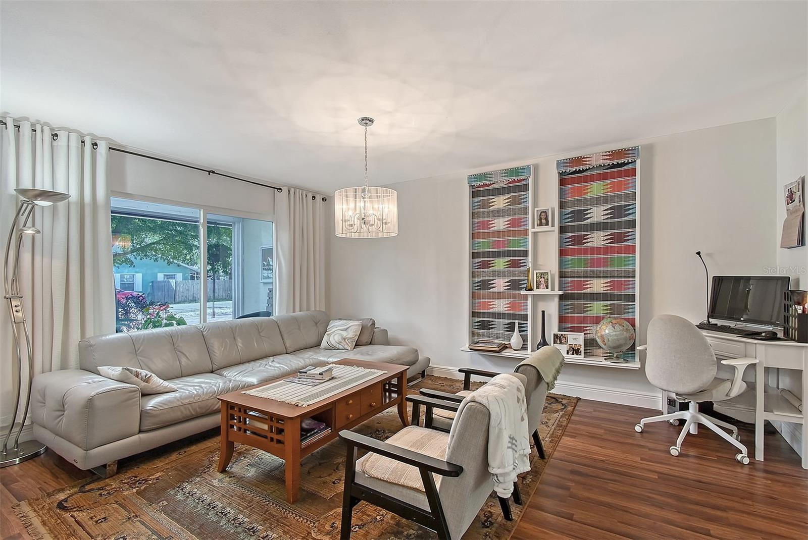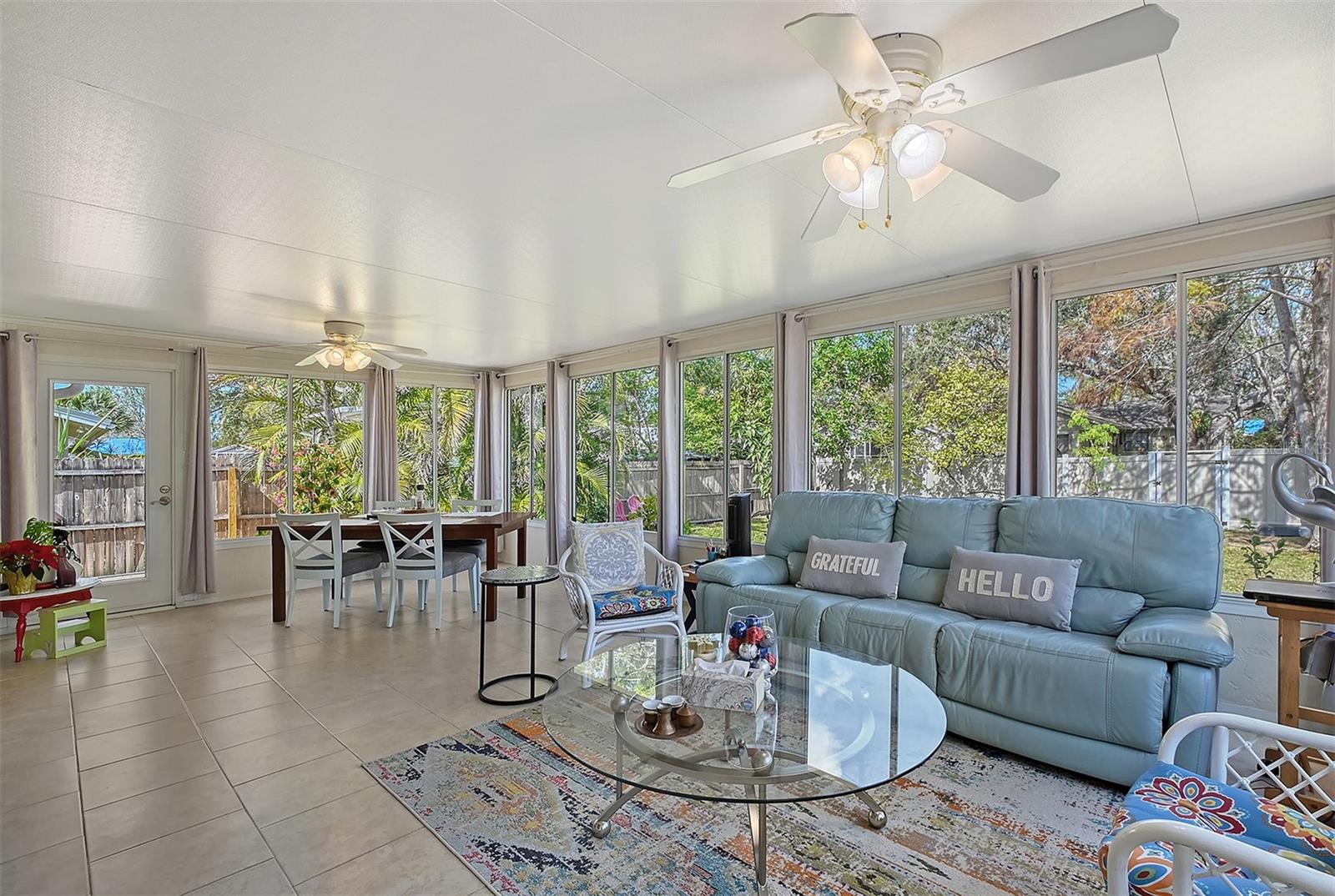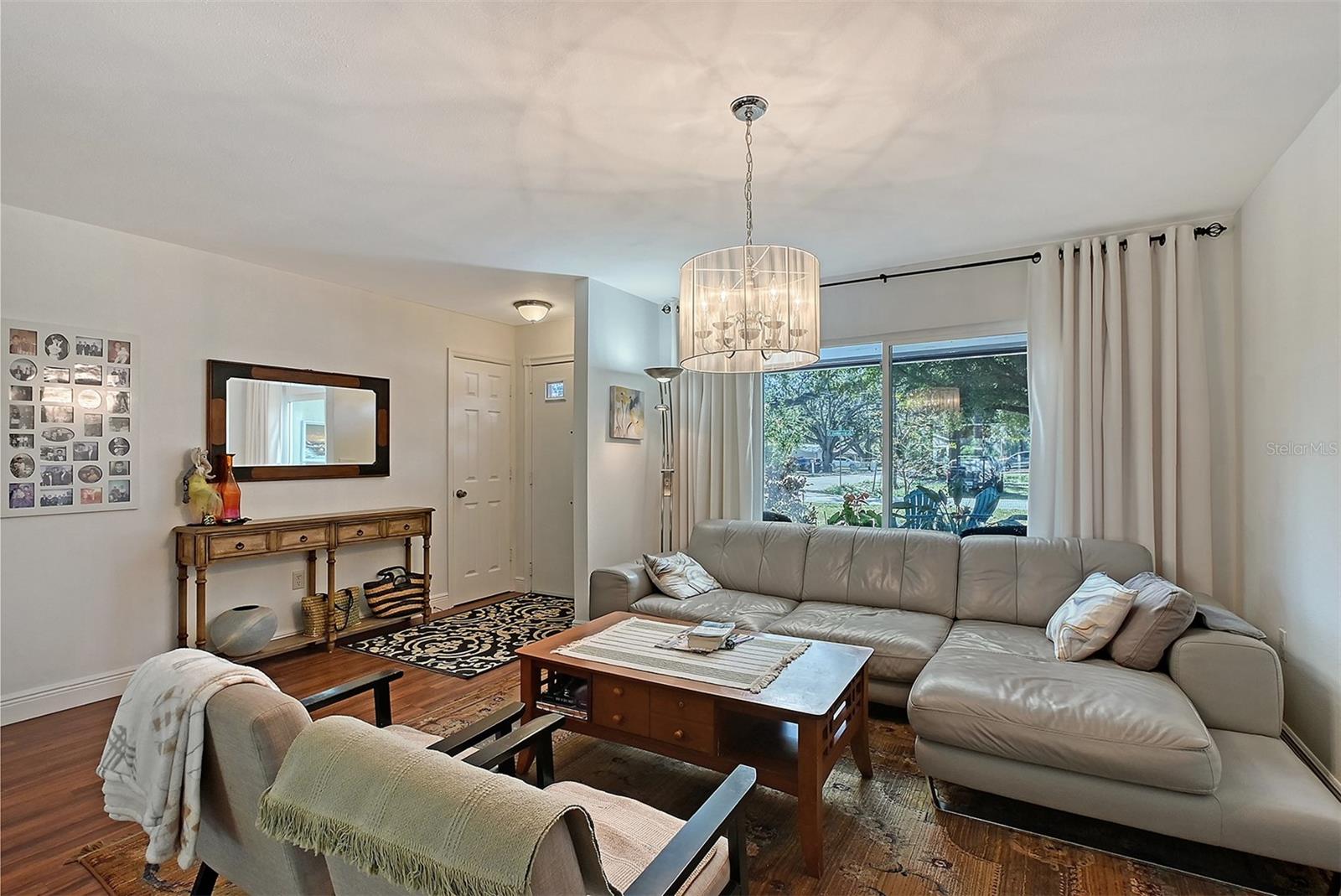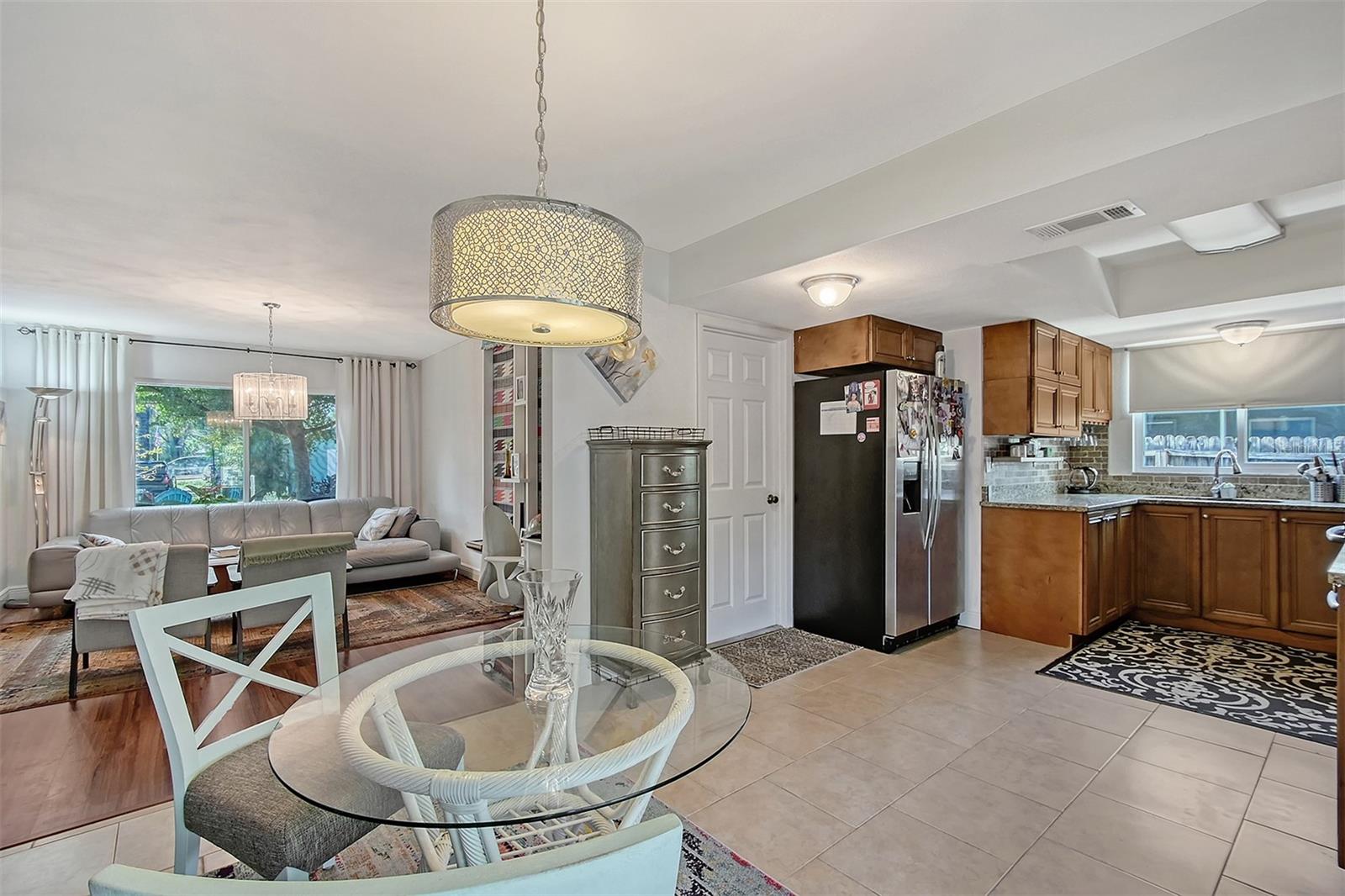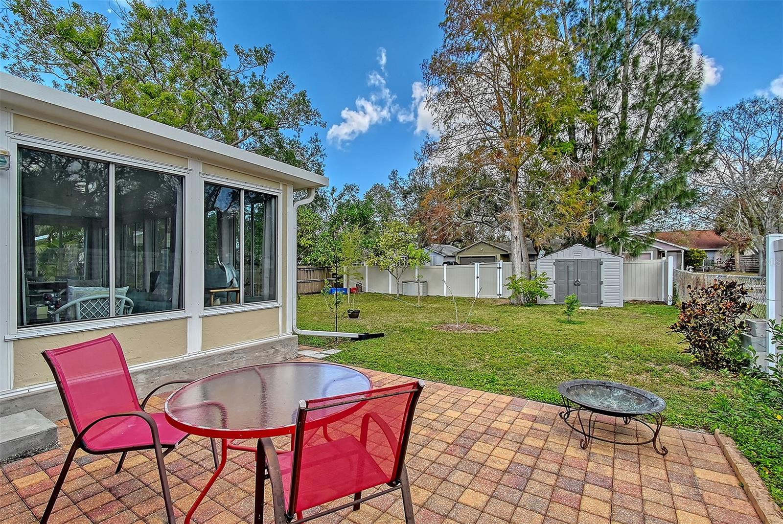 Hurry to this well kept home. It is the cutest home around. This 2 bedroom and 2 bath home has been remodeled tastefully. It is a beautiful open floor plan with a kitchen/dining room connected. The large kitchen has real wood cabinets and granite countertops. The living room and bedrooms have a wood look laminate and the rest of the home is ceramic tile. There is a large sunroom on the back of the house that brings wonderful light throughout the house. This home has hurricane windows and clear hurricane shutters for the sunroom. Enjoy sitting on the front screened in lanai. The backyard is large and very private. The lot attaches to the street behind and you could store a boat or trailer if needed. along with the one car garage there is a newer shed in the backyard. The owner has planted both the front and backyard with many trees and flowers. They finished the driveway and back patio with pavers. This home is centrally located and close to stores, restaurants and the beaches.