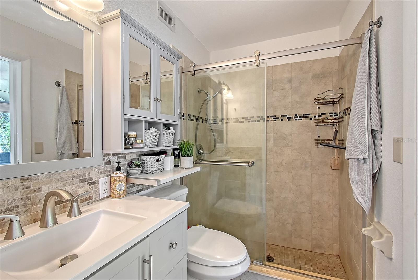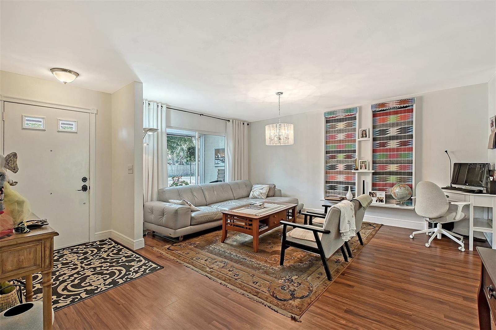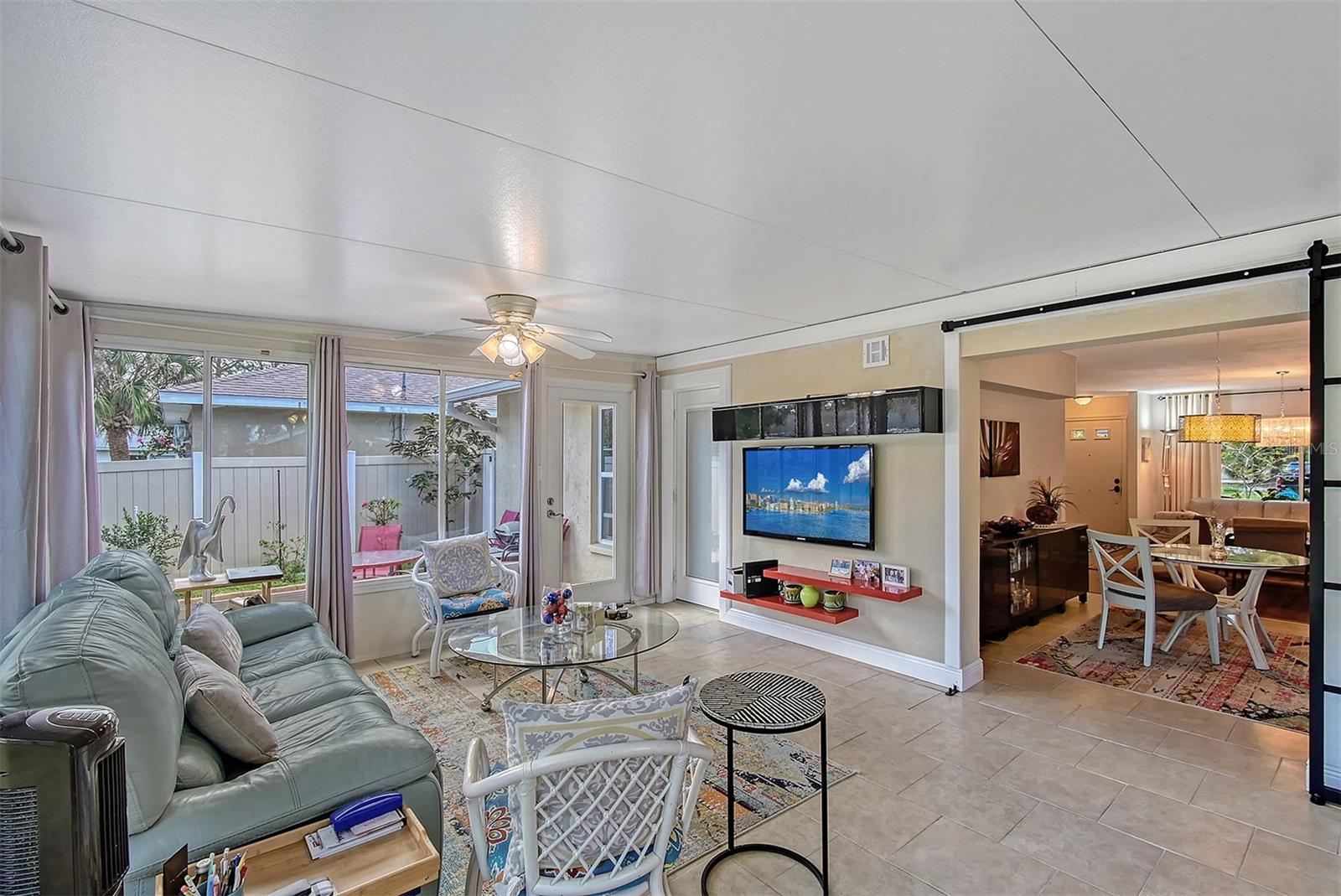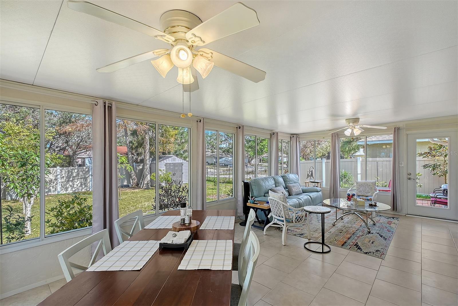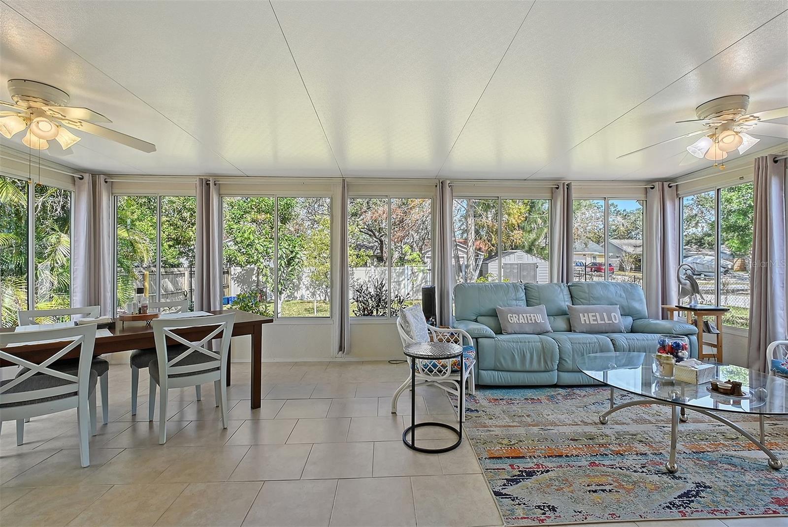 Hurry to this well kept home. It is the cutest home around. This 2 bedroom and 2 bath home has been remodeled tastefully. It is a beautiful open floor plan with a kitchen/dining room connected. The large kitchen has real wood cabinets and granite countertops. The living room and bedrooms have a wood look laminate and the rest of the home is ceramic tile. There is a large sunroom on the back of the house that brings wonderful light throughout the house. This home has hurricane windows and clear hurricane shutters for the sunroom. Enjoy sitting on the front screened in lanai. The backyard is large and very private. The lot attaches to the street behind and you could store a boat or trailer if needed. along with the one car garage there is a newer shed in the backyard. The owner has planted both the front and backyard with many trees and flowers. They finished the driveway and back patio with pavers. This home is centrally located and close to stores, restaurants and the beaches.
