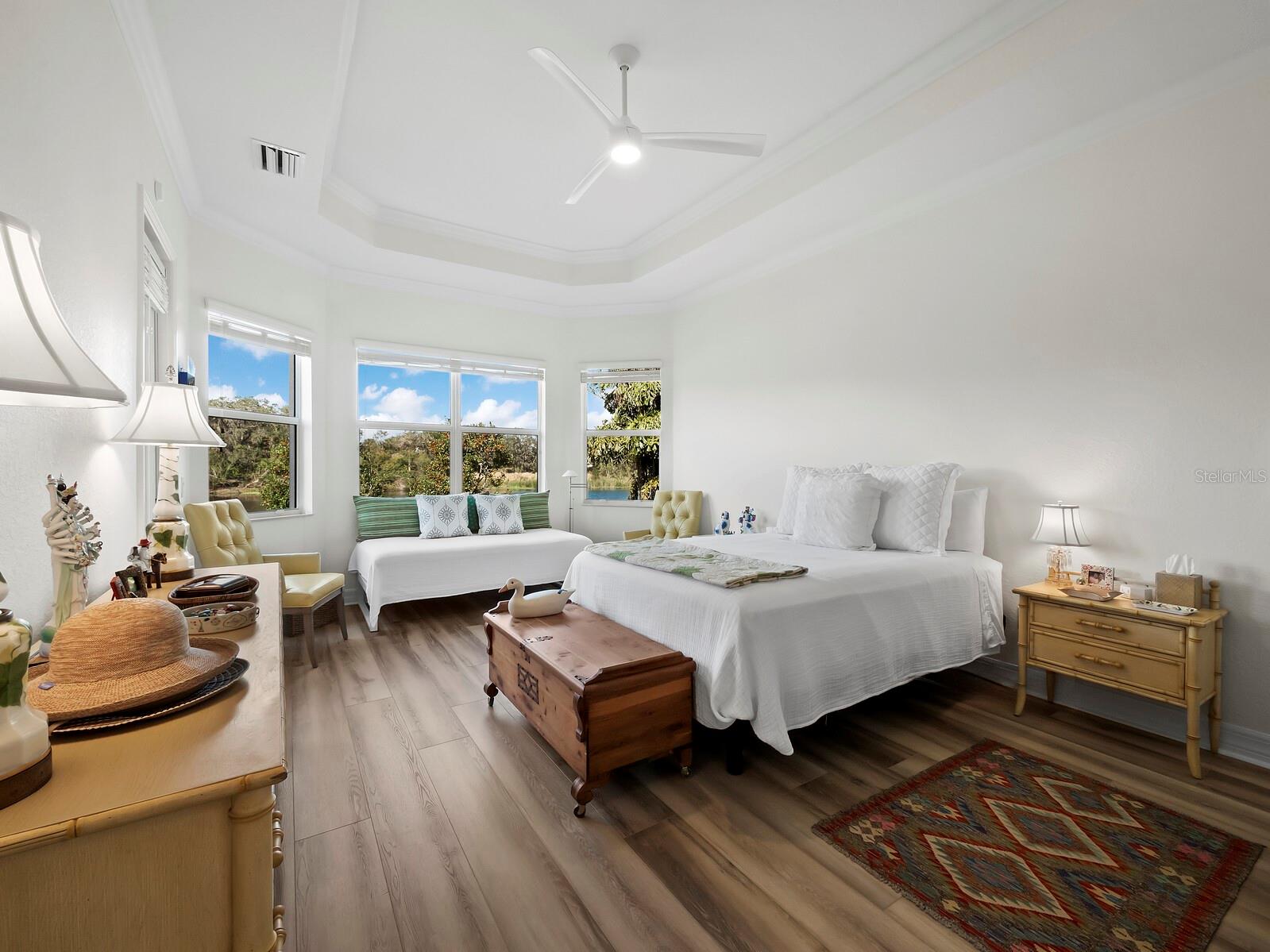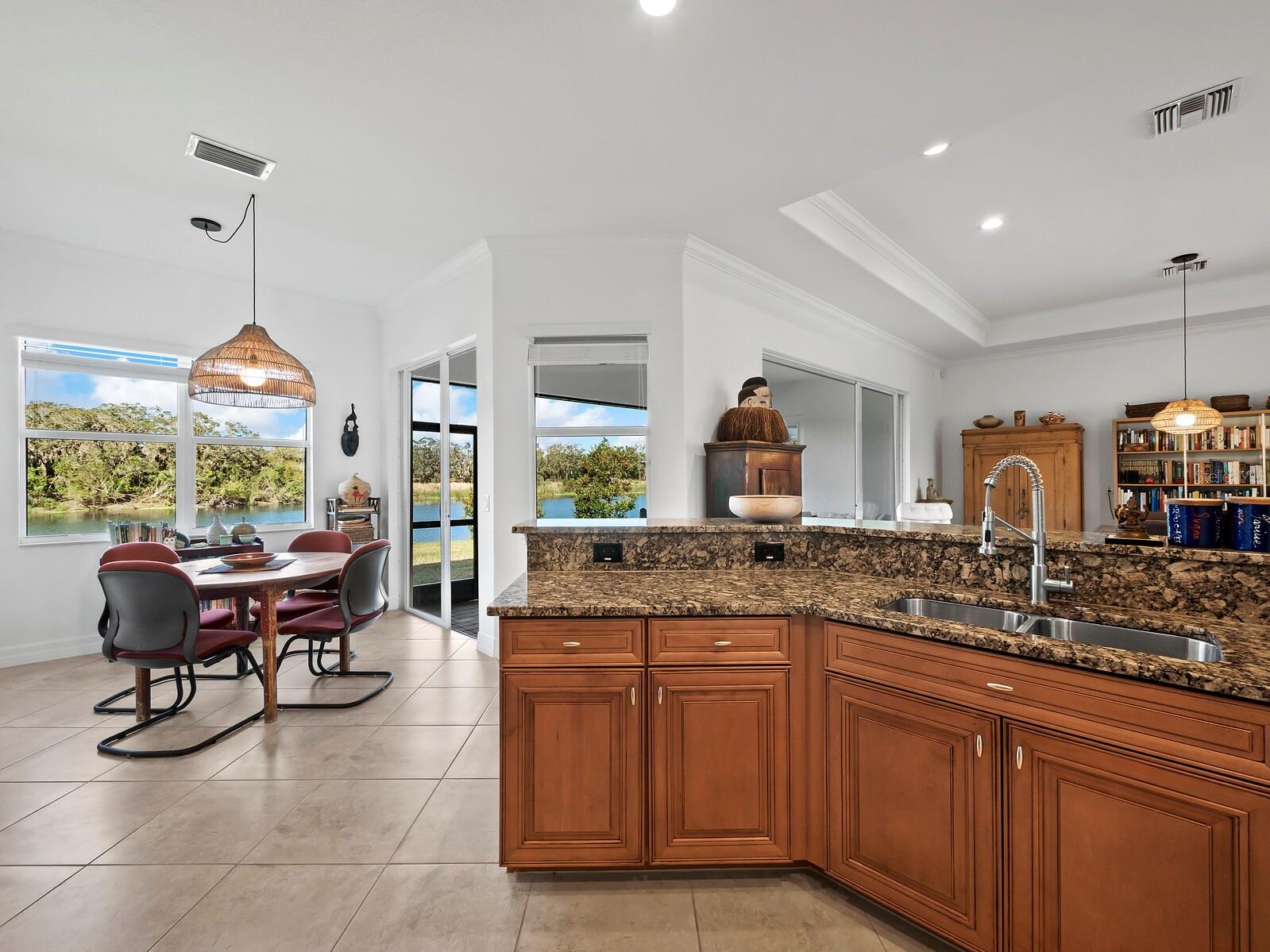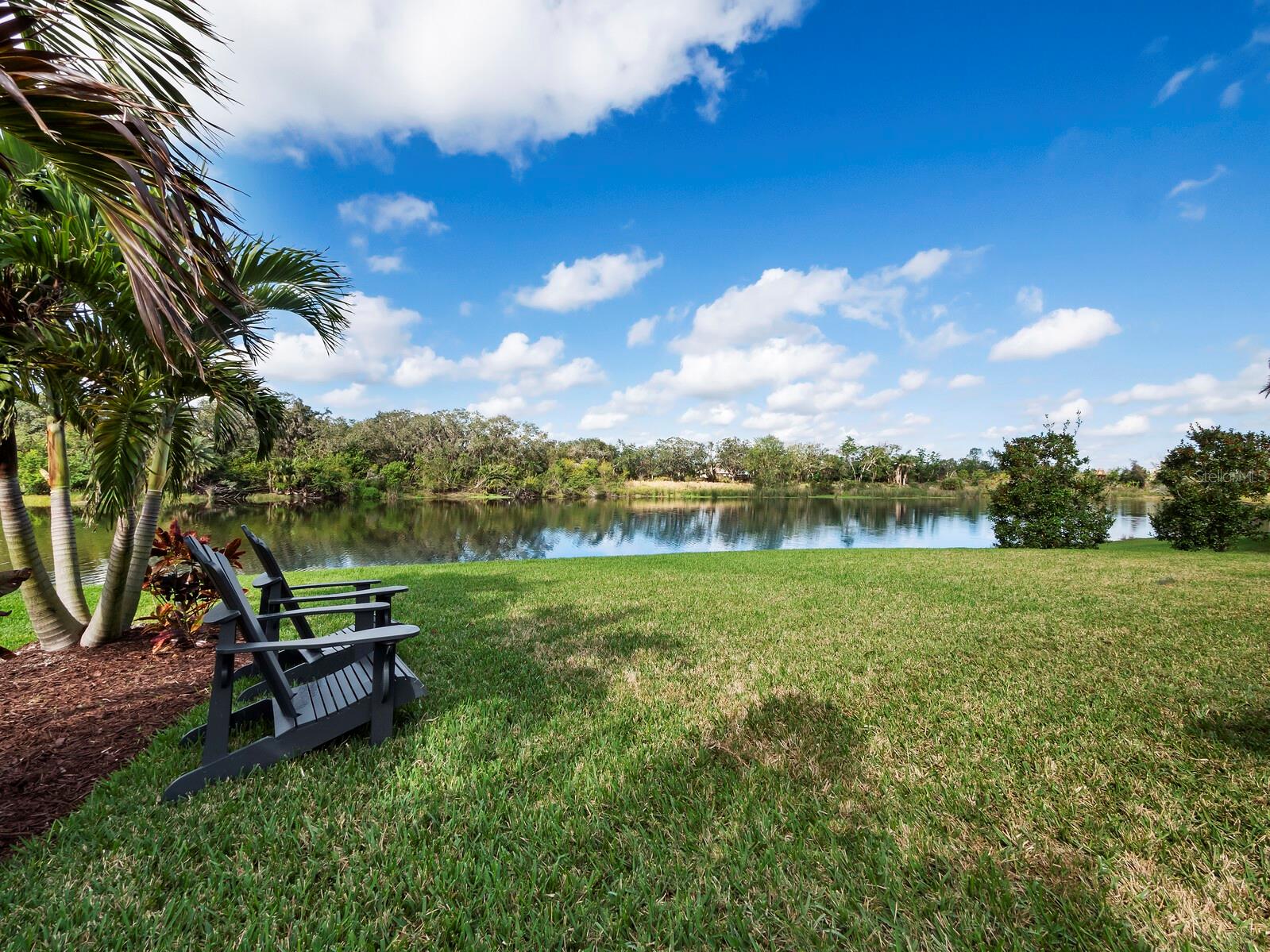 Enjoy the beauty of Sarasota living in this stunning, impeccably maintained home in the gated community of Laurel Lakes. Perfect for those who love nature, privacy, and the benefits of neighborhood living, this 2015-built home -among the newest built here-- is a rare find, offering both tranquility and community amenities. From the moment you step inside the breathtaking view of the large spring-fed lake will captivate you. Watch birds and wildlife from almost every room in your home with no neighbors in sight behind you—just peaceful water and lush scenery. As you sit on your lanai you can soak in nature with uninterrupted views through your panoramic screen and as an added feature there is a motorized 27’ sunshade which allows you to control the natural light while enjoying the view. Inside, you'll find a sophisticated, move-in-ready home with an open bright floor plan, tall tray ceilings and $125,000 of high end upgrades throughout! Designed for both comfort and function, this four-bedroom home includes a NEW, top-of-the-line Carrier Infinity AC, NEW luxury wide-plank LVP flooring, whole-home surge protector and Elfa closet systems. The three-car garage has two insulated, air-conditioned bays, perfect for a home gym, art studio, playroom or storage, with a motorized screen for fresh air and privacy. Or simply use it as a 3-car garage with A/C. Cooks will enjoy the eat-in kitchen which boasts solid wood cabinetry, abundant storage, and NEW high-end “smart” appliances, including Consumer Reports highest-rated natural gas cooktop, Bosch dishwasher, and a deluxe Bespoke four-door refrigerator. The kitchen opens to the main living areas making it perfect for family gatherings or entertaining. The split floor plan offers guests and the family a private wing with two bedrooms and two full bathrooms and one-half bathroom. The spacious primary bedroom provides access to your lanai, expansive closet space and a beautiful en-suite with zero entry shower, dual vanities and a soaking tub to relax in at the end of the day. Laurel Lakes offers updated tennis and pickleball courts, a fitness center and a resort-style pool—giving you the benefits of a pool without the upkeep. There are no CDD fees and no flood insurance required! This prime location places you minutes from shopping and dining, top-rated schools, the beaches of Siesta Key, Lakewood Ranch and the Sarasota Airport. This one-of-a-kind home with top-of-the-line improvements is a must-see—schedule your tour today!