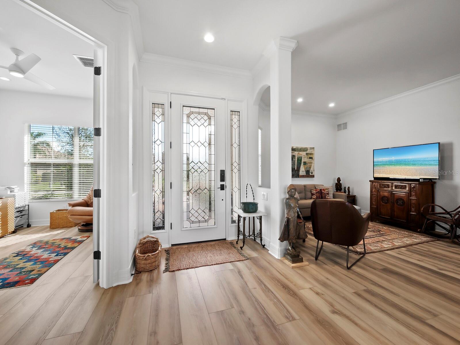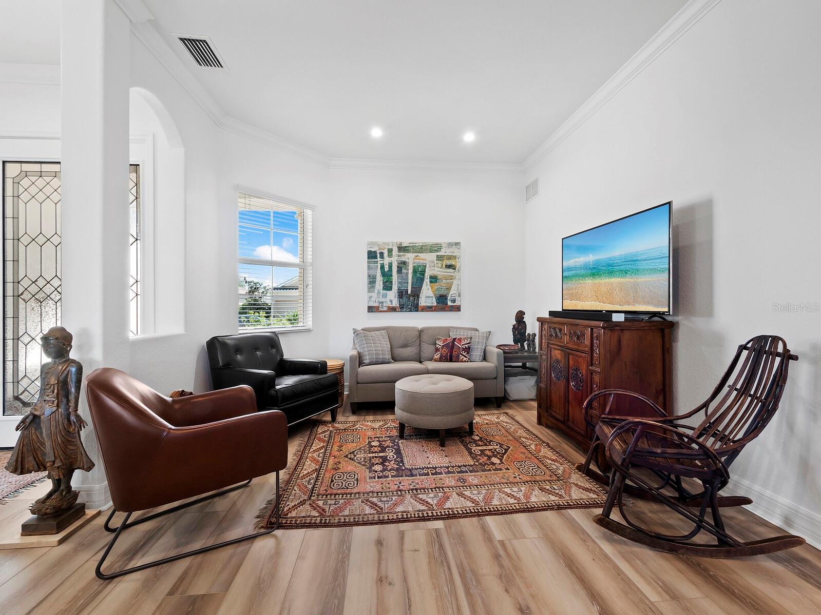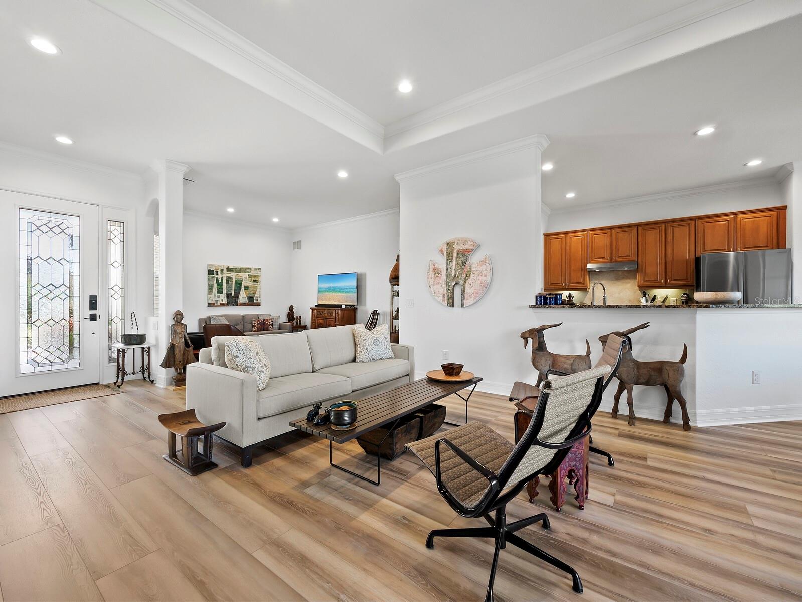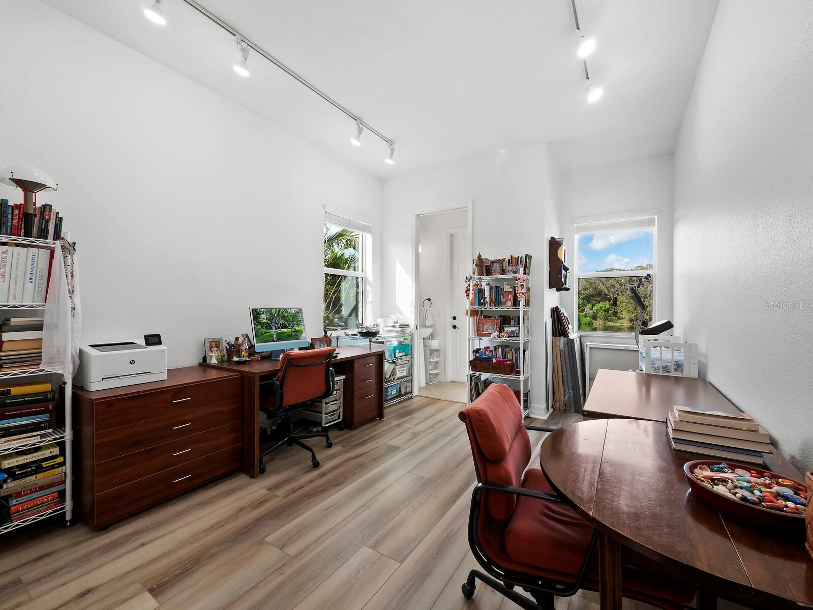 Enjoy the beauty of Sarasota living in this stunning, impeccably maintained home in the gated community of Laurel Lakes. Perfect for those who love nature, privacy, and the benefits of neighborhood living, this 2015-built home -among the newest built here-- is a rare find, offering both tranquility and community amenities. From the moment you step inside the breathtaking view of the large spring-fed lake will captivate you. Watch birds and wildlife from almost every room in your home with no neighbors in sight behind you—just peaceful water and lush scenery. As you sit on your lanai you can soak in nature with uninterrupted views through your panoramic screen and as an added feature there is a motorized 27’ sunshade which allows you to control the natural light while enjoying the view. Inside, you'll find a sophisticated, move-in-ready home with an open bright floor plan, tall tray ceilings and $125,000 of high end upgrades throughout! Designed for both comfort and function, this four-bedroom home includes a NEW, top-of-the-line Carrier Infinity AC, NEW luxury wide-plank LVP flooring, whole-home surge protector and Elfa closet systems. The three-car garage has two insulated, air-conditioned bays, perfect for a home gym, art studio, playroom or storage, with a motorized screen for fresh air and privacy. Or simply use it as a 3-car garage with A/C. Cooks will enjoy the eat-in kitchen which boasts solid wood cabinetry, abundant storage, and NEW high-end “smart” appliances, including Consumer Reports highest-rated natural gas cooktop, Bosch dishwasher, and a deluxe Bespoke four-door refrigerator. The kitchen opens to the main living areas making it perfect for family gatherings or entertaining. The split floor plan offers guests and the family a private wing with two bedrooms and two full bathrooms and one-half bathroom. The spacious primary bedroom provides access to your lanai, expansive closet space and a beautiful en-suite with zero entry shower, dual vanities and a soaking tub to relax in at the end of the day. Laurel Lakes offers updated tennis and pickleball courts, a fitness center and a resort-style pool—giving you the benefits of a pool without the upkeep. There are no CDD fees and no flood insurance required! This prime location places you minutes from shopping and dining, top-rated schools, the beaches of Siesta Key, Lakewood Ranch and the Sarasota Airport. This one-of-a-kind home with top-of-the-line improvements is a must-see—schedule your tour today!