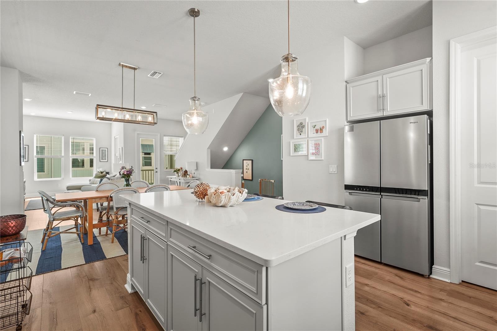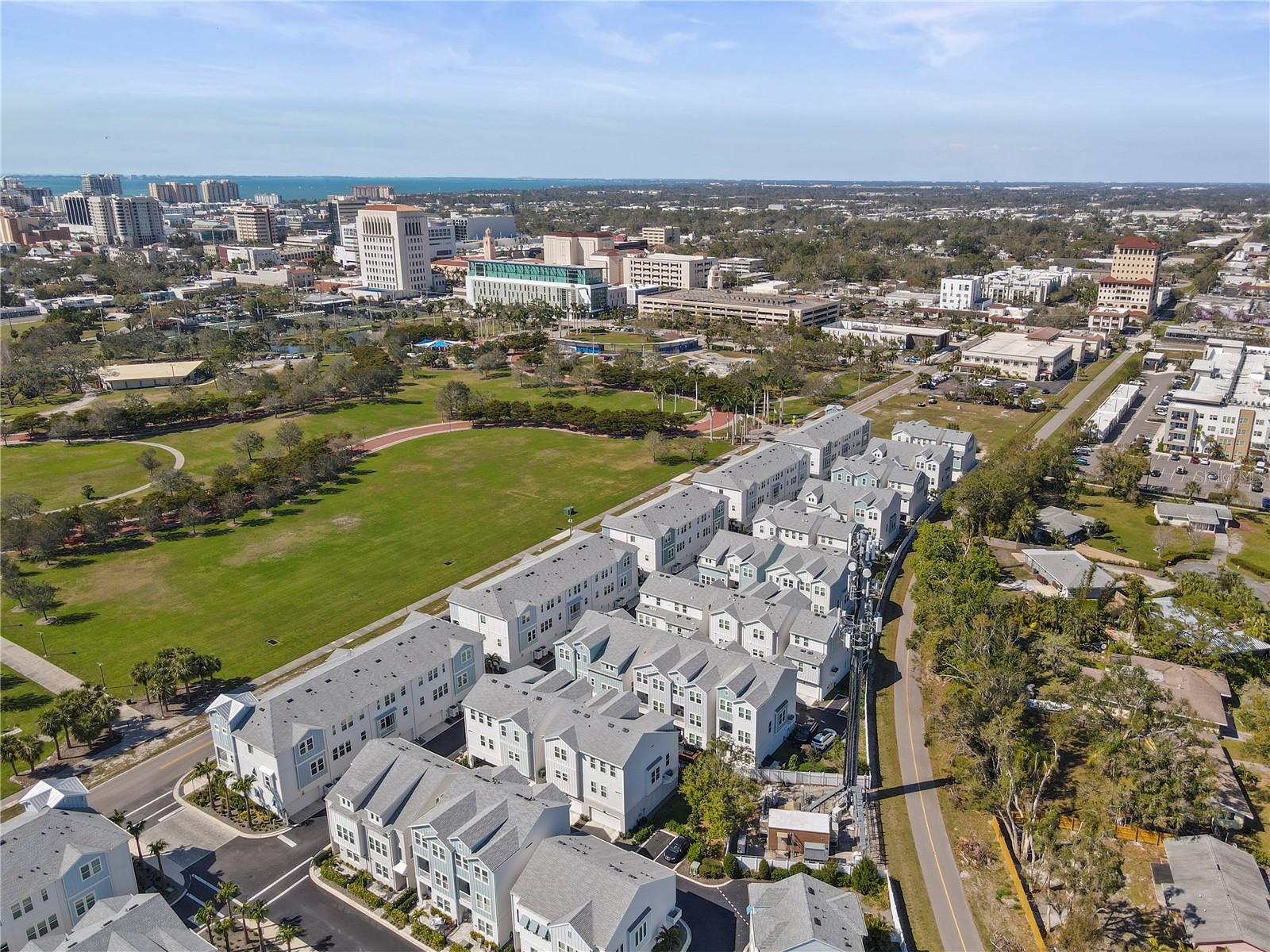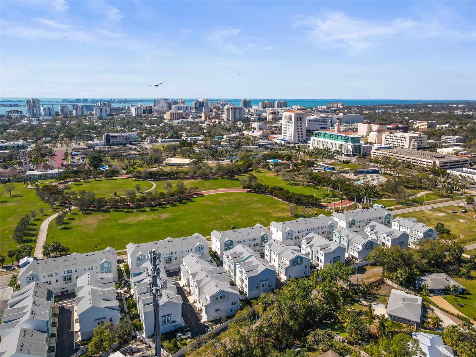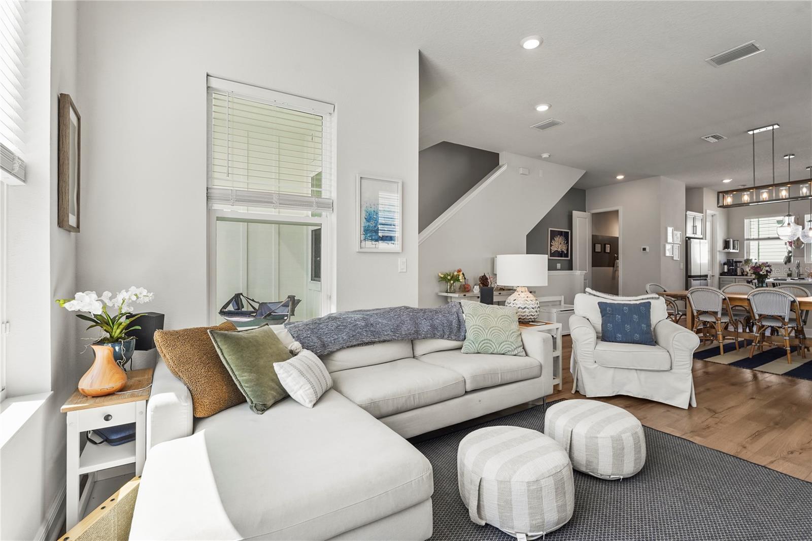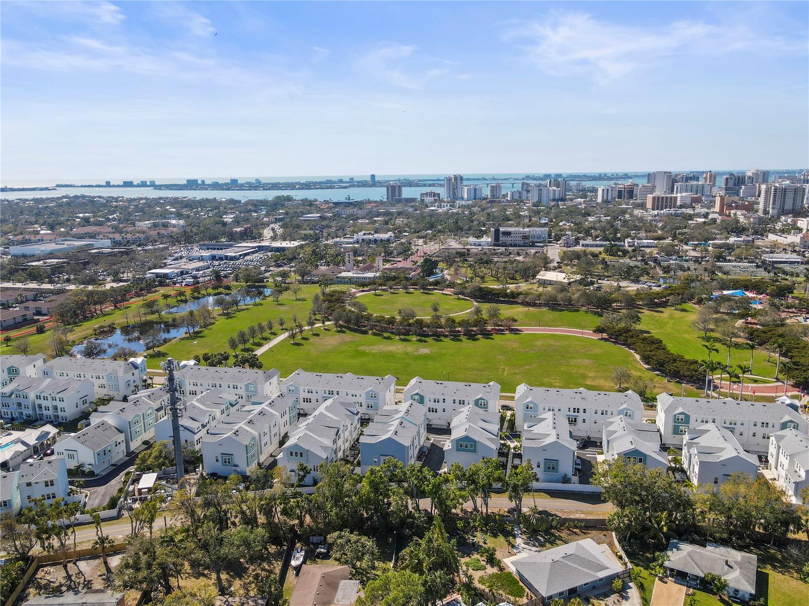 Located in the heart of Sarasota, this three-story townhouse offers a rare blend of modern design, comfort, and unbeatable convenience. Just a short stroll from downtown’s acclaimed restaurants, boutique shops, and vibrant arts scene, this home is perfect for those who want to experience the best of Sarasota living. With 2,070 square feet of thoughtfully designed space, this residence features three generous bedrooms, three and a half bathrooms, and an open-concept layout that maximizes natural light. Unlike many other units, this home was designed with extra windows, creating an exceptionally bright and airy second floor. At its center, the kitchen is both stylish and functional, featuring Quartz countertops, extensive cabinetry, a large island with extra storage, and upgraded appliances. Throughout the home, accent walls add warmth and character, while upgraded wallpaper in the primary suite gives the space a refined touch. The living and dining areas flow seamlessly, offering the ideal setup for everyday living or entertaining. Step onto the second-floor balcony or the first-floor patio to enjoy the fresh air, or retreat to the first-floor flex space—perfect as a home office, guest suite, or media room, complete with its own en-suite bath. Upstairs, the primary suite serves as a relaxing escape with a spacious walk-in closet and a beautifully upgraded en-suite bath featuring a frameless glass shower enclosure, window, and extensive tile. A second upstairs bedroom also includes an en-suite bath, ensuring privacy and comfort for family or guests. Elegant plank flooring extends throughout the main living areas and staircases, in addition to the upgrade associated with its inclusion in the primary bedroom and walk-in closet, while plush carpeting in the bedrooms enhances comfort. Designed with convenience in mind, the two-car garage includes upgraded hanging storage on both sides—ideal for organizing beach gear, bikes, or seasonal items. The community offers a resort-style pool, spa, cabana, and dog park, creating a relaxing and social atmosphere. Just a few hundred steps away, Payne Park offers a serene escape with three picturesque ponds, a well-lit half-mile walking path, and a vibrant, circus-themed playground. Bird watchers and nature lovers will find it a true hidden gem. The nearby Legacy Trail provides scenic routes for walking, running, and cycling, while Payne Park Tennis Center features state-of-the-art courts for players of all levels. For those who love the energy of downtown, Sarasota’s lively cultural and dining scene as well as its bayfront parks are just minutes away and reachable by bike lane. From the weekend farmers’ market to world-class theaters and waterfront restaurants, everything you need is within easy reach. And when it’s time to unwind, the white-sand beaches of Lido Key and St. Armands Circle are just a short drive away. A home that blends style, comfort, and location—schedule your private showing today!