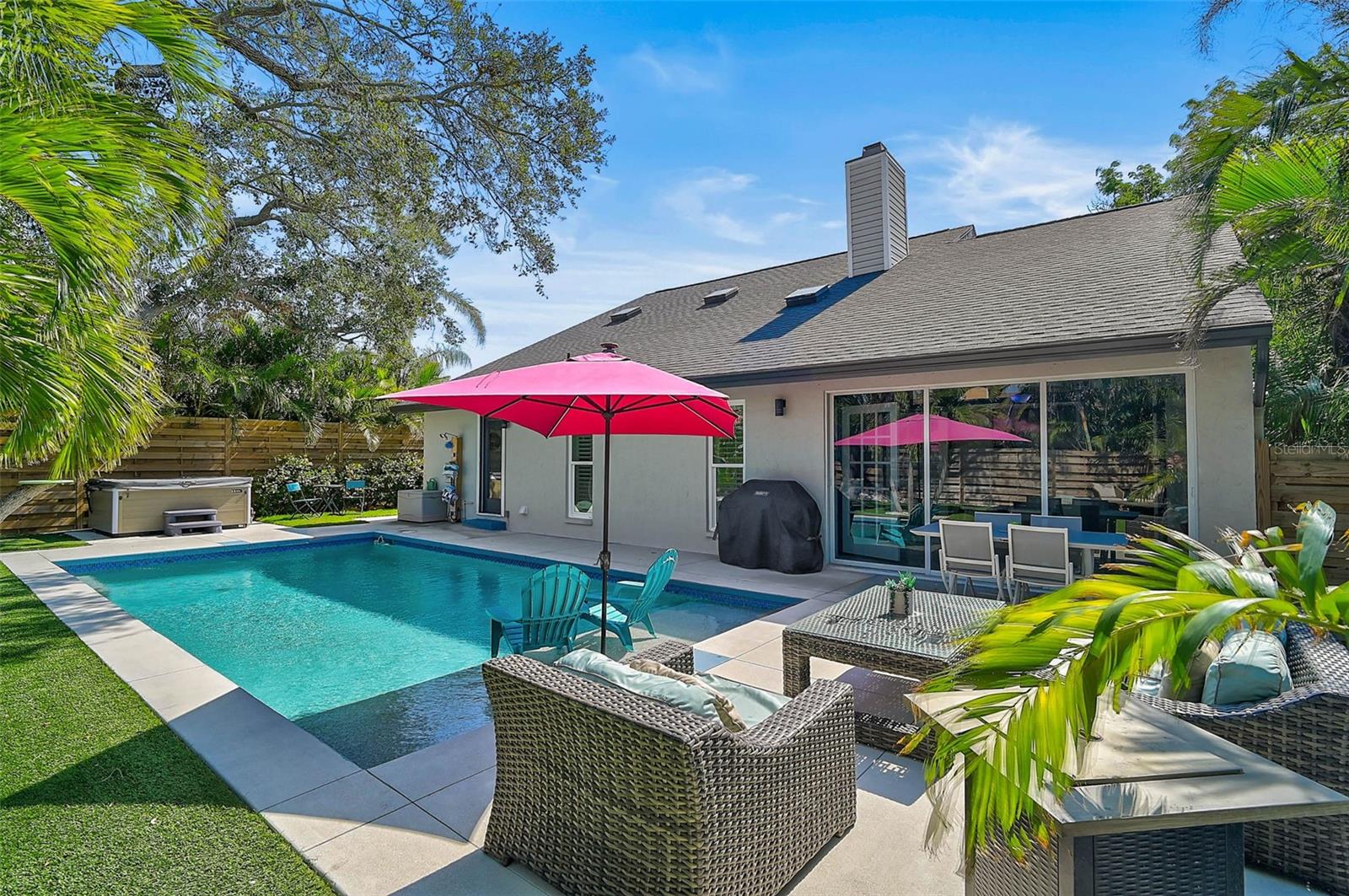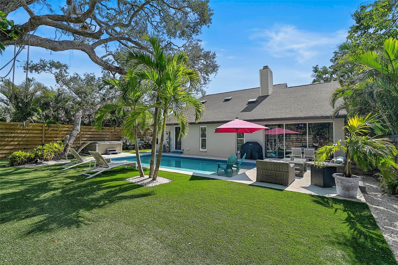 Coastal Elegance Near Siesta Key – A Rare Gem in Cedar Cove Discover the perfect blend of tranquility and convenience in this stunning West of the Trail home, nestled in the sought-after Cedar Cove enclave—a hidden gem just moments from Siesta Key Beach. Imagine starting your mornings with a peaceful bike ride to the shore, spending afternoons by your heated saltwater pool, and unwinding in your private backyard oasis, complete with an artificial turf putting green and serene pond views where turtles bask and birds sing in the shade of majestic oak trees. This thoughtfully designed home offers a flexible and spacious layout, featuring two bedrooms and two baths on the main level and an expansive owner’s retreat upstairs, complete with a large walk-in closet, remodeled ensuite bath, loft office space, and a versatile fourth room—perfect for a gym, study, or guest suite. Meticulously maintained and updated, this home boasts: ? Brand-New Roof (2025) with hurricane clips & 30-year transferable warranty ? New Dual-Zone HVAC (2023) for ultimate comfort ? Gorgeous updated flooring throughout ? **NO FLOOD ZONE - FLOOD ZONE X RARE** ROADS IN THE PROCESS OF BEING REPAVED