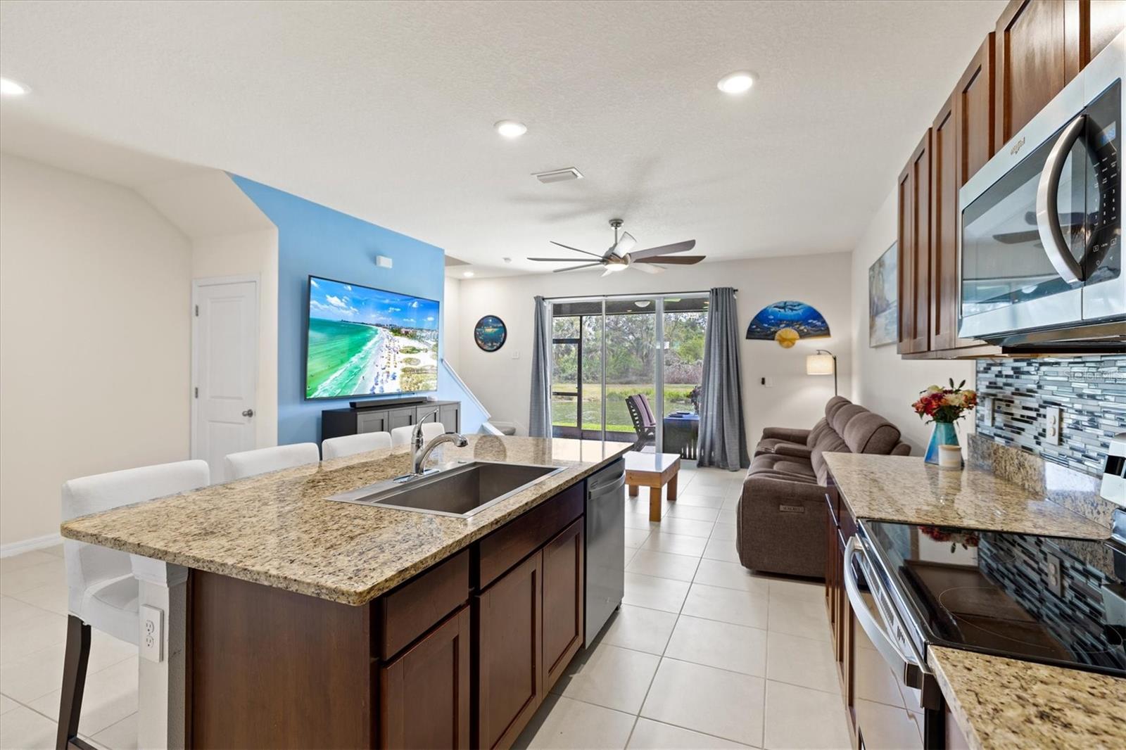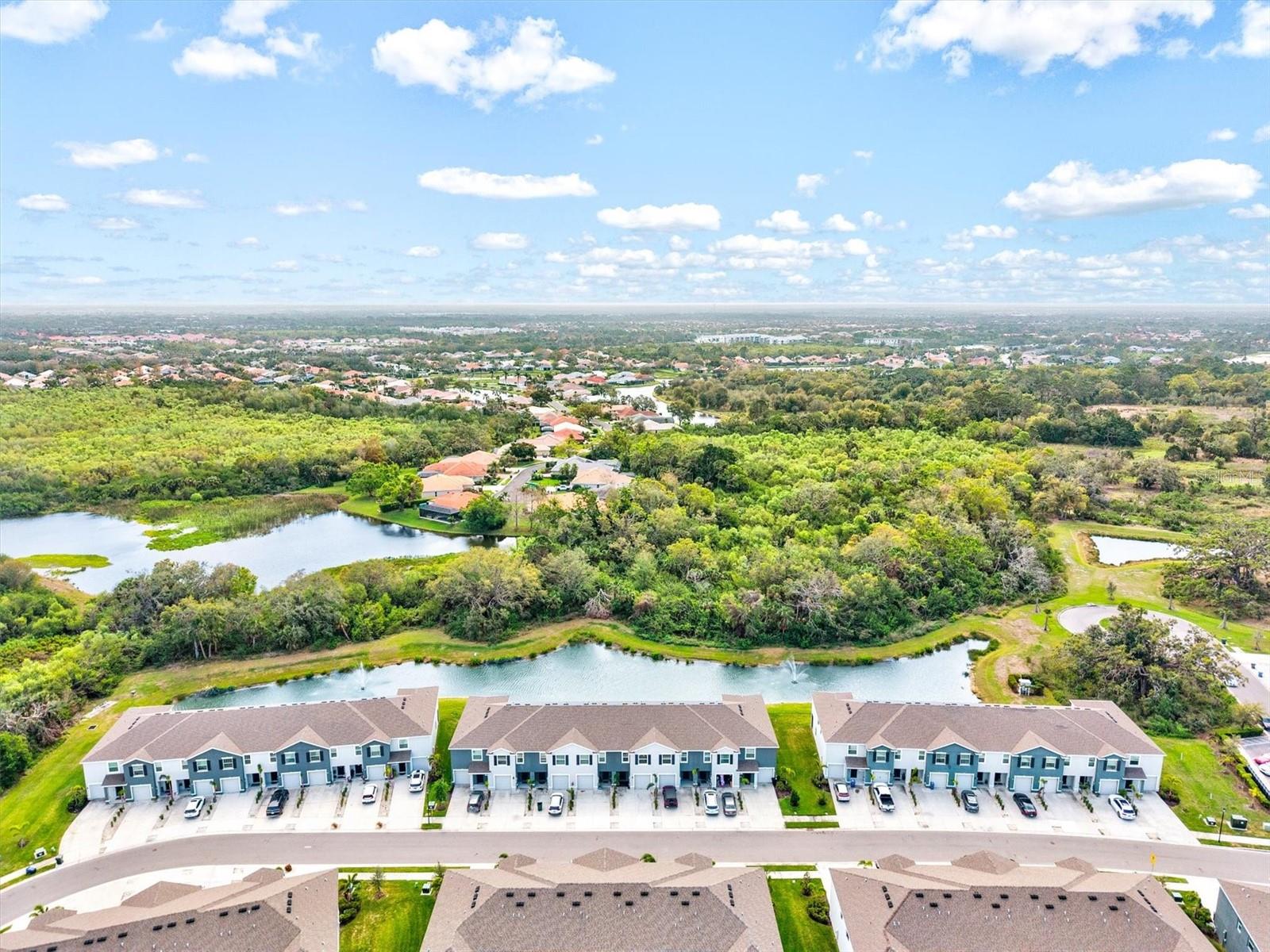 Move In with Confidence & enjoy the best value in the community! This two-story block townhome is the only home in the community equipped with brand-new hurricane-impact windows in all bedrooms—offering safety, energy efficiency, and the convenience of no second-floor shutters. This spacious 3-bedroom, 2.5-bath home features an open floor plan, a master suite with preserve views, a custom glass-enclosed tile shower, and upgraded granite countertops in both upstairs bathrooms. The laundry room is conveniently located upstairs for easy access. Nestled against the 82-acre Culver House Preserve, enjoy breathtaking, unobstructed views and serene pond vistas from your screened lanai, complete with the calming sounds of dual fountains. Located in a gated community with a heated pool and amenity center, HOA fees cover lawn care, irrigation, and even your water bill for low-maintenance living. Just one mile from everyday conveniences and steps from the 18.5-mile Legacy Trail, perfect for biking and nature walks. Plus, you’re only 15 minutes from pristine Gulf Coast beaches. With premium hurricane protection, luxury upgrades, and an unbeatable location, this home is a rare find. Don’t miss out—schedule your showing today!