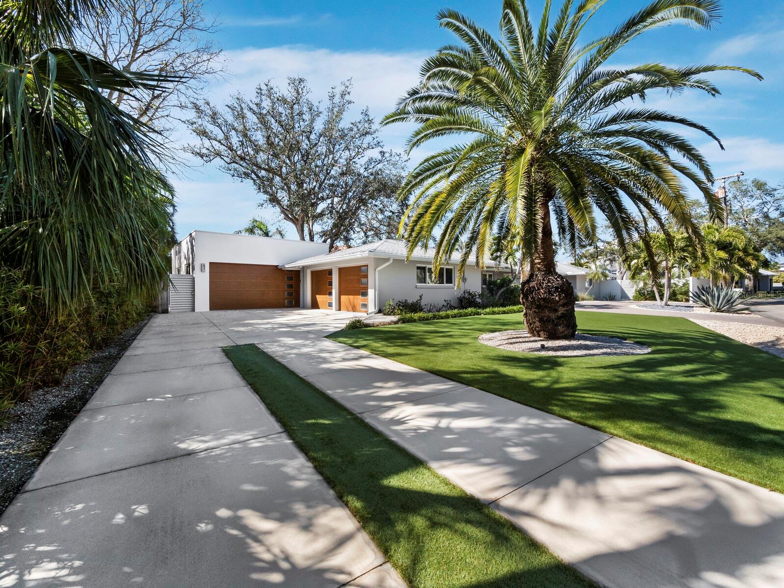 Have you been dreaming of a charmed life West of the Trail without the multi-million-dollar price tag that often comes with it? This fantastic property in historic & ideally located McClellan Park is the prime opportunity you have been waiting for! Spacious and well laid out inside plus an amazing amount of pristine outdoor space on a 1/3-acre lot, it is the perfect combination for comfortable living. McClellan Park is known for its meandering streets, lovely mix of historic and newer homes, and excellent walking-distance proximity to the shops of Southside Village, Sarasota Memorial Hospital, and desirable Southside Elementary. This property features an idyllic & extremely private salt-water pool with spotless turf & a pretty walled perimeter, loads of storage space (a rarity in a 1960s home!), plus a separate detached 2-car garage that makes space for 4 (yes, you read that right!) vehicles total. Both garages are air conditioned so they also can be easily used as a home gym, art studio, workshop or whatever other kind of space your heart & lifestyle desires! The tropical landscaping is immaculate and easy to maintain, making it a perfect lock & leave seasonal or vacation home, and there is a huge covered patio and second fenced yard to enjoy in addition to the outdoor space surrounding the pool. The property also features impact windows & doors, a brand new pool pump (2024), a Kinetico water purification system, sleek epoxy garage floors, and many other updates completed in the past few years. Existing structure had slight water damage and has been remediated, so the choice is yours whether to repair and live in the existing home or build new! This rare location simply cannot be beat – you are truly in the center of it all but with a quiet neighborhood feel – and it is mere minutes to vibrant downtown Sarasota, the renown sands of Siesta Key, and the shopping destination of St. Armands Circle. Everything will be at your fingertips here in marvelous McClellan Park, where your new life awaits…
