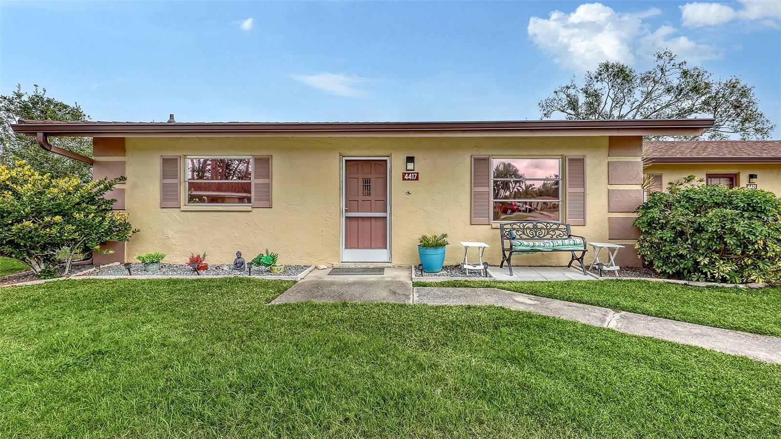 Immaculate, updated end unit villa. Open floor plan with laminate wood flooring. White on white kitchen, laundry inside, huge lanai with extra storage area. Carport plus guest parking. You will enjoy the heated pool, clubhouse & shuffleboard courts right across the street. A/C done in 2021. Metal roof done in 2024. 55+ community. The reasonable maintenance fee covers lawn, basic cable, water, sewer, pool, clubhouse & roof. Pet policy states up to 2 cats, no dogs unless it is registered service animal. Convenient location to Siesta Key beach, shopping, restaurants, banking & more.