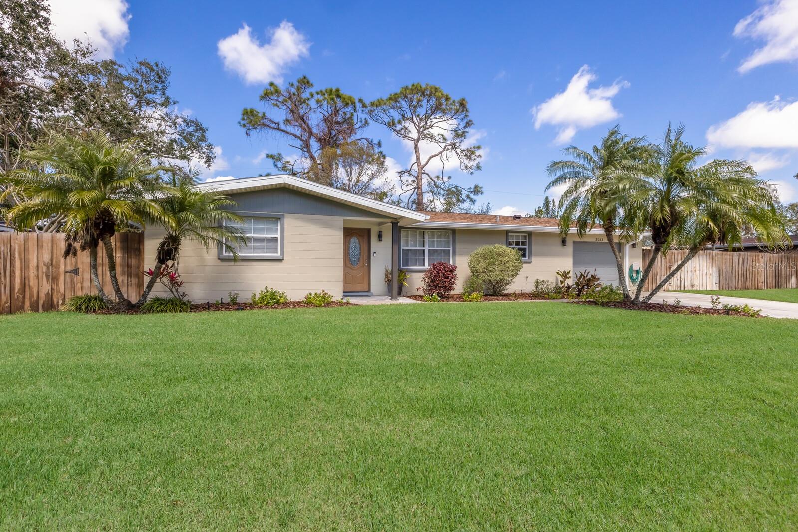 This home is in move in condition! Great curb appeal! Extra wide lot with beautiful landscaping. Private well to keep the landscaping fresh. Wonderful front entry, custom front door with leaded glass. The interior of this home is just as beautiful! Wood plank laminate flooring accents the Great Room and Family Room. Chef's kitchen with white cabinets, stone counter tops and stainless appliances. Plush carpet in both bedrooms. Bathrooms have upgrade cabinets and plumbing fixtures. Other outstanding features include a double wide concrete driveway, new shingle roof in 2018, home re-piped in 2019, fabulous double wide fenced in backyard. Large rear brick patio to enjoy this very private space. Huge 15'x30' garage! GREAT LOCATION, close to outstanding restaurants, shopping and a short drive to world famous Siesta Beach! An additional bonus of NO HOA or CDD fees! Don't miss this is very special home!!!