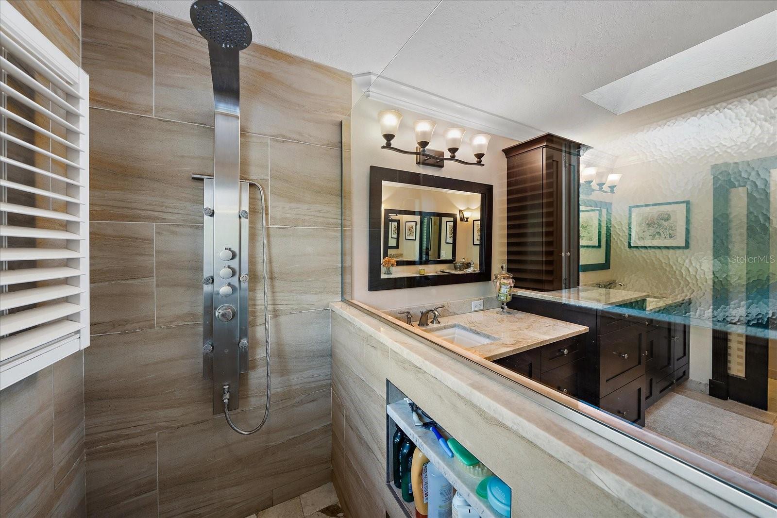 This is the one you've been waiting for! The Florida lifestyle in an updated home on a cul-de-sac street in one of Sarasota's most iconic neighborhoods. Halfway between downtown and the interstate, you are close to everything that Sarasota has to offer yet secluded in the tree lined streets of Sherwood Forest. This custom built, well-maintained home with a newer tile roof (2017) offers modern updates and functional living spaces. The split-level plan features three zoned AC units (2022), a new water heater, bar refrigerator, washer, dryer, and pool pump (2024). The interior and exterior were freshly repainted in 2025 along with all new doors and hardware throughout the home. The spectacular pool area was refinished in 2023 with a 10-year warranted pool surface and spa and includes an almost 1,000sf brick paver pool deck along with a raised deck and a panoramic screened-in pool cage with 10-foot ceilings. Inside, the remodeled kitchen features granite countertops, an island gas cooktop with exterior ventilation through a range hood, an electric double oven, and a pass-through window to the deck for easy outdoor dining. There is also an eat-in kitchen area with stacked sliders leading to the raised deck, making entertaining a breeze and providing seamless indoor-outdoor living. A formal dining room off the living room is perfect for dinners and holiday gatherings. The upstairs bedrooms feature beautiful hardwood floors and updated bathrooms. The zen-like owner’s bathroom was remodeled in 2018 and includes a walk-in shower with a rainfall showerhead and massage jet system, quartzite countertops, custom cabinetry, dual sinks, a private toilet closet, marble floors and plenty of storage. The ground level includes a fantastic laundry room with custom cabinetry and shelving, granite countertops, a built-in utility sink and tile floors. The ground level also includes a family room with a built-in bar and cabinetry with refrigerator, stacked sliders that lead on to the pool deck and a half-bath for convenience. The home also features crown mouldings throughout the house, a beautiful, fully functioning fireplace, polished marble flooring, plantation shutters on all windows, skylights, and hurricane panels for all the windows. There is also a central vacuum system and the home is wired for an alarm system. This home is ready for a new owner with all major updates completed! This quiet deed restricted neighborhood of Sherwood Forest which boasts majestic, mossy Oak trees that line the privately owned winding streets of the subdivision. There is a nostalgic covered bridge over the creek that graces the subdivision adding to its charm with the convenience of access to shopping and dining near-by, straight shot to downtown Sarasota, access to I-75, and Siesta Key Beach.