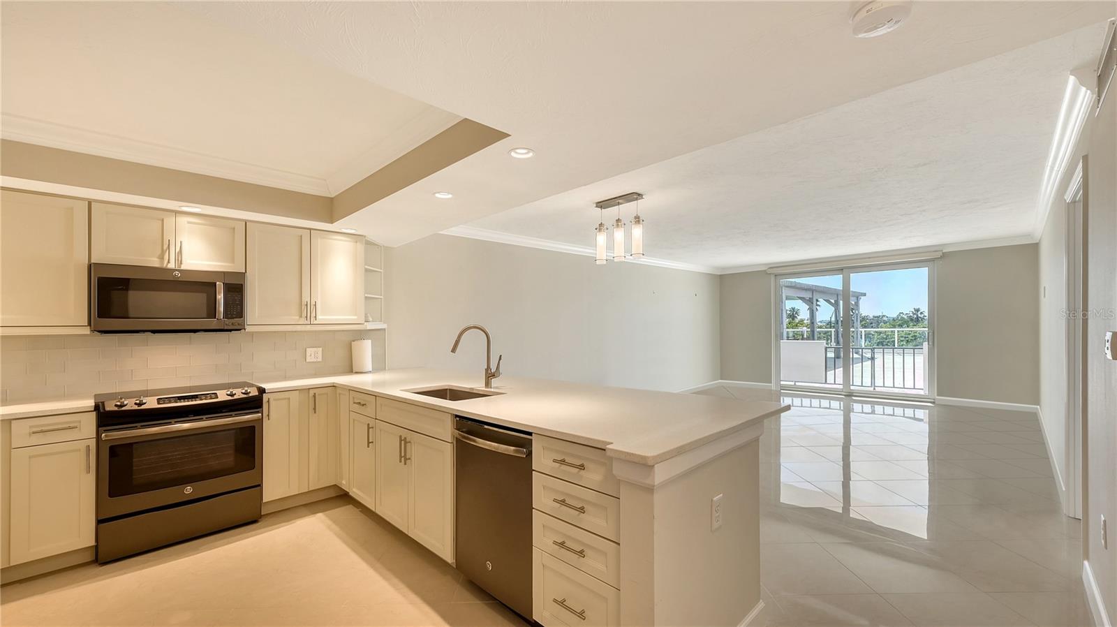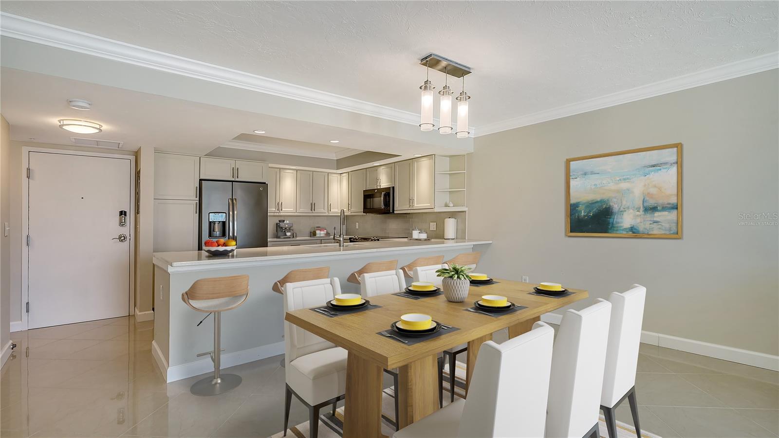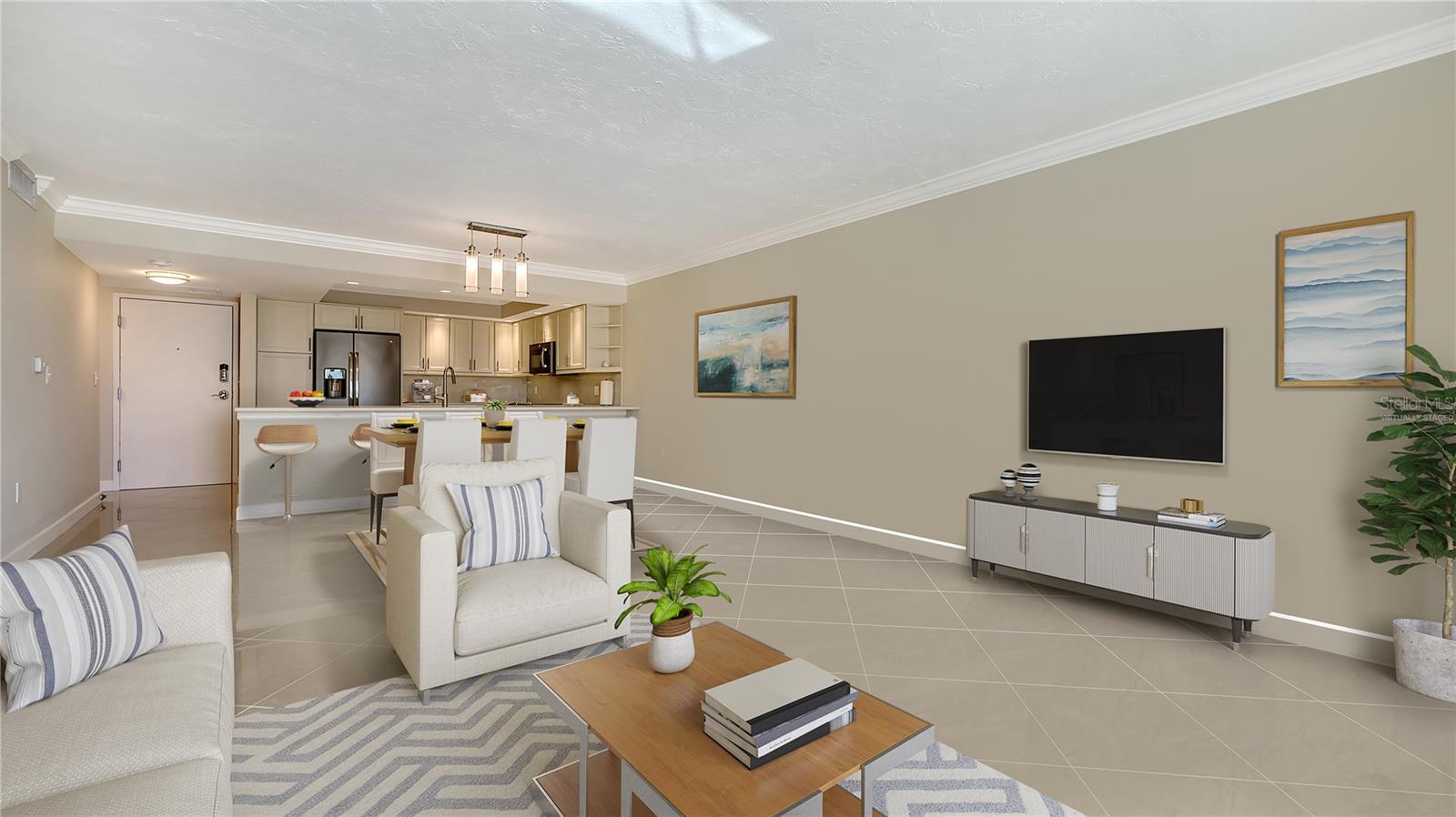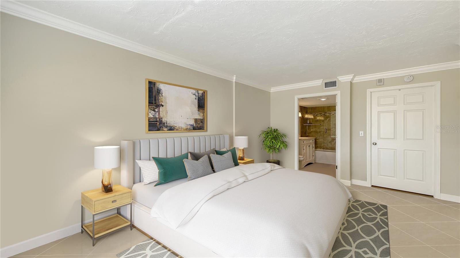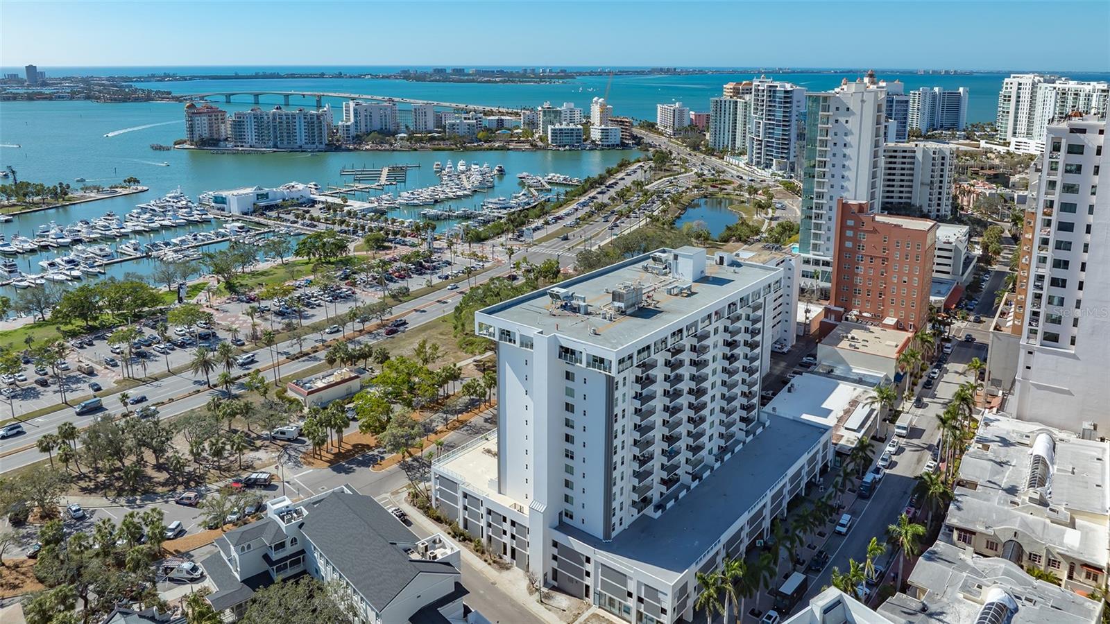 One or more photo(s) has been virtually staged. Luxury Living in the Heart of Downtown Sarasota. Discover an exceptional opportunity to own a stunning one-bedroom, two-bathroom condo in the heart of downtown Sarasota. This meticulously remodeled residence blends modern elegance with ultimate comfort, offering a bright, airy, and sophisticated ambiance from the moment you step inside. The open floor plan is designed to impress, featuring exquisite crown molding, premium tile flooring, and automated shades that enhance both style and convenience. The chef-inspired kitchen is a masterpiece, boasting sleek quartz countertops, high-end appliances, and ample storage to meet all your culinary needs. Both bathrooms have been beautifully upgraded with intricate tile work, adding to the home’s luxurious feel. Thoughtfully designed, the unit also includes spacious walk-in closets, custom built-ins, and a private patio, perfect for enjoying your morning coffee or unwinding with a glass of wine while taking in beautiful sneak-peek views of Sarasota Bay, the iconic "Unconditional Surrender" statue, and the serene Bayfront Park. Adding to its allure, this unit is located on the same level as the pool, providing convenient access to the expansive pool deck while offering beautiful peek-a-boo views of Sarasota Bay. The community is also in the process of upgrading its outdoor amenities with gorgeous new chaise lounges, outdoor dining tables, umbrellas, and more, creating a resort-style retreat right outside your door. Situated within The 101 Condominium, this exclusive residence is part of a highly sought-after community known for its sophisticated upgrades and exceptional amenities. Residents enjoy access to a state-of-the-art gym, yoga room, library, movie theater, elegant social room, heated swimming pool, outdoor grill area, and dedicated concierge and maintenance services. The building has recently undergone an $8 million modernization project, including a beautifully renovated lobby and extensive structural enhancements, making it one of the most desirable condominiums of its era in Sarasota. Additionally, The 101 has successfully passed its milestone inspections and is nearing the completion of an exterior stucco replacement and painting project, ensuring long-term peace of mind. Beyond the building, an exciting urban lifestyle awaits. This condo is ideally positioned in Sarasota’s most walkable neighborhood, just steps away from Marina Jack’s world-class marina, the lush beauty of Island Park, and the renowned Gallery Row on Palm Avenue. Whether you enjoy fine dining, boutique shopping, cultural attractions, or Sarasota’s pristine beaches, everything is within easy reach. With its move-in-ready condition, unbeatable location, and luxurious upgrades, this condo is a rare find in a city often described as paradise. Offering a lifestyle comparable to nearby million-dollar residences at a fraction of the cost, this is your chance to experience downtown Sarasota living at its finest. Don’t miss out on this exceptional opportunity—schedule your private showing today!