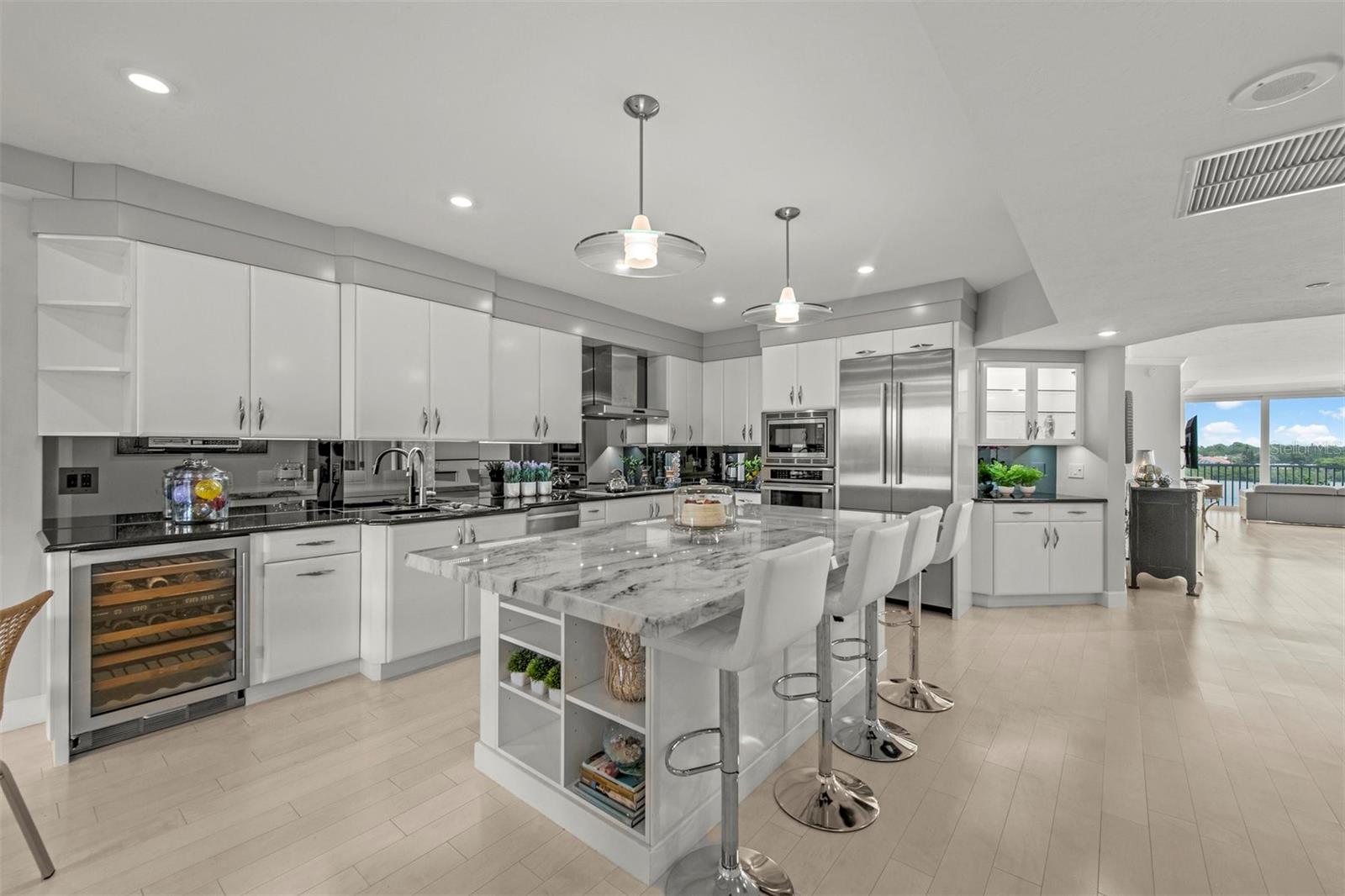 VIEWS! VIEWS! VIEWS!---You will be WOWED! by the Incredible WATER VIEWS in this Well-Appointed/Upgraded & Furnished SIESTA KEY residence with a Highly Desired and "Rare" TWO (2) CAR PRIVATE GARAGE!.....Located in Dophin Bay, a Boutique Gated Dog-Friendly Resort Style Waterfront Community where residents have access to Pool, Tennis Courts, Fitness Center and "across the street" proximity to TOP RATED Siesta Key Beach. This 2000+ sq ft Bright & Spacious Open Floorplan features: Quartz Countertops, Thermador Appliances, Sumptuous Bathrooms, Hurricane Impact Sliders; Generously Sized Ensuite Bedrooms with Over-sized Walk-in Closets; In-Unit Washer/Dryer, Built-ins Throughout & 2 outdoor living spaces--perfect for morning coffees and cocktails with evening sunsets. Take the Siesta Key Trolley to the Main Village for Dining, Shopping and all the Joys of Island Living!